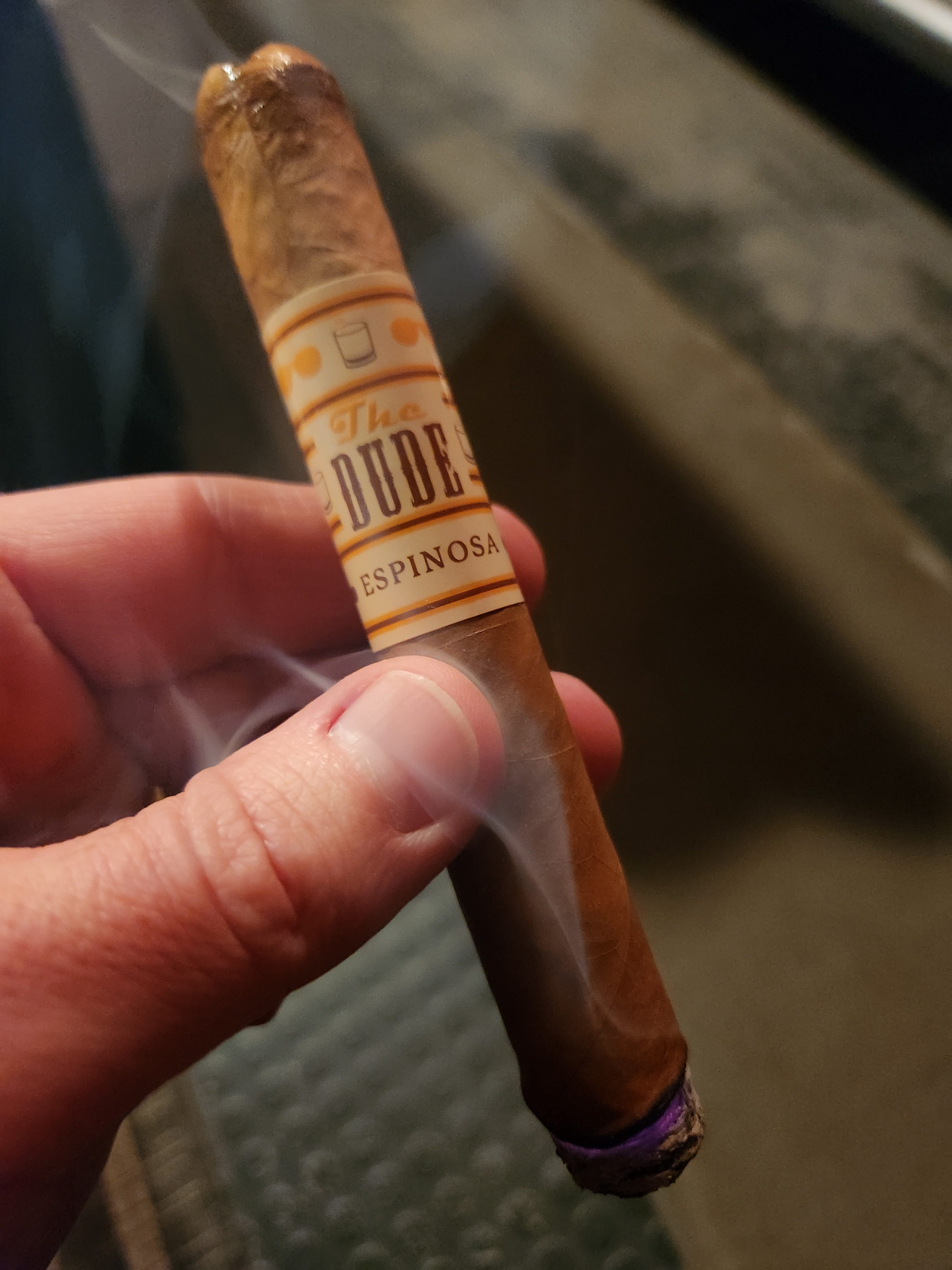 The Dude is a mellow to medium-bodied cigar from Espinosa Premium Cigars, being made as an exclusive for retailer Cigars International. The cigar features a Connecticut-shade wrapper, a Nicaraguan Corojo binder, and long-fillers from the Estelí and Jalapa regions of Nicaragua. The blend is described as having a natural sweetness, light creaminess, baking spices, pepper, and earthy tones, making it an excellent morning cigar.