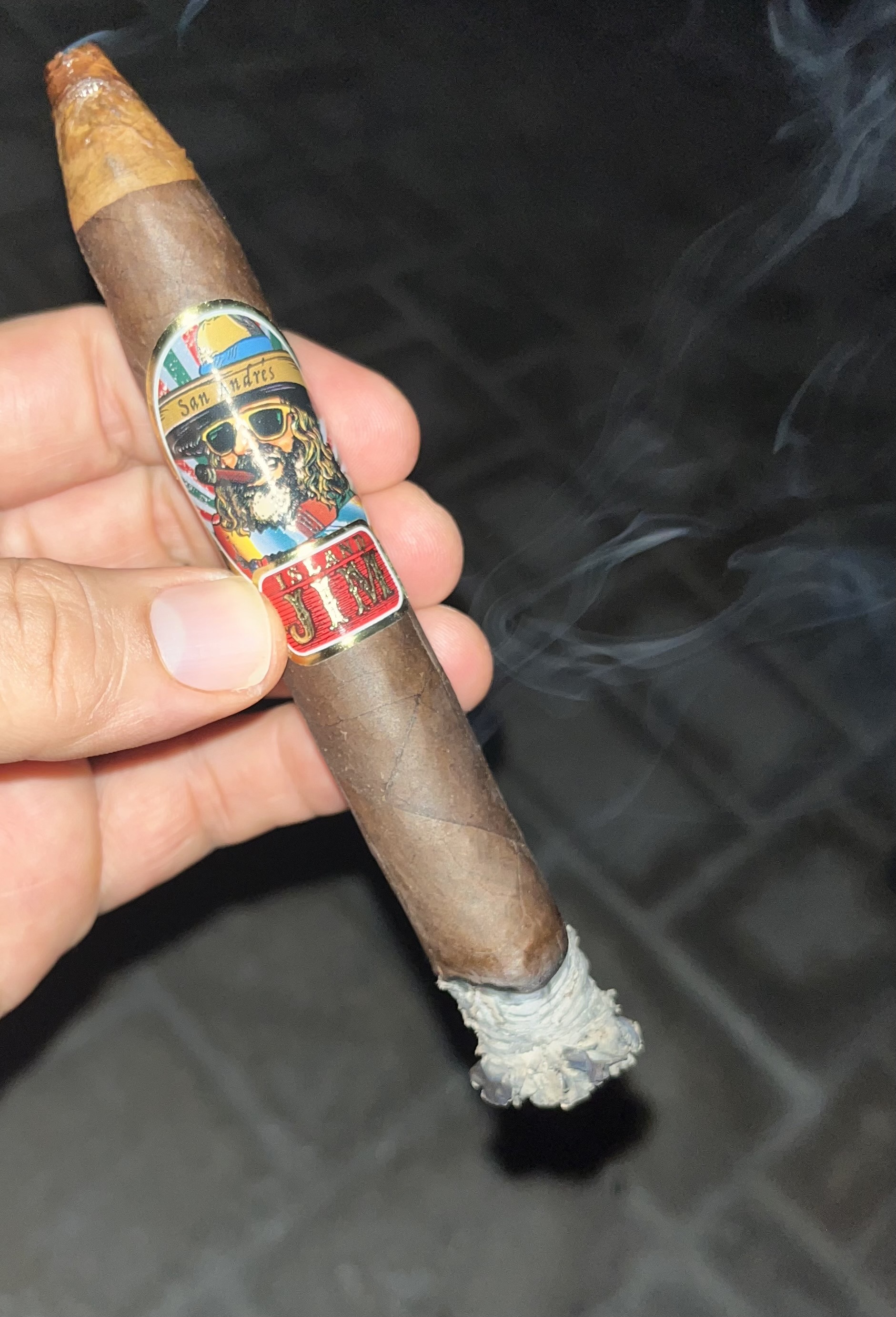 After Leaf by Oscar successfully introduced a cigar made to resemble a No. 2 pencil, it was obvious that sequels were to follow... Yes, the Island Jim by Oscar San Andrés cigar is rolled in a # TWO format, which is flared and shaggy at the foot (the eraser), tapering dramatically at the cigar's pencil-shaped head. Additionally, the maduro wrapper transitions to a lighter leaf at the head (shaved wood) and a medium leaf (lead) at the tip. This allows for differing experiences depending on where the cigar is cut, with different wrapper components on the lips as the cigar is smoked. The Island Jim by Oscar San Andrés is the second release in the series, using a San Andrés maduro wrapper over all-Honduran binder/filler. Other releases in the series include the Island Jim by Oscar and Island Jim by Oscar Connecticut.