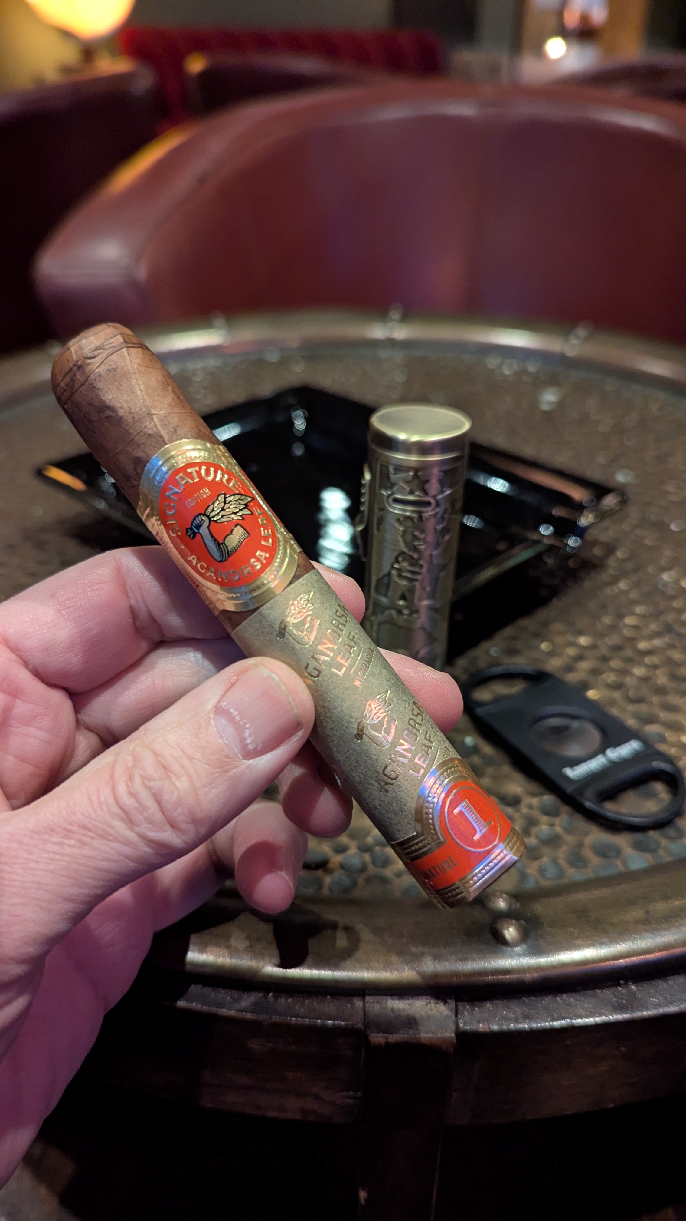 The Aganorsa Leaf Signature Selection cigar debuted in 2018, being among the most premium offerings from Aganorsa Leaf. The cigars were spearheaded by Max Fernández (son of company owner, Eduardo Fernández), bearing his signature throughout the packaging. Most notably, the cigars make use of the AGANORSA farms' rare medio tiempo tobacco within the filler. This signature ingredient is joined by Nicaraguan Criollo ’98 and Corojo ’99 throughout the filler, a Nicaraguan Corojo '99 binder, and a Nicaraguan rosado claro Corojo ’99 wrapper.