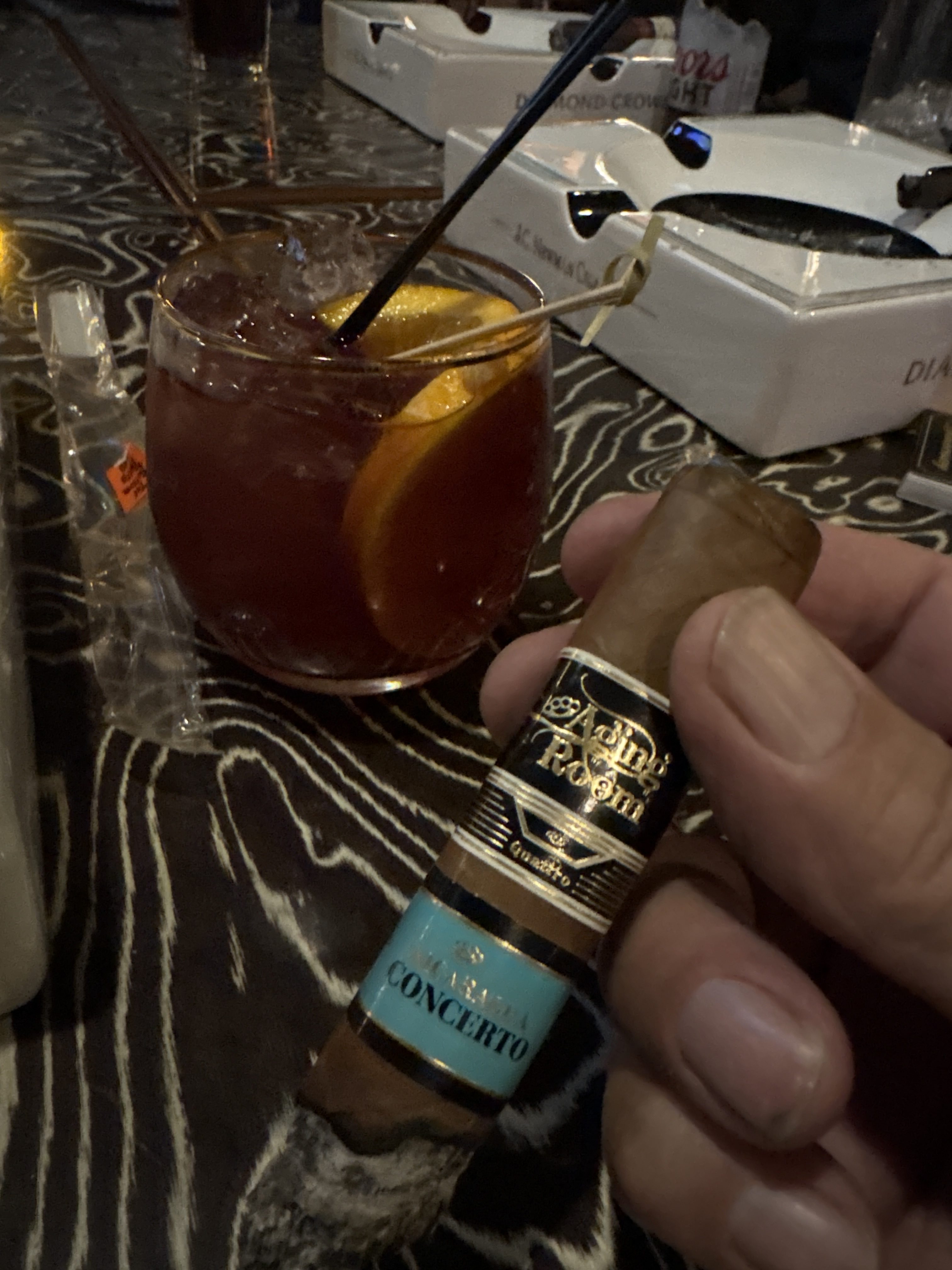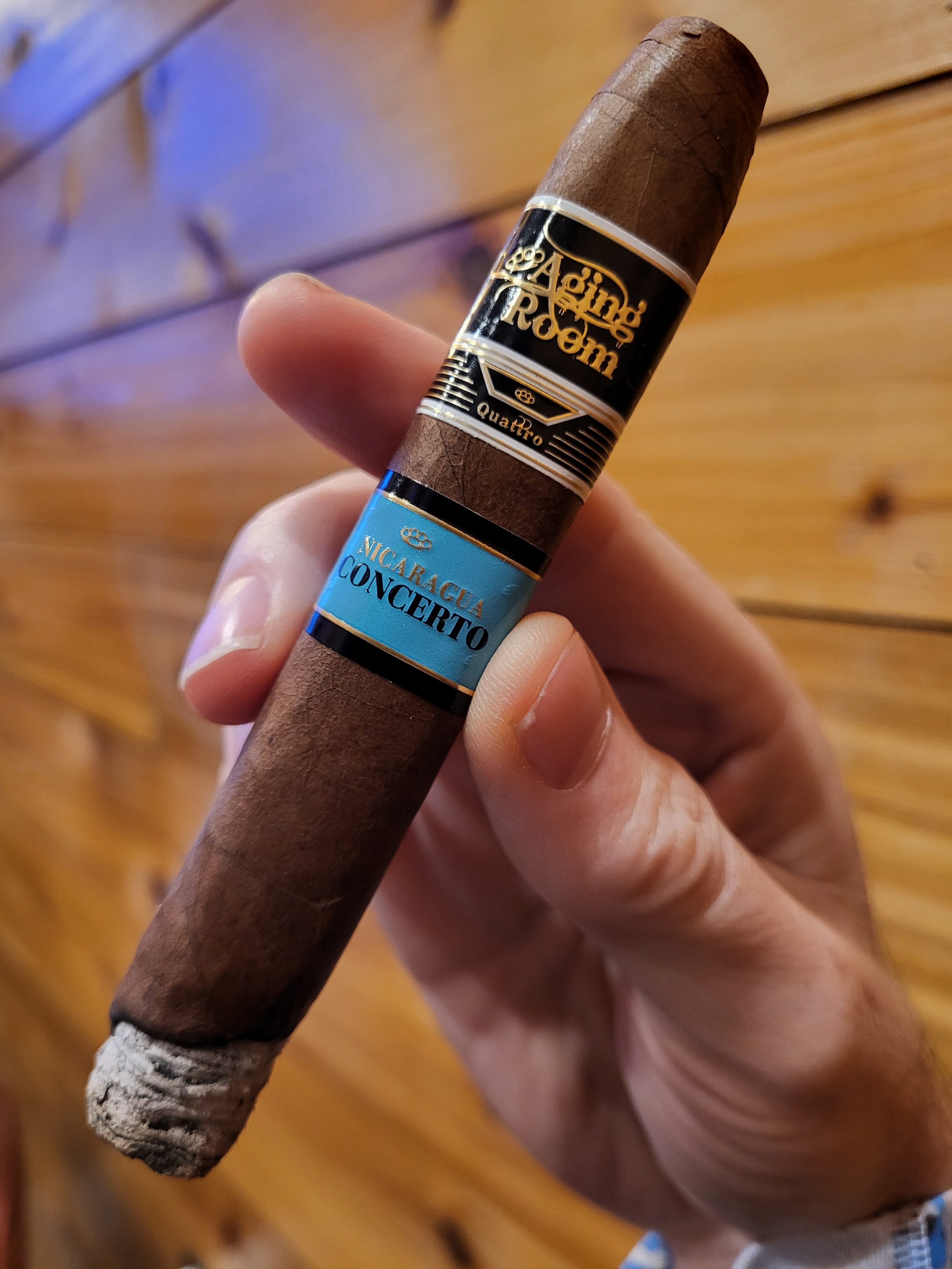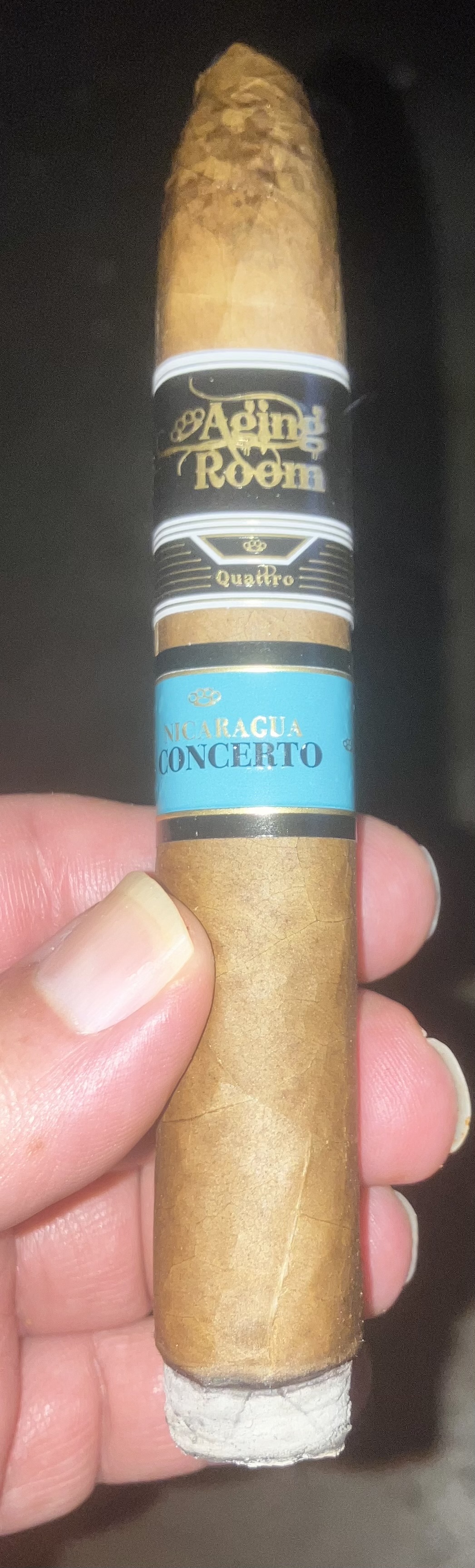 The Aging Room Quattro Nicaragua Concerto cigar debuted in 2025, marking the third release in the Quattro Nicaragua series from the Aging Room brand. Like former cigars in the collection, the Concerto is themed around classical music compositions, with the name referencing "a harmonious collaboration between a solo instrument and orchestral accompaniment." The cigars are crafted in a large variety of sizes, making use of a Nicaraguan puro blend from the various farms of A.J. Fernández. This includes a hybrid wrapper from the Finca La Lilia farm and 12-year-aged leaves from the Finca Los Espejos farm's first harvest.