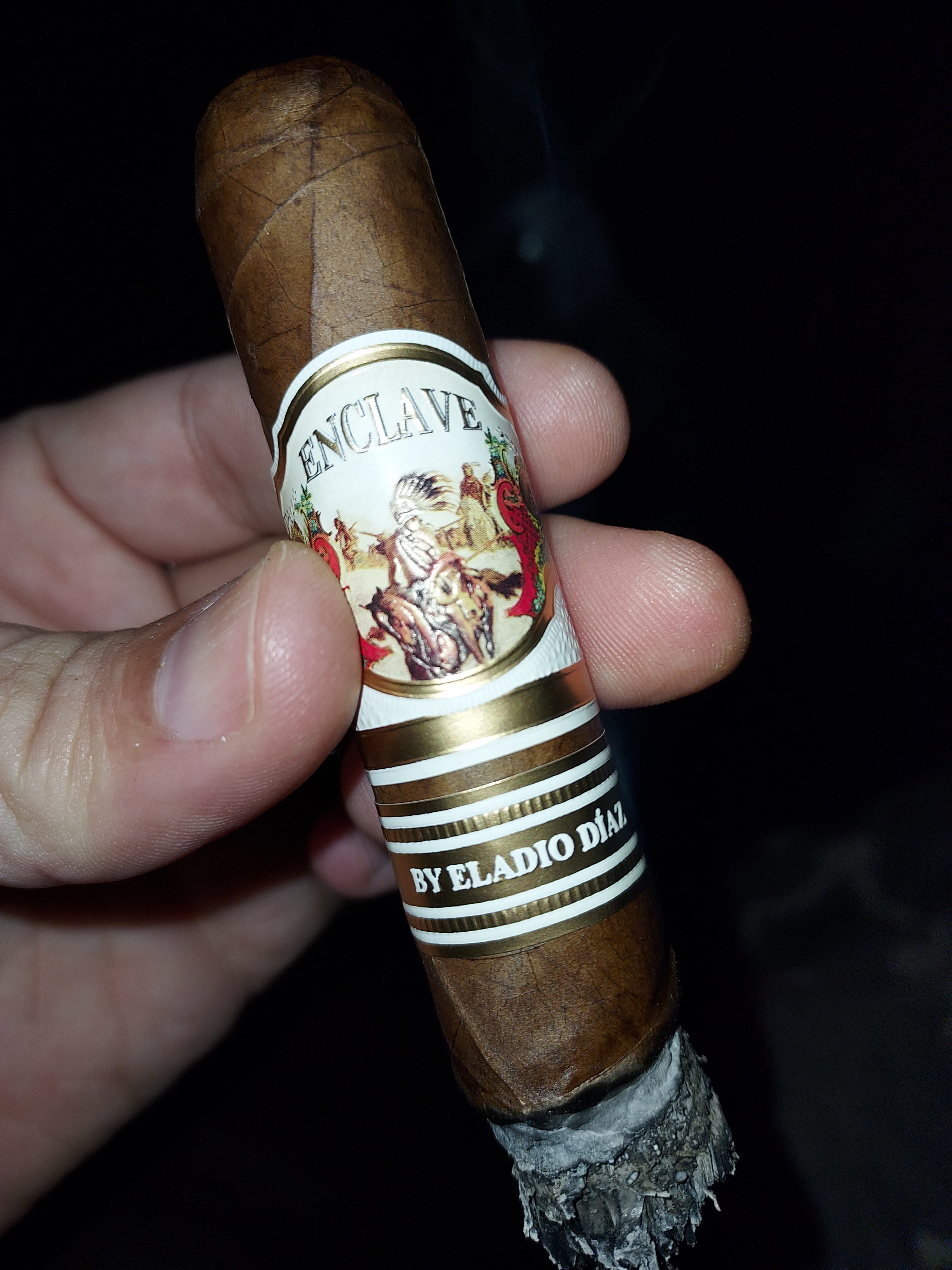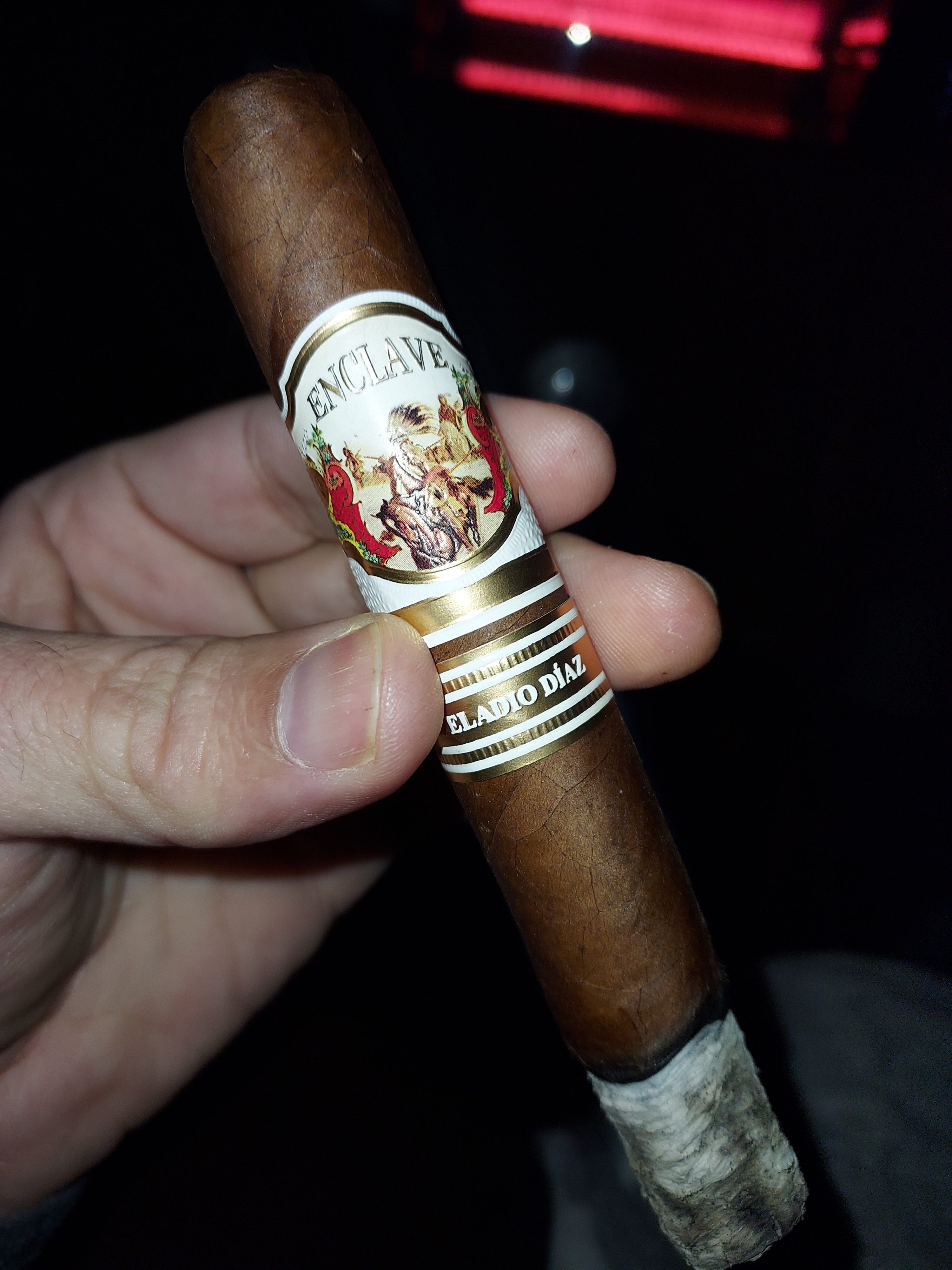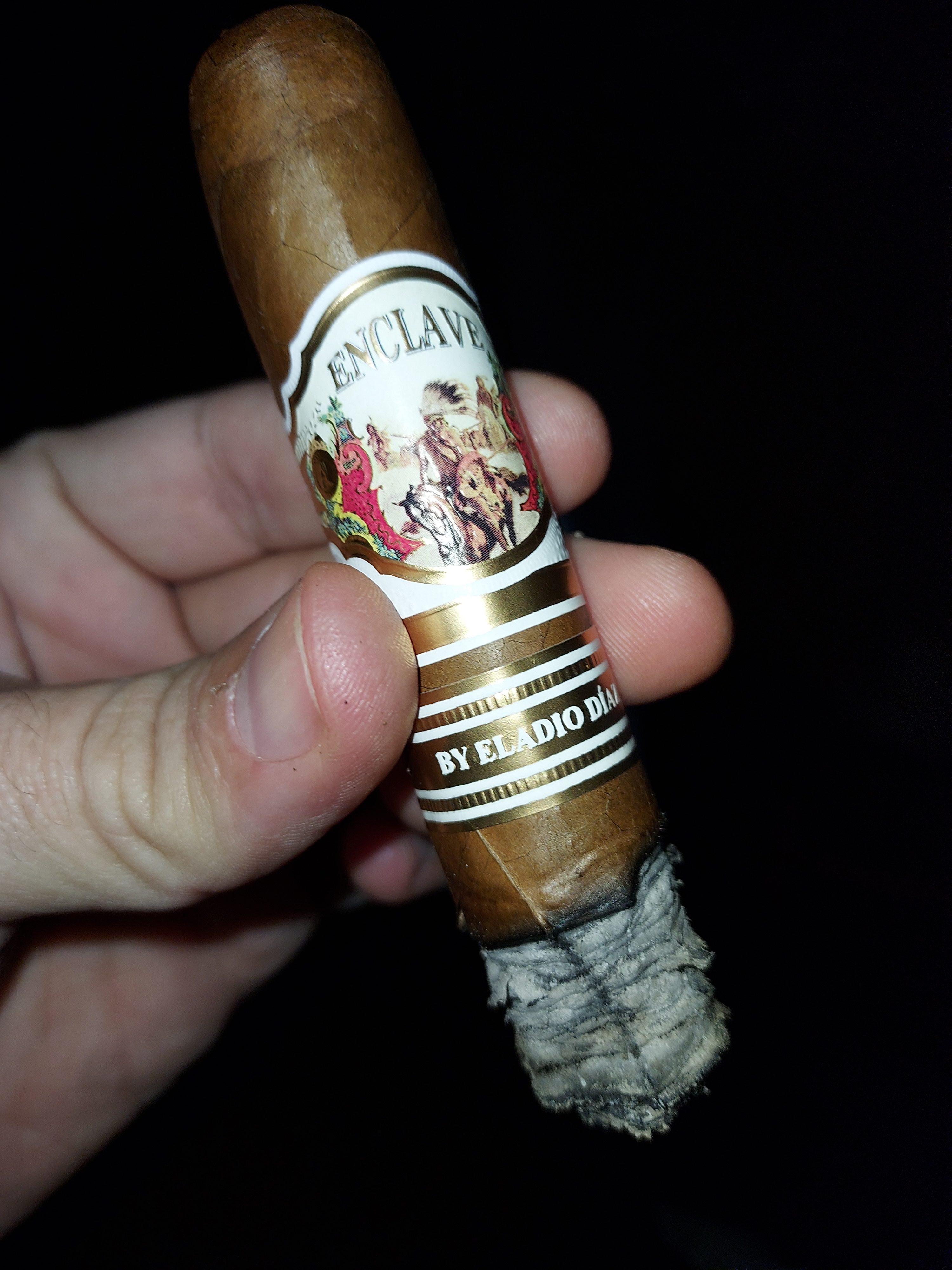 The Enclave by Eladio Diaz cigar marked the third addition to A.J. Fernández's Enclave line, notably being rolled by Eladio Diaz and his Tabacalera Diaz Cabrera factory in the DR. The cigars were offered in a range of three sizes at release, featuring a Corojo '99 wrapper from an undisclosed country, an Ecuadorian binder, and fillers from the Dominican Republic.