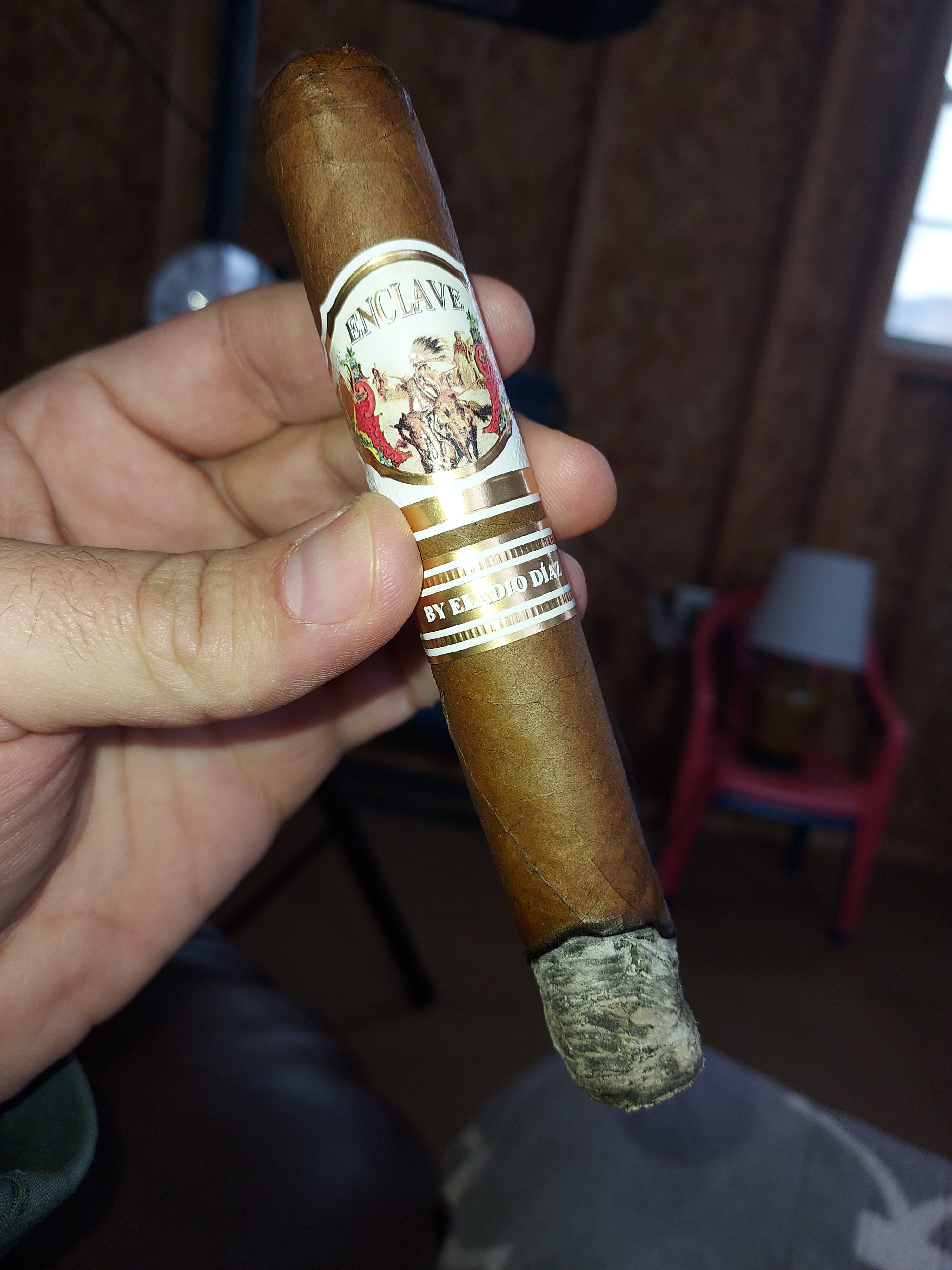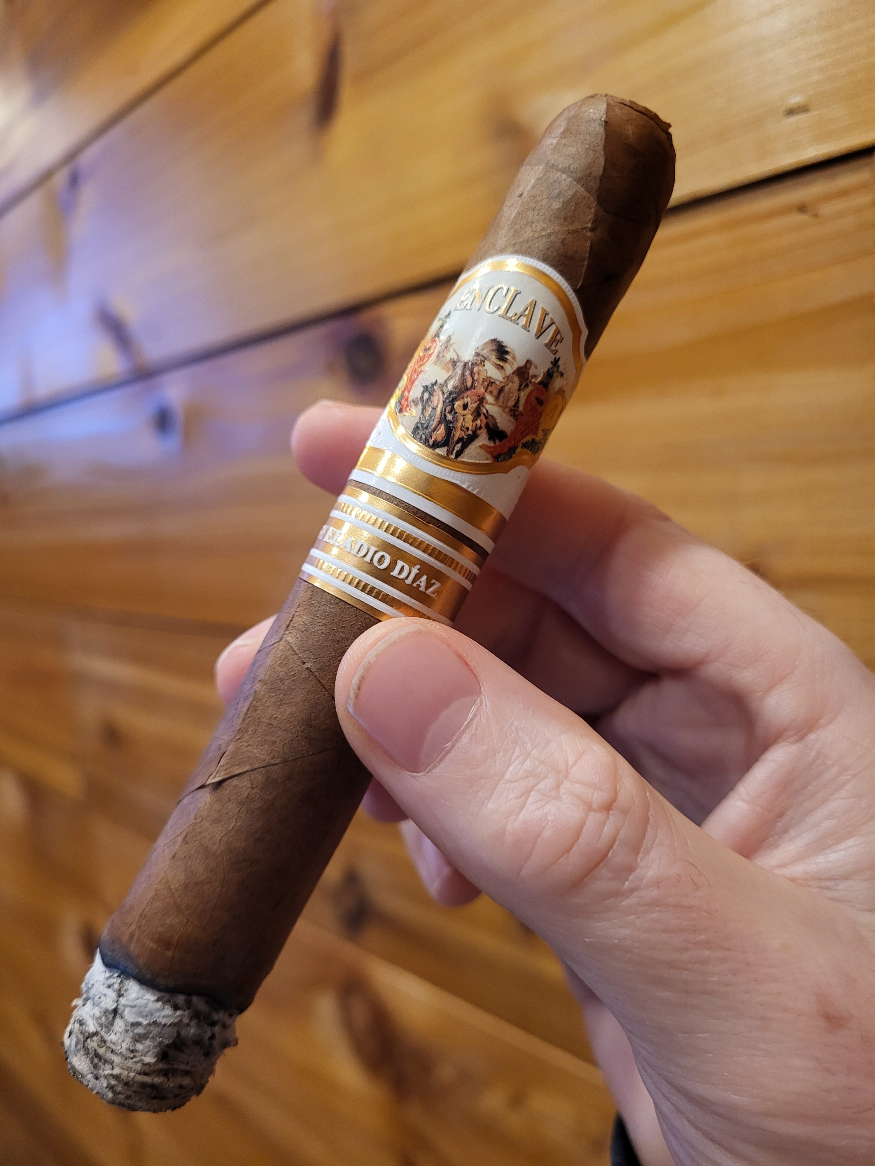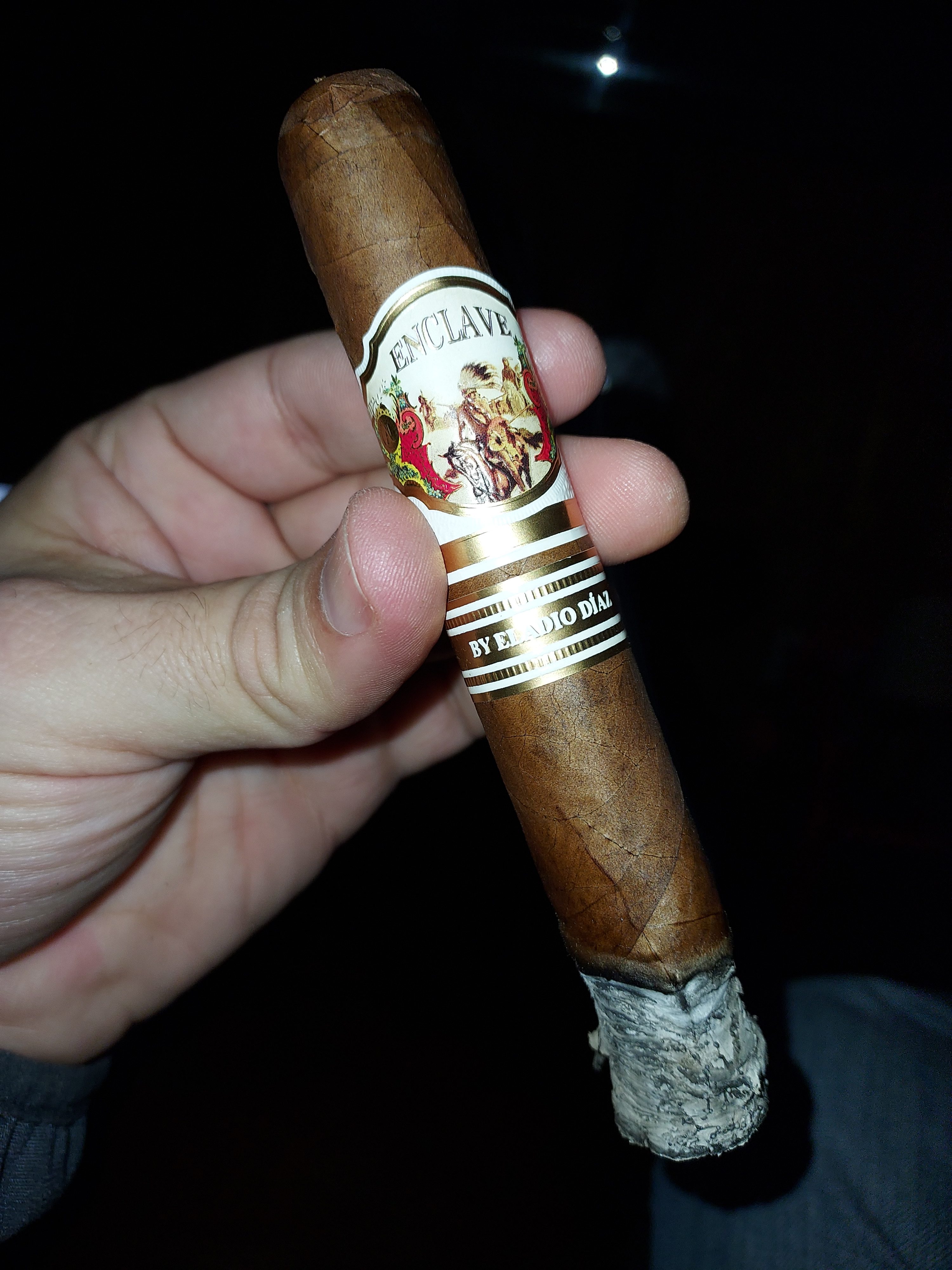 The Enclave by Eladio Diaz cigar marked the third addition to A.J. Fernández's Enclave line, notably being rolled by Eladio Diaz and his Tabacalera Diaz Cabrera factory in the DR. The cigars were offered in a range of three sizes at release, featuring a Corojo '99 wrapper from an undisclosed country, an Ecuadorian binder, and fillers from the Dominican Republic.