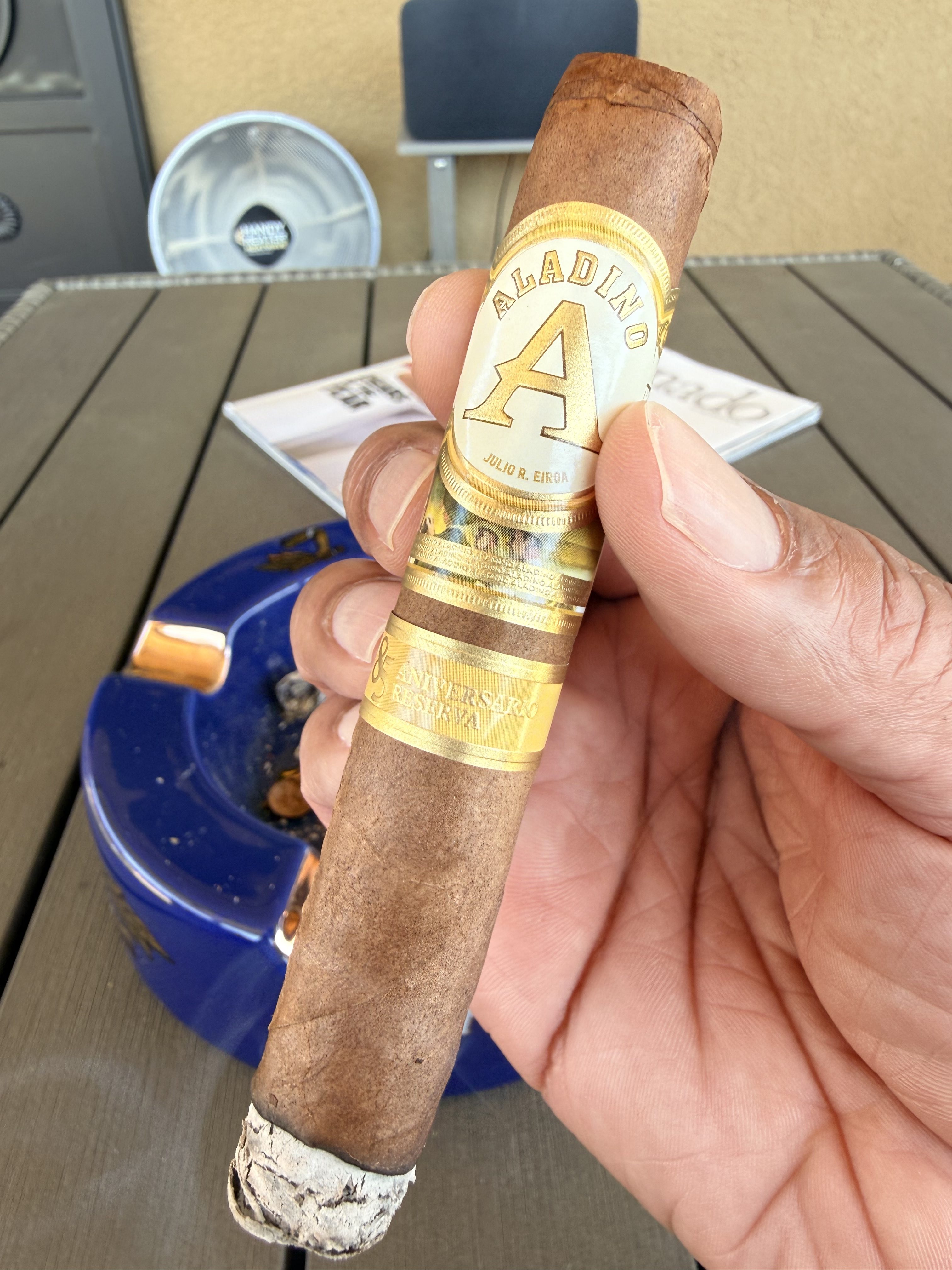 JRE Tobacco Company debuted the Aladino 85 Aniversario Reserva cigar in 2025, celebrating Julio R. Eiroa's 85th birthday. The blend makes use of a unique seed known as pinareño (used throughout the entirety of the blend), which was brought to Honduras by Tino Agurdin in 1960. Pinareño is known for smaller yields, being more delicate and disease-prone than the Corojo seed that the family is known for. The cigars debuted in two sizes, being limited to four boxes of 20 cigars per vitola per month for retailers.