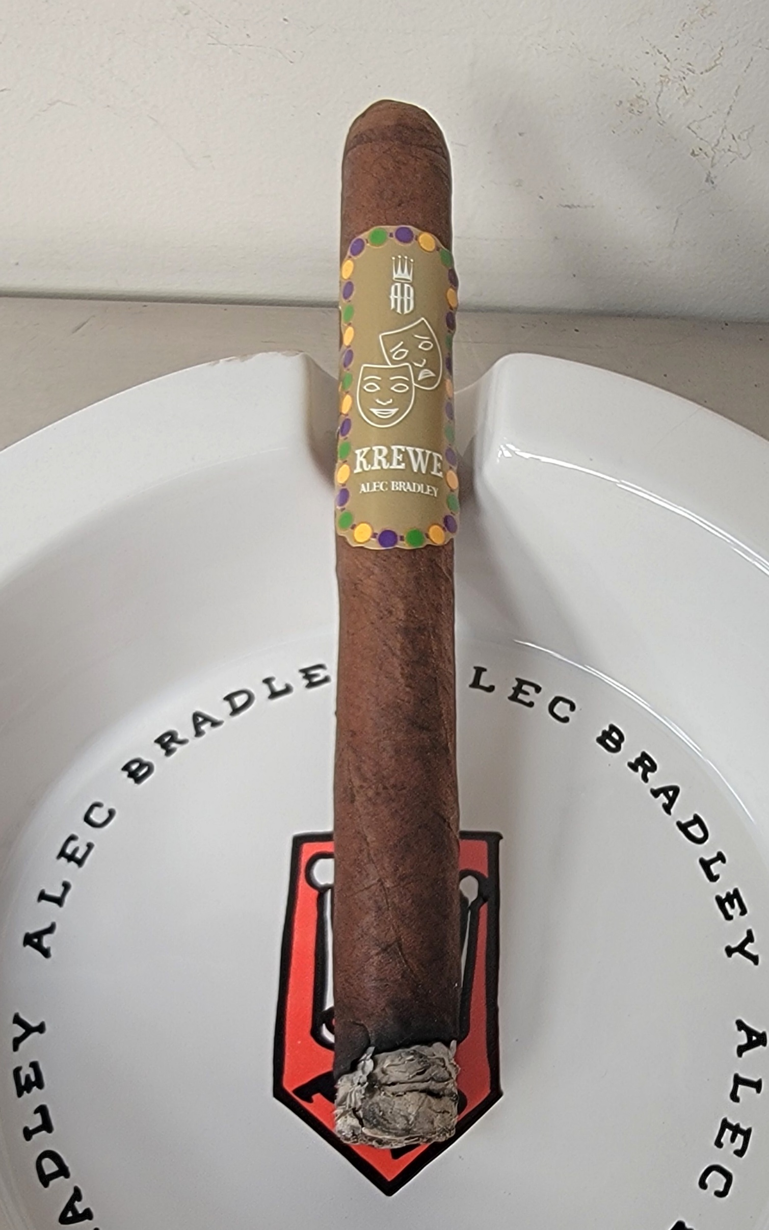 Alec Bradley Krewe is a limited-edition project rolled for Smoke Inn's annual The Great Smoke event, offered exclusively to ticket holders of the 2023 event. The cigars were rolled in a single 7" x 48 Churchill size, offering a Honduran wrapper from the Trojes region. This leaf surrounds a double binder (Estelí, Nicaragua and Jamastran, Honduras) and fillers of Honduras (Criollo '98 ligero from Trojes and Corojo '99 viso from Trojes) and Nicaragua (Criollo '98 viso from Jalapa). The Krewe was limited to 300 bundles of 10 cigars for its limited release.