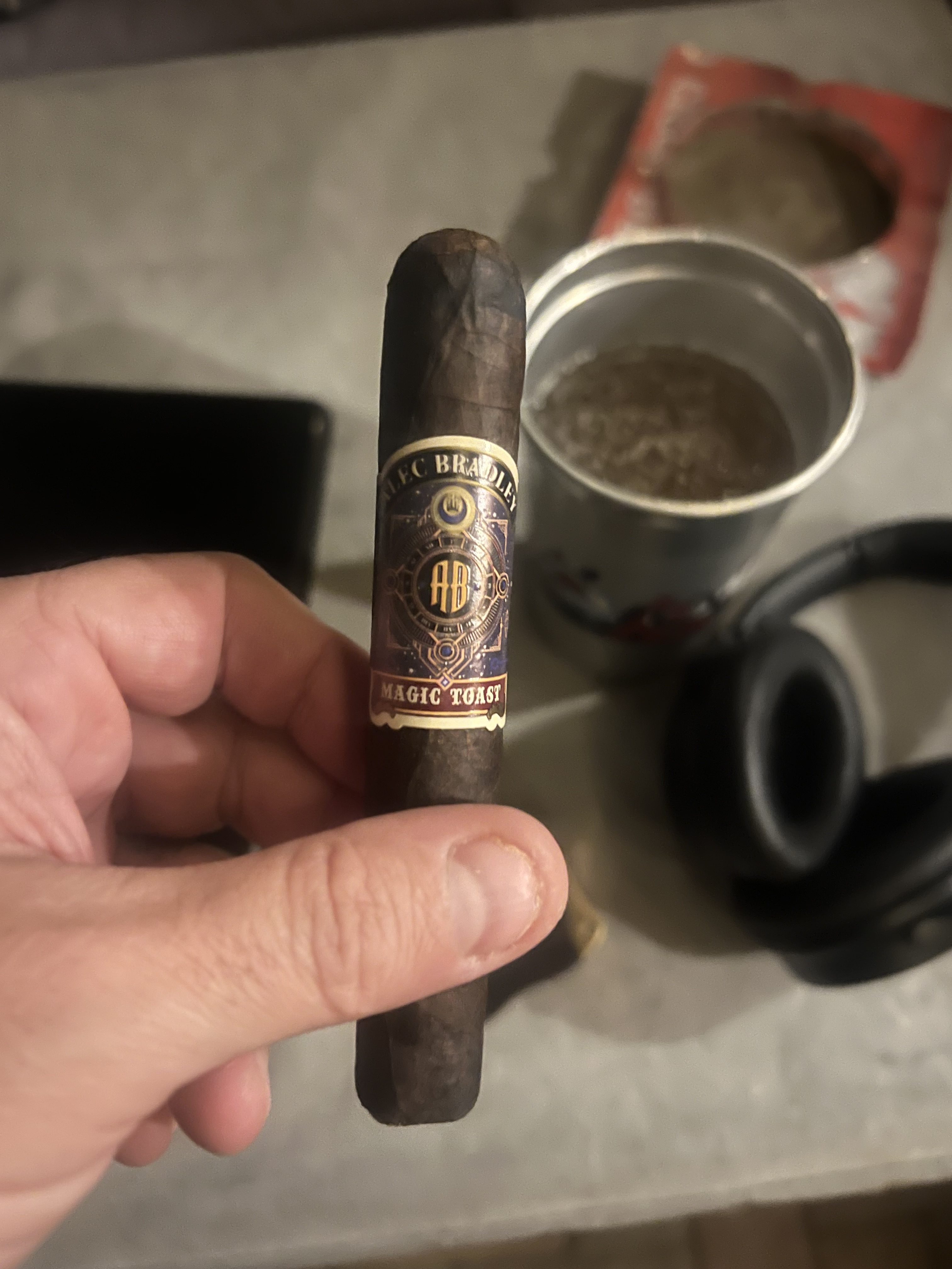 This was my third Magic Toast Toro. The first cigar (a year ago) I thoroughly enjoyed. The second (2 months ago) and the third tonight were about the same. I had to baby them along and I guess it just wasn’t in the cards. Don’t want to discourage folks from smoking this stick, but it guess this cigar doesn’t fit my profile and patience.