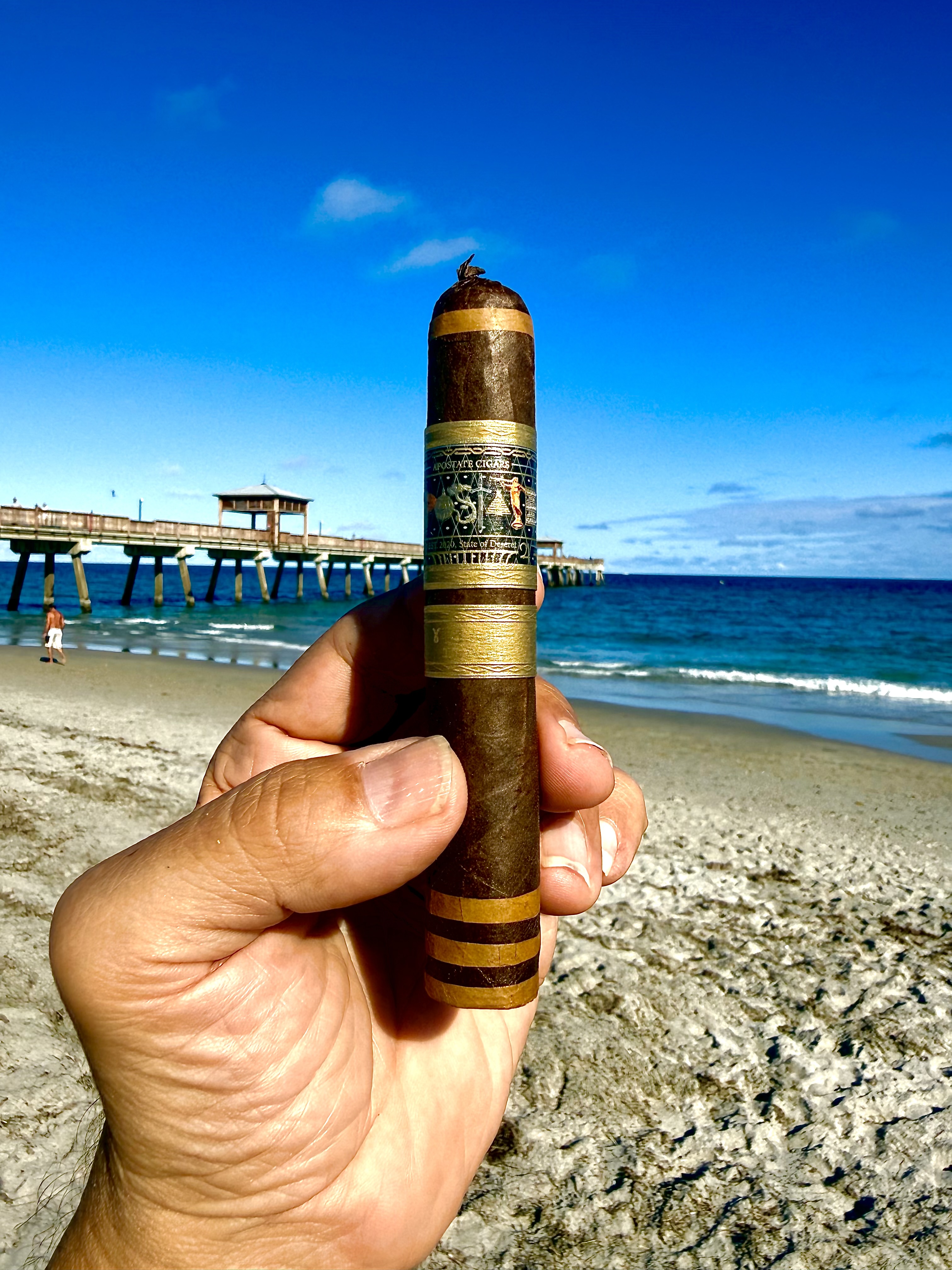 The Deseret is one of three debut cigars from Apostate Cigars. The Deseret name is a scriptural term meaning Honeybee, with the company stating "we have sought to bring you all the sweetness without the sting." This carries through to the look as well, showcasing a striped wrapper design (Mexican San Andrés and Ecuadorian Connecticut) and a stinger-like pigtail cap. The cigar features seven different tobaccos from four countries, including a Cuban-seed Dominican Piloto binder and fillers from the Dominican Republic and Nicaragua.
