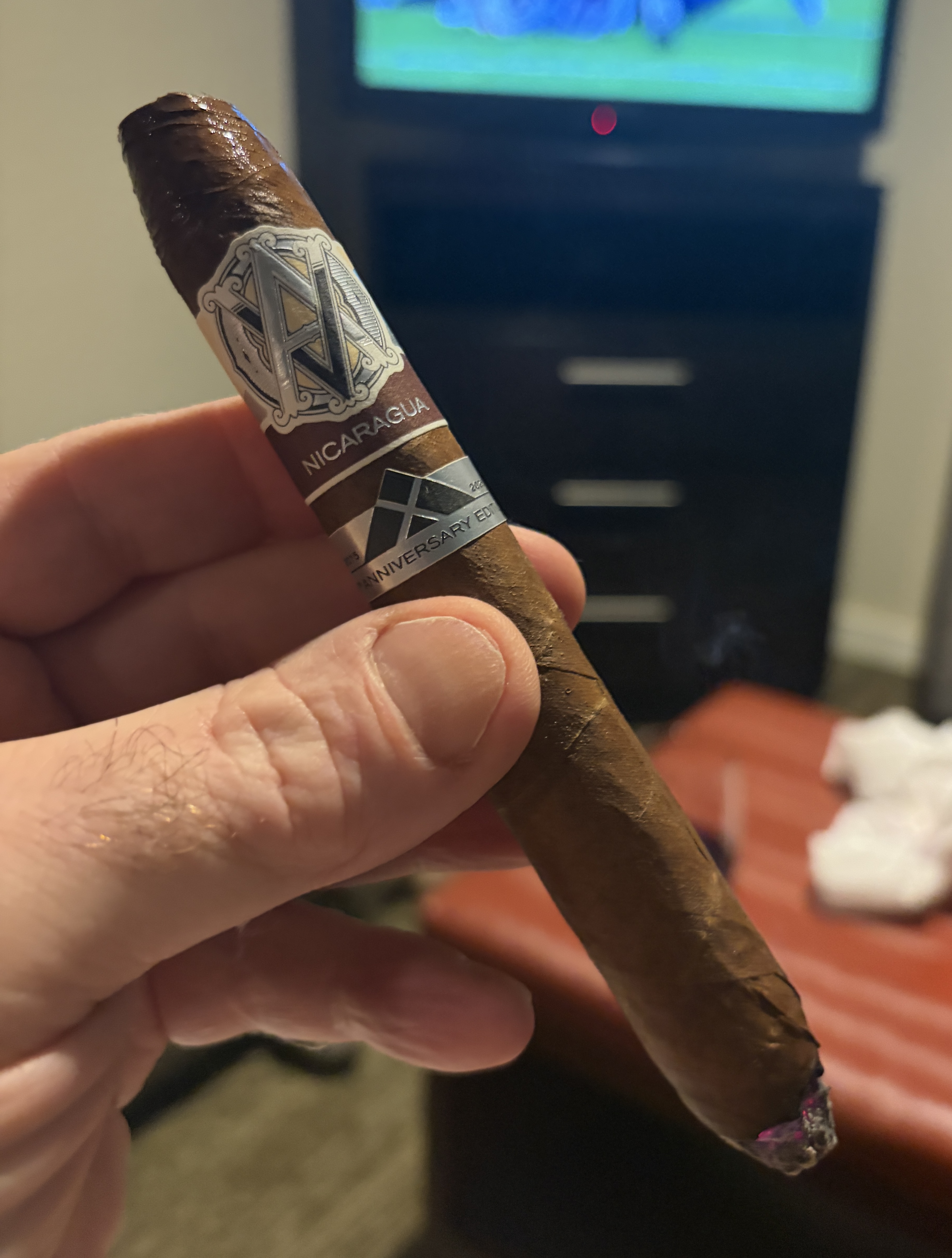 AVO Cigars introduced the AVO Syncro 10th Anniversary Limited Edition in 2025, marking the 10th anniversary of the original AVO Syncro Nicaragua cigar. The cigars were rolled in a single 6⅝" x 50 diadema fina format, making use of an Ecuadorian wrapper, a Nicaraguan binder, and fillers from the Dominican Republic and Nicaragua. In the US, the Syncro 10th was limited to 3,400 boxes of 20 cigars.