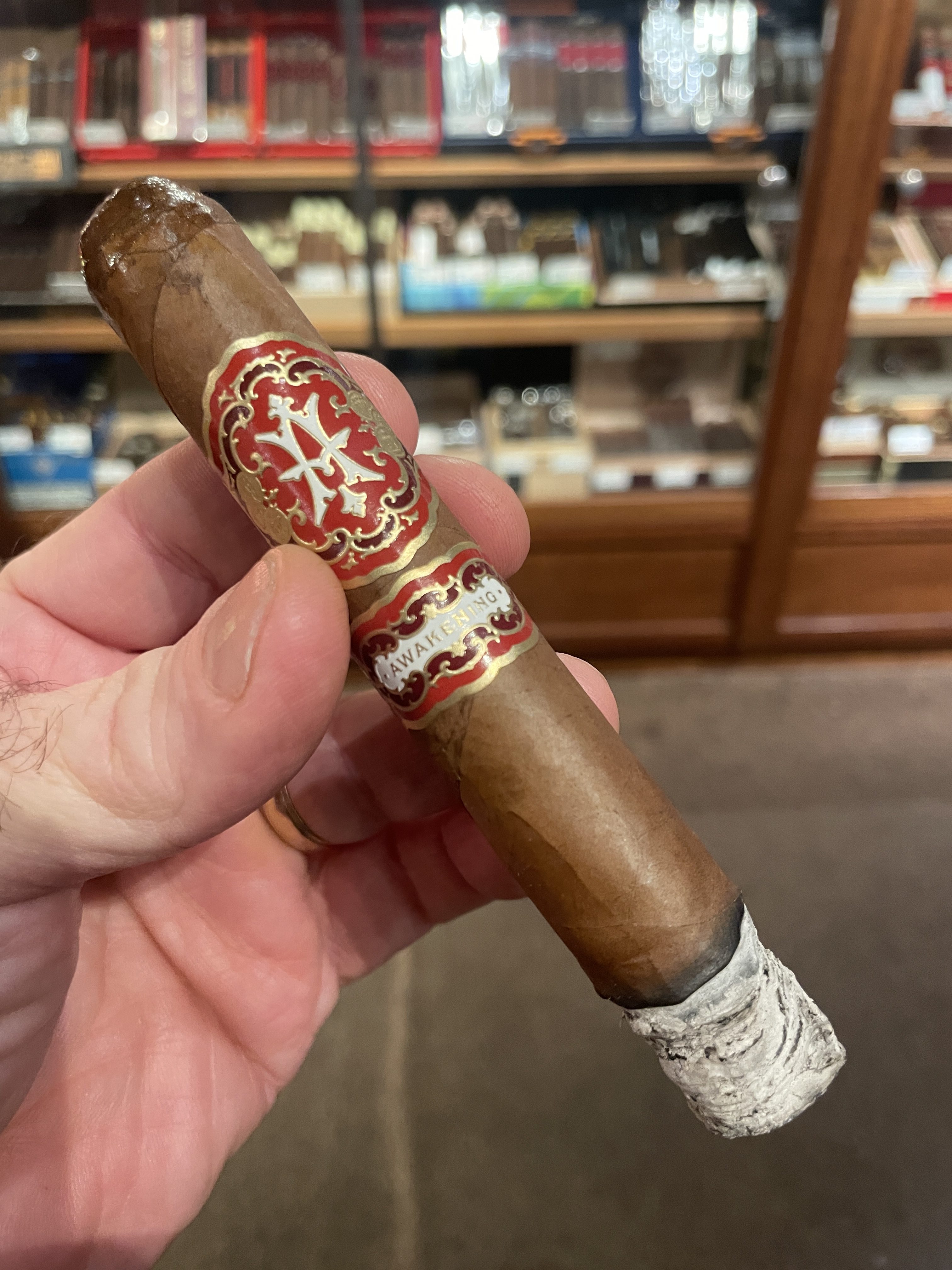 The Awakening cigar was one of three lines introduced by Avowed Cigar Co. in 2025, touting expert craftsmanship from Klaas Pieter Kelner's boutique-minded Kelner Cigars, S.A.S. factory in Santiago, DR. The cigar was the only limited release of the three, being crafted in a single 5½" x 52 gran robusto format and limited to 2,000 boxes of 10 cigars. The blend centers around an extinct wrapper—an Ecuadorian hybrid leaf dubbed capa marron—which was last grown roughly a decade before the cigar's release. This leaf surrounds an Ecuadorian Habano binder and fillers of Piloto Cubano, San Vicente, Criollo '98, and Pennsylvania.
