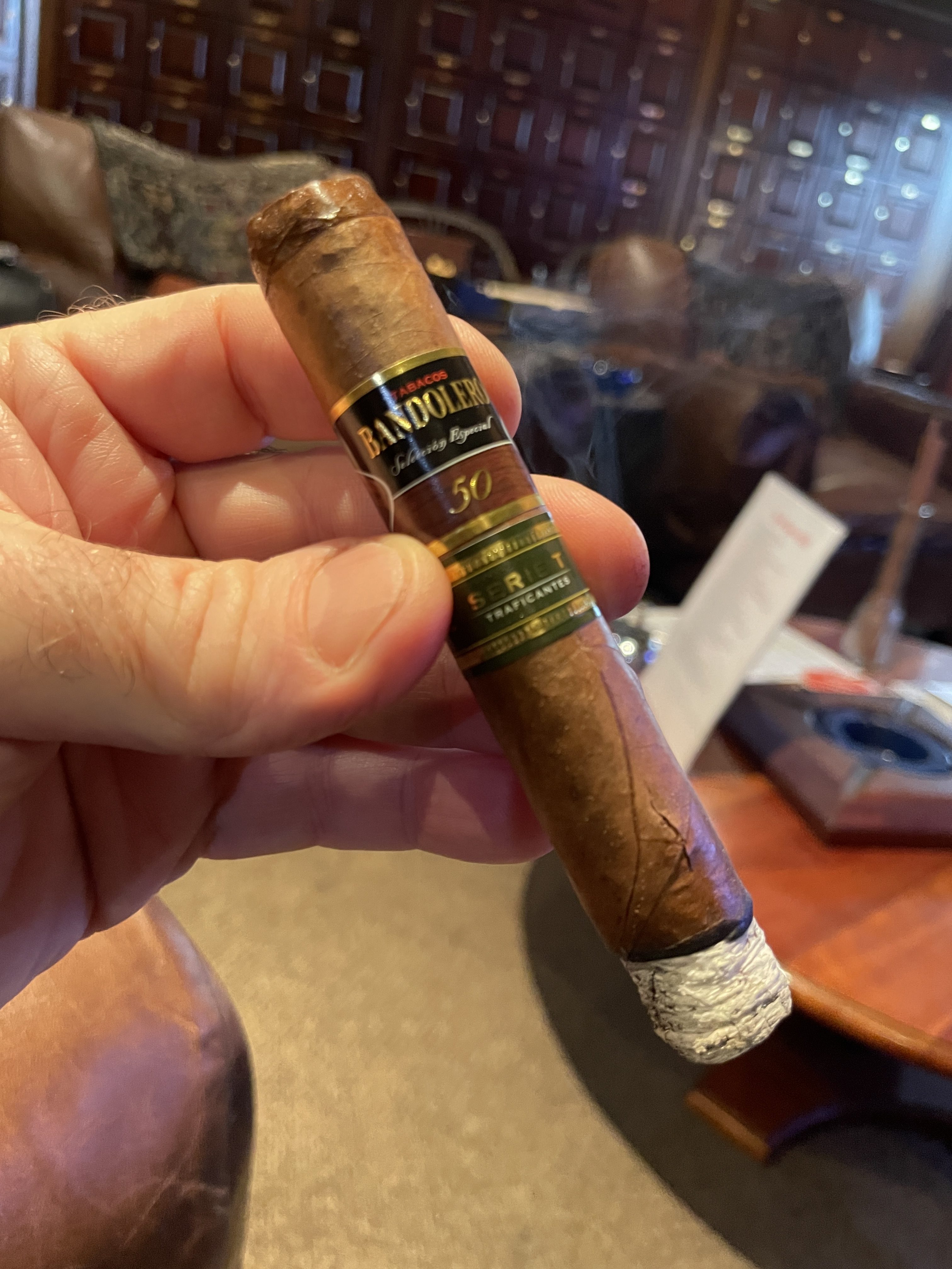 Bandolero Serie T Traficantes is one of three blends under the Bandolero line from Selected Tobacco S.A. The cigars are distinguishable from the others in the line by their green sub-bands, using a Colorado-shade wrapper that falls between the other two blends in the line. Serie T Traficantes is somewhat bold in profile, being known for offering punchy flavors of peppercorn, earth, and roasted nuts.