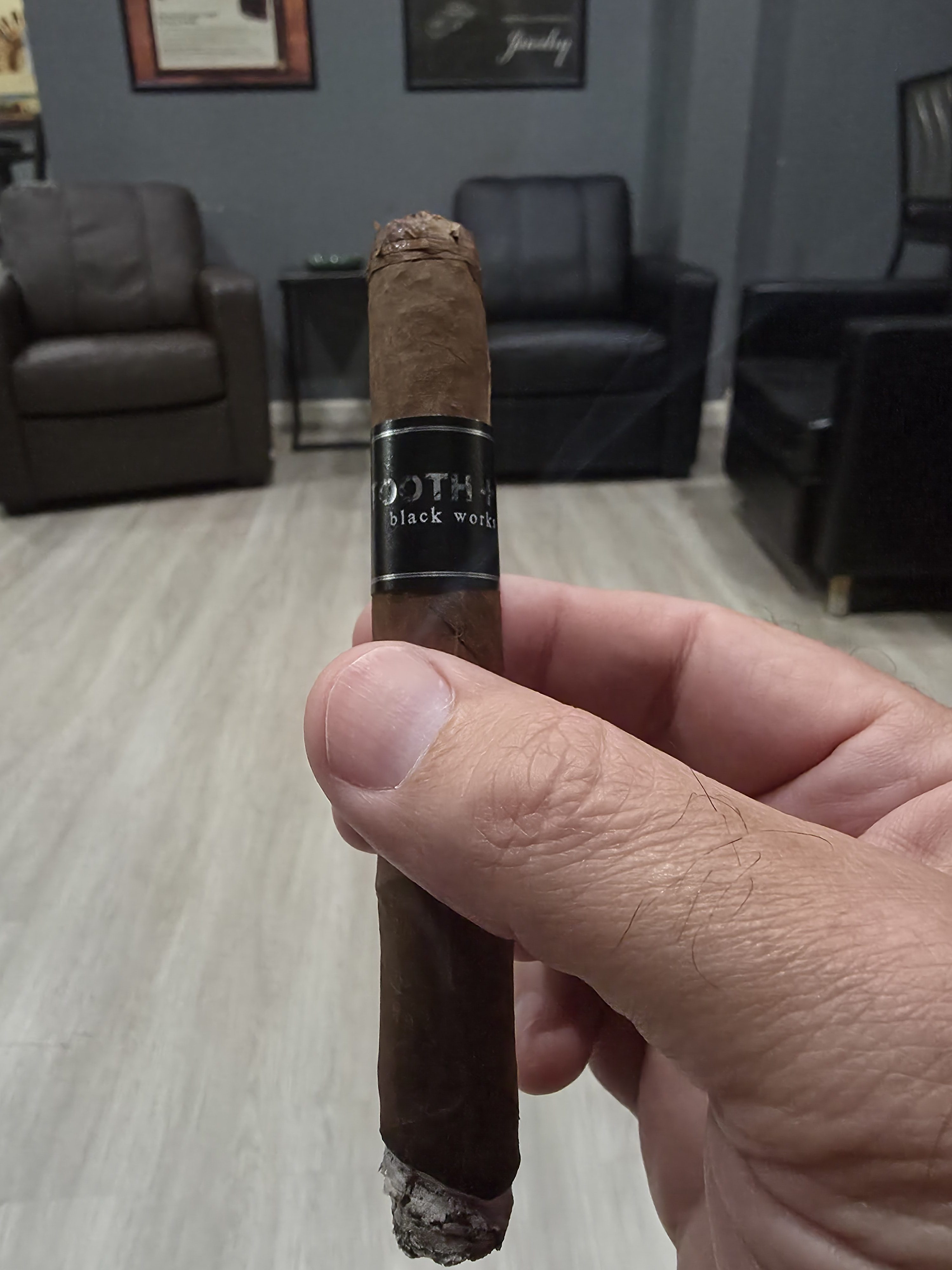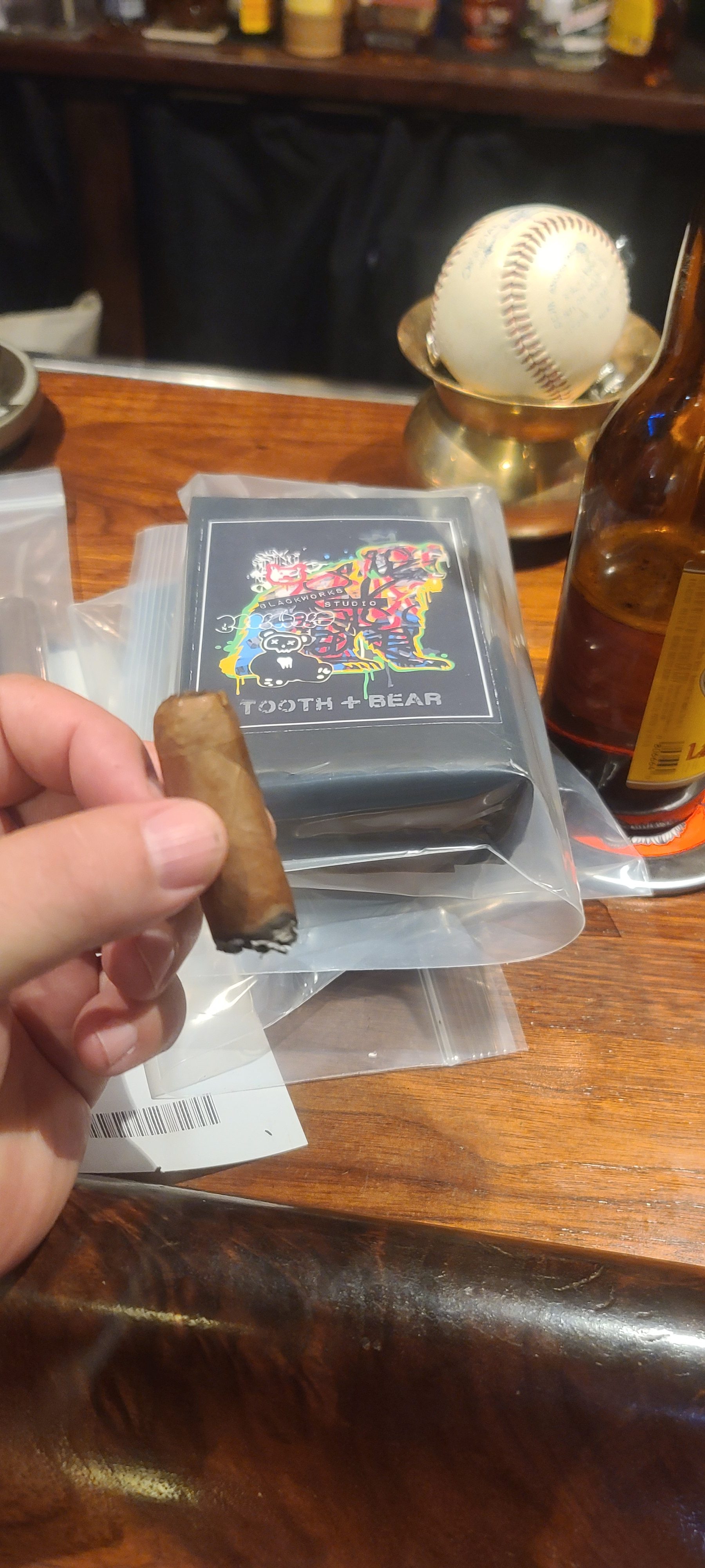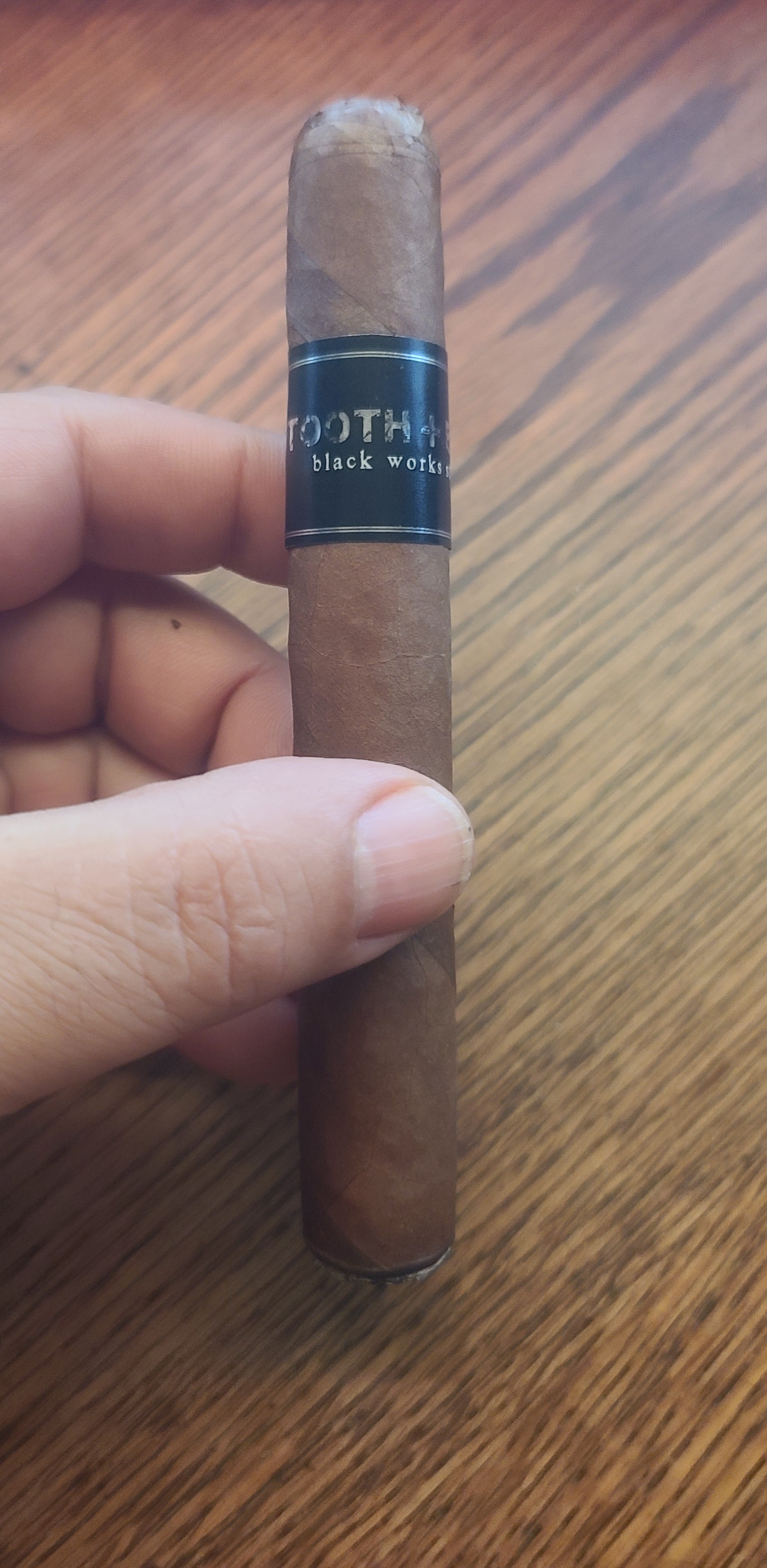 Tooth & Bear is a collaboration between Black Works Studio and retailer Tooth & Bear, located in Woodland Park, CO. The cigars were introduced in 2025, featuring a barber-pole wrapper of Sumatra and Ecuador Habano leaves, an Ecuadorian Habano binder, and Nicaraguan filler. The blend was rolled in a single 5½" x 48 corona gorda size, being offered exclusively through retailer Tooth & Bear.