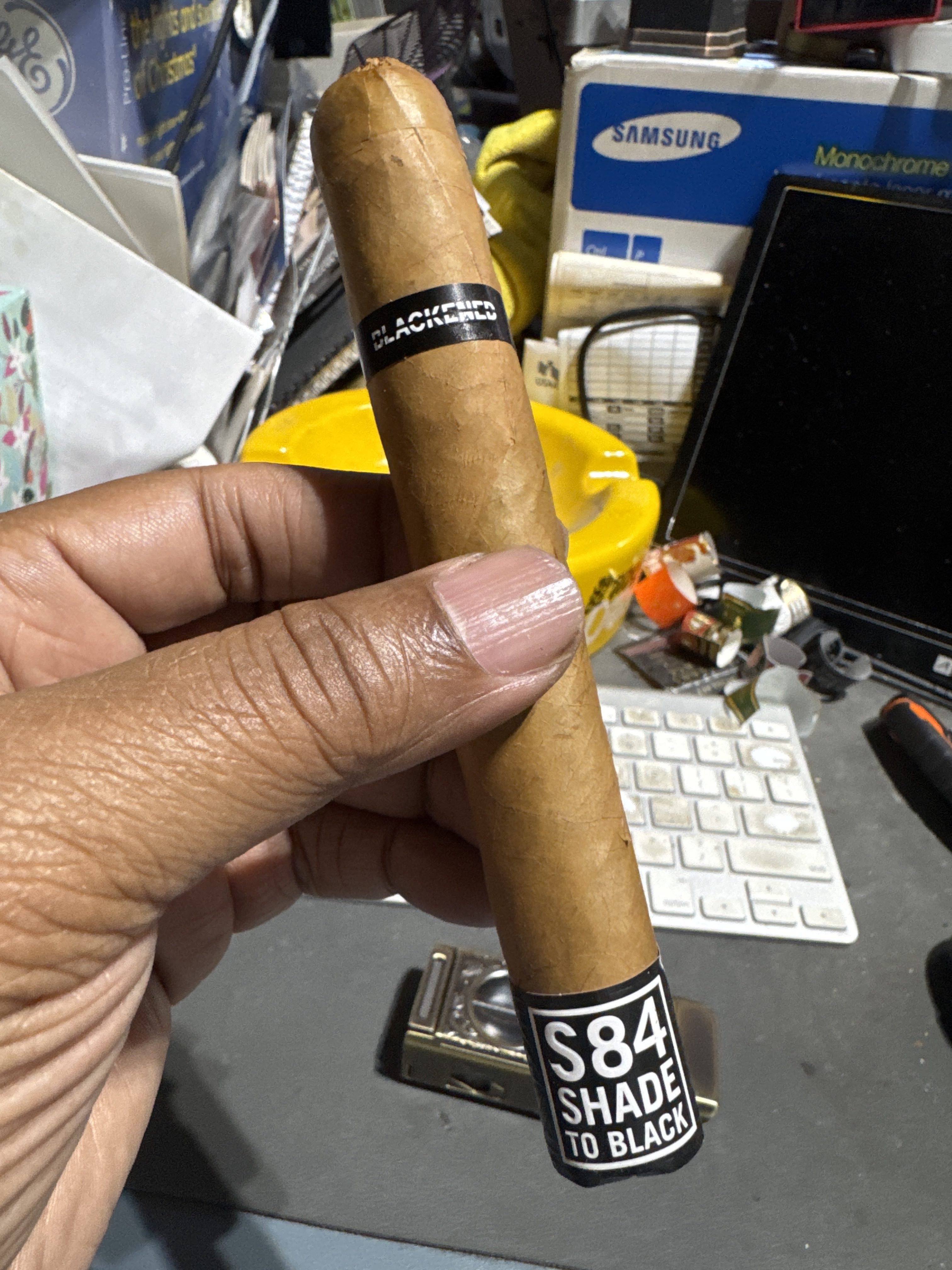 The celeb-class collaboration of Drew Estate and BLACKENED Whiskey began in 2022 with the BLACKENED M81 by Drew Estate cigar. The second release in the line arrived two years later with BLACKENED S84 "Shade to Black" by Drew Estate, once again featuring the collective talents of James Hetfield (Metallica), Rob Dietrich (BLACKENED Whiskey), and Drew Estate's Jonathan Drew and Willy Herrera. While the original's codified "M81" name represented Metallica's 1981 founding, the "S84" signifies the band's 1984 sophomore album, Ride the Lightning, with the cigar's name playing off the "Fade to Black" track. Like the M81 cigar, the S84 utilizes hearty maduro leaves throughout the binder and filler, including a Connecticut Broadleaf binder and fillers of Nicaraguan maduro and Pennsylvania Broadleaf. The primary differentiator is the S84's new Ecuadorian Connecticut wrapper, contrasting the conventionally mellow wrapper with a dark, robust interior recipe.