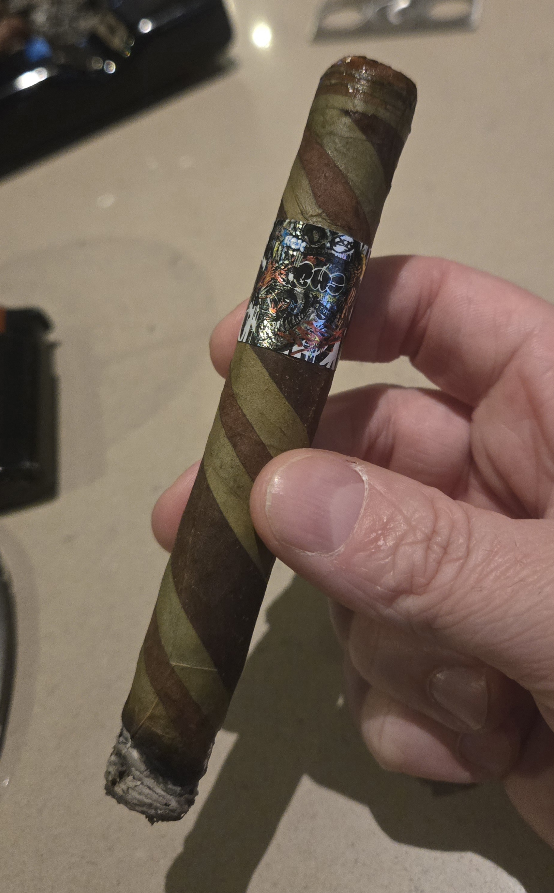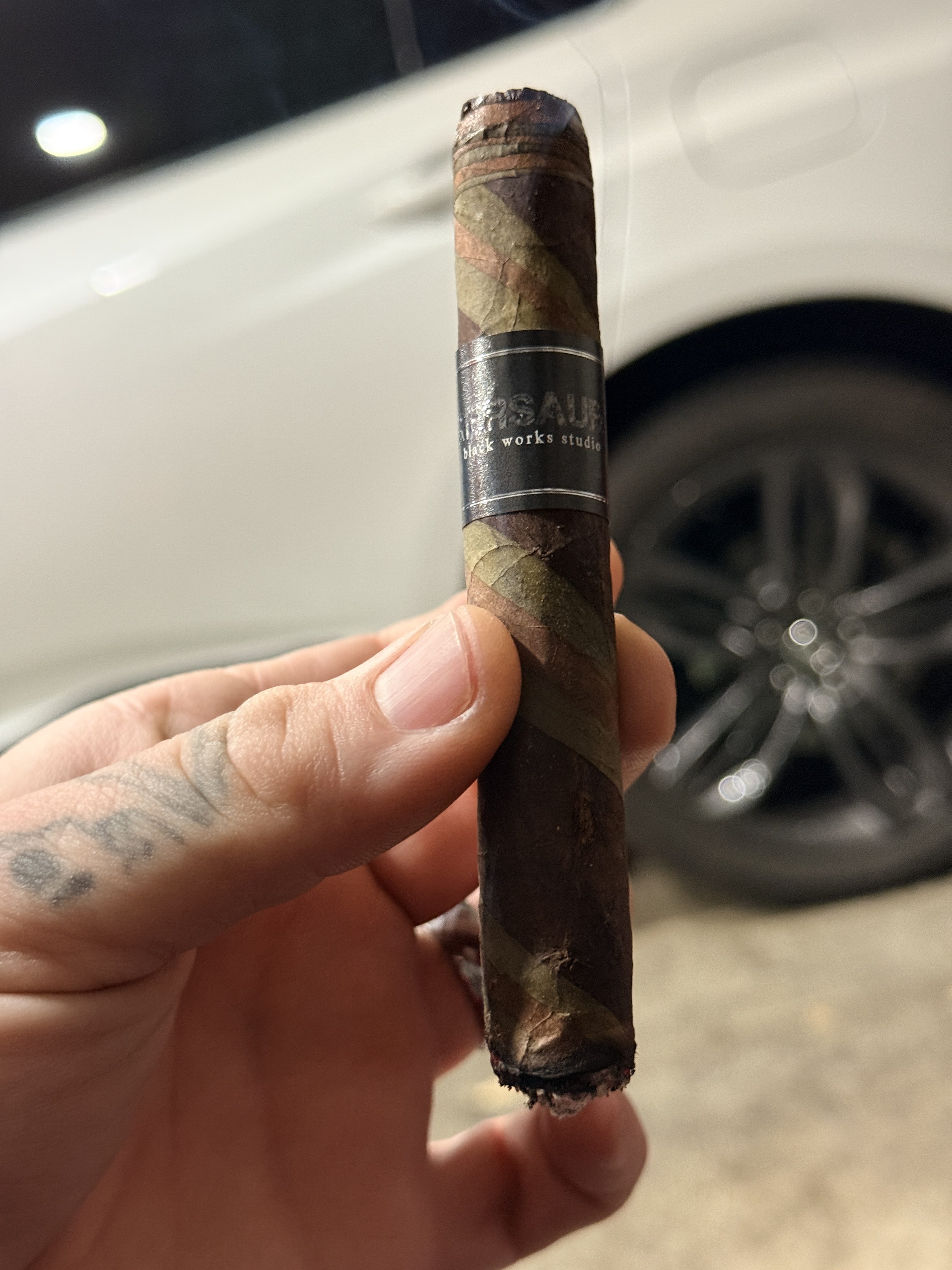 Black Works Studio added onto the brand's Tiger Series in 2025 with Tigersaurus, being a spinoff from 2017's Neon Tiger. The cigar features a multi-tiered barber pole wrapper, playing on the idea that no two tigers have the same stripes with unique designs between each tiger-themed cigar. This one uses Pennsylvania and Connecticut Broadleaf, along with candela from Honduras. The wrapper surrounds an Ecuadorian Habano binder and all-Nicaraguan fillers, being limited to 800 boxes (15-count) for the U.S. and an additional 50 allocated to Europe.