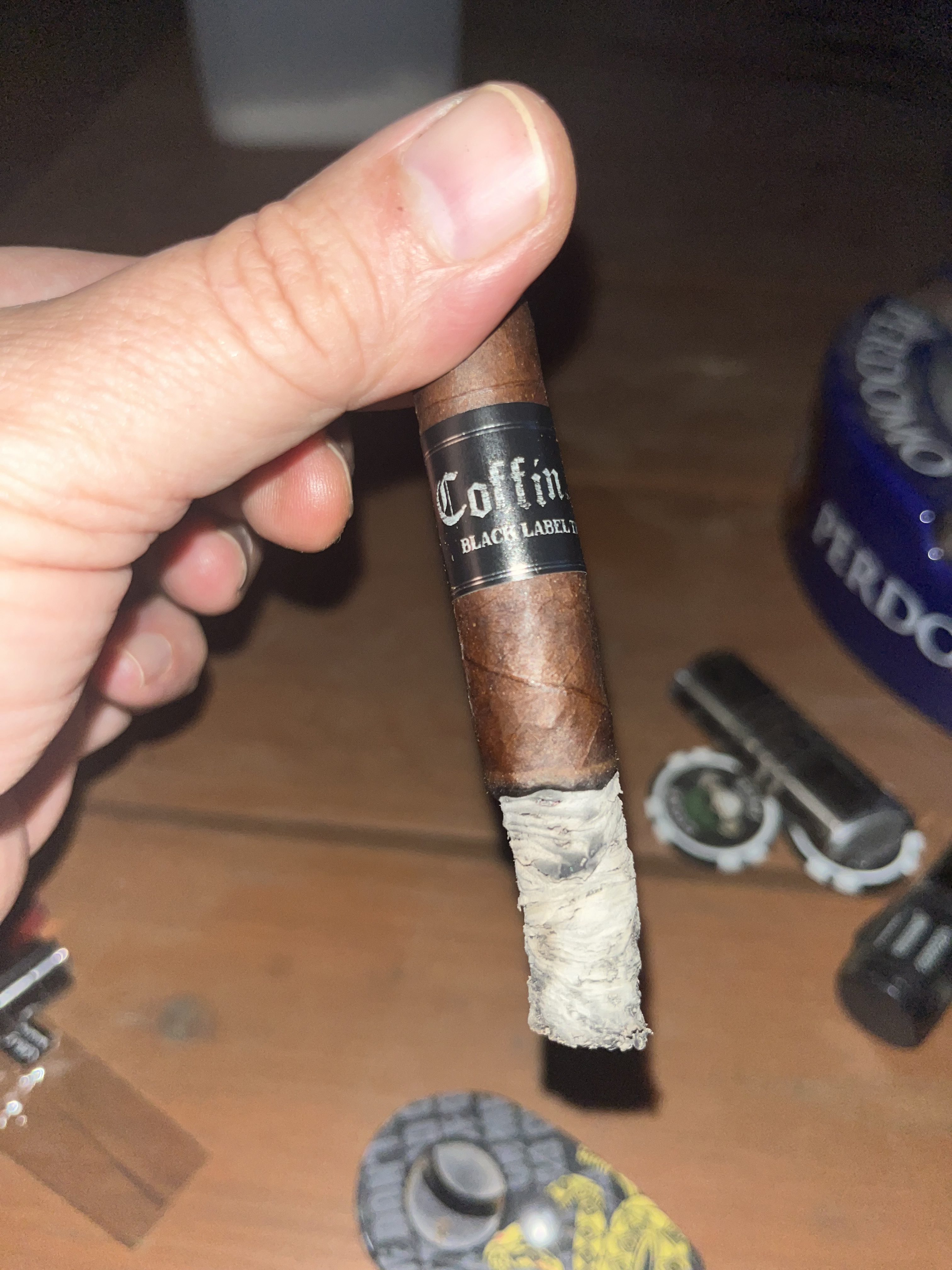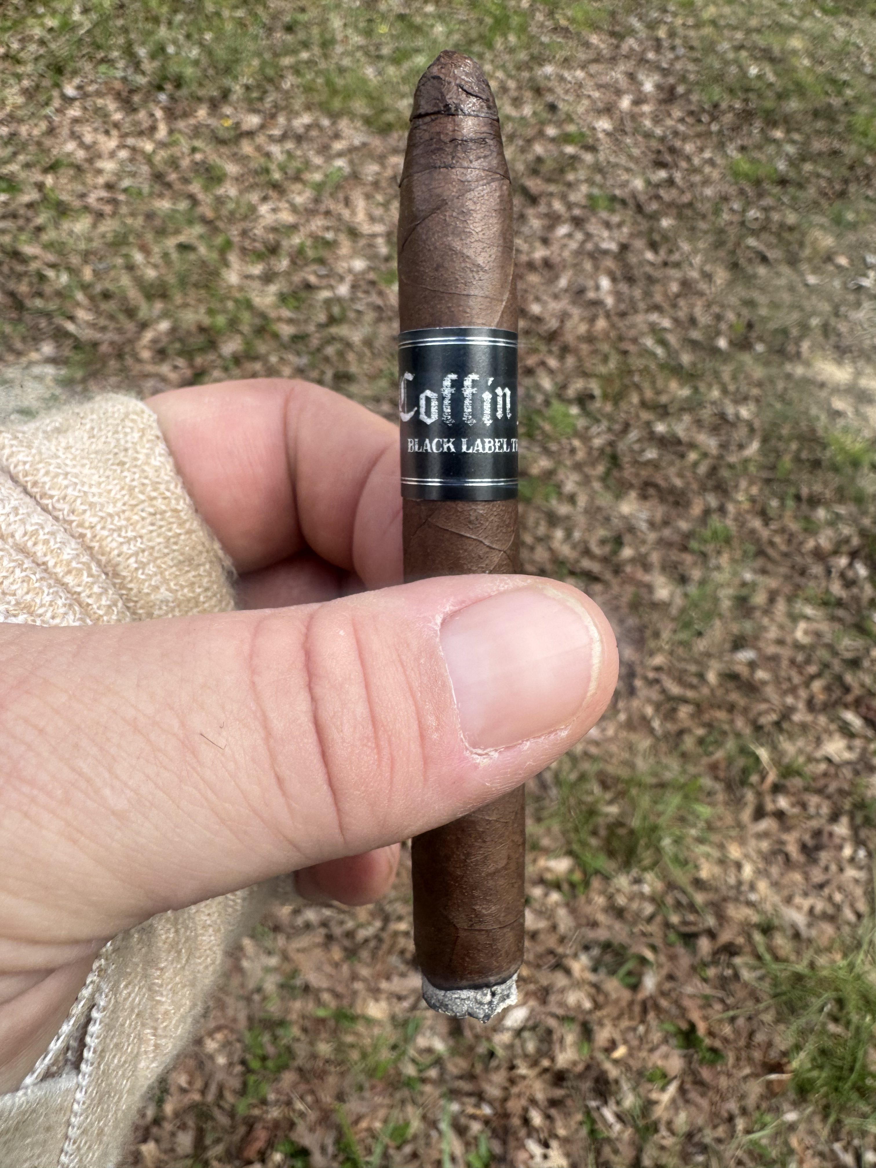 Black Label Trading Company (BLTC) introduced the small-format Coffin Nails cigar in 2024, being sized at 5" × 40 and packaged in "flip-top box packaging [that] makes it convenient to take these cigars anywhere." Coffin Nails boasts a dark Ecuadorian Habano wrapper, a Honduran binder, and fillers from Nicaragua and Honduras.