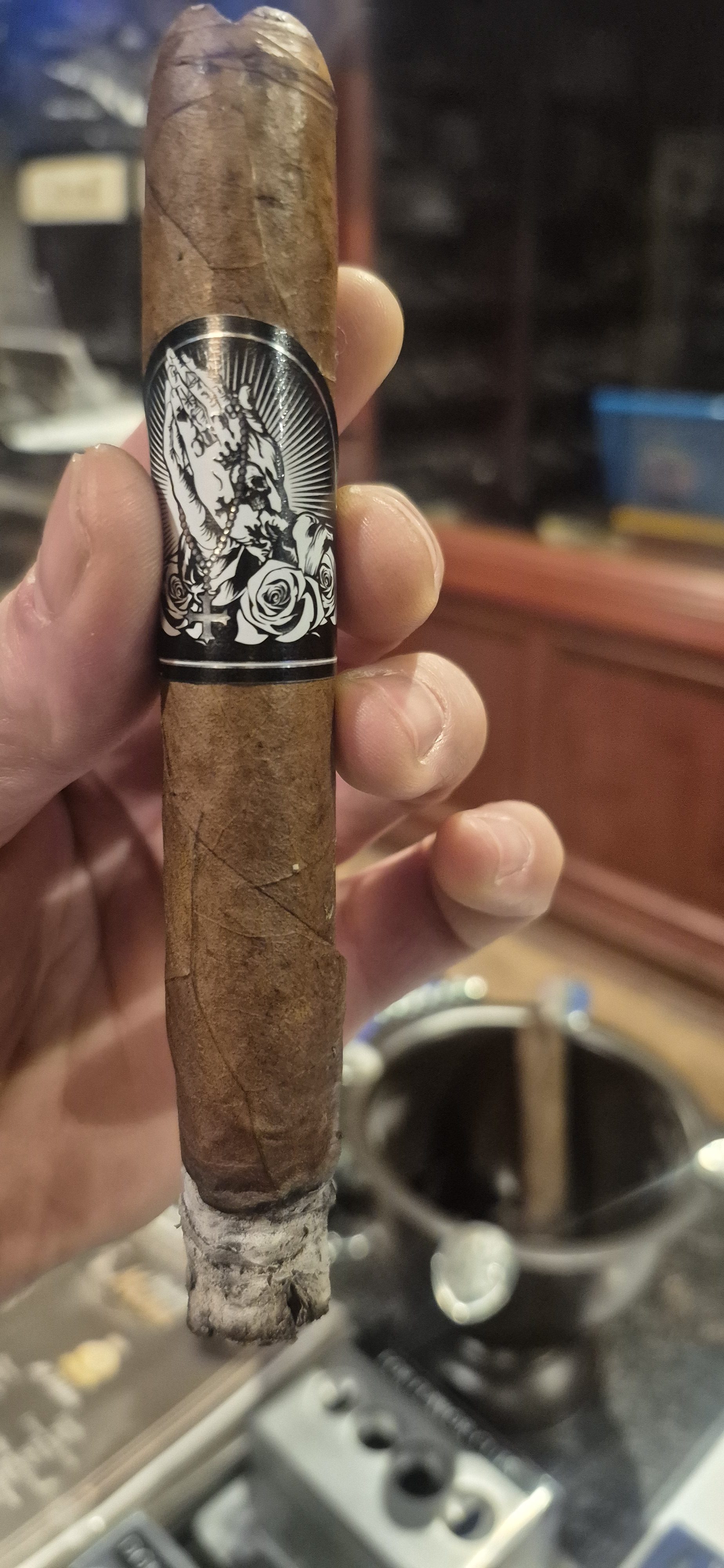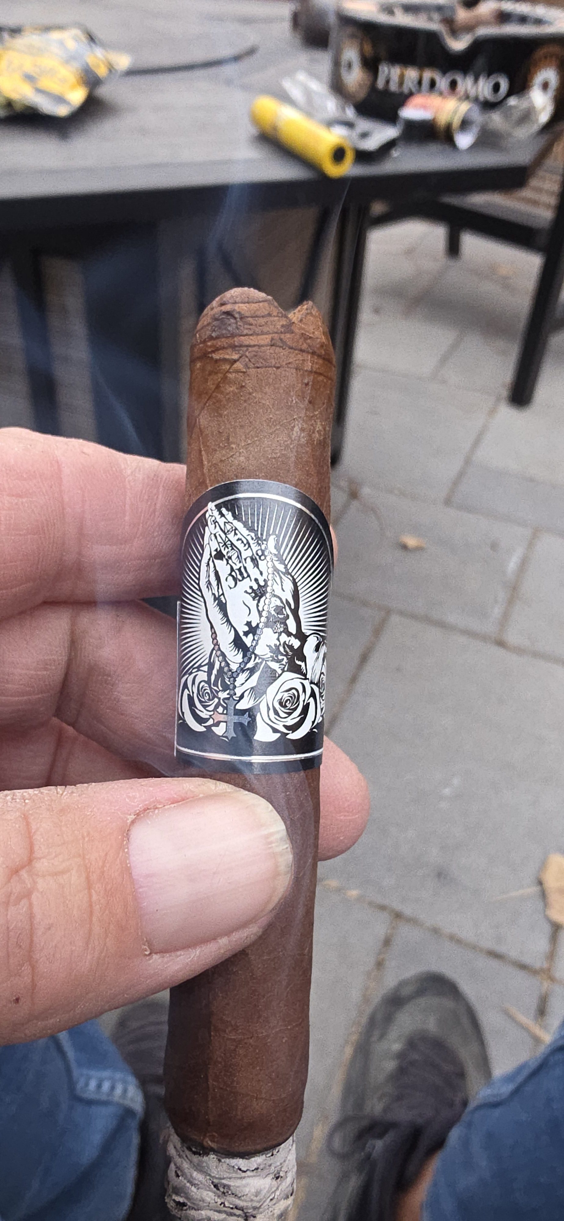 Nice smoke, dark and earthy. Smoked meat, espresso, hickory. Quick burner, but good construction. Solid medium + body.