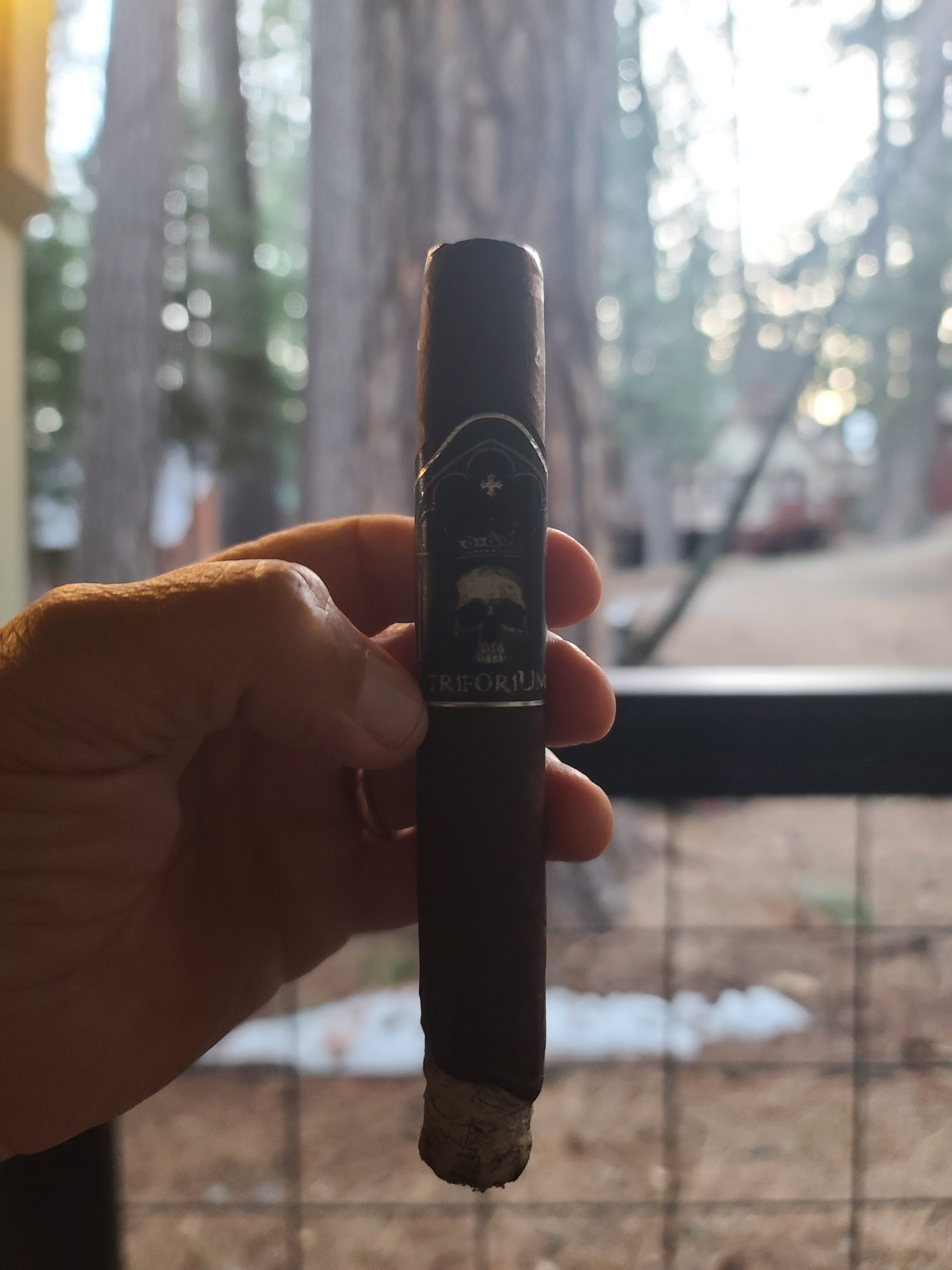 The Triforium cigar is a collaboration between Oak Glen Tobacconist and Black Label Trading Co., being made to celebrate the former's sixth anniversary in 2025. The cigars were rolled in a 6" x 50 toro size, featuring an Ecuadorian Habano maduro wrapper, an Ecuadorian Habano binder, and all-Nicaraguan fillers.