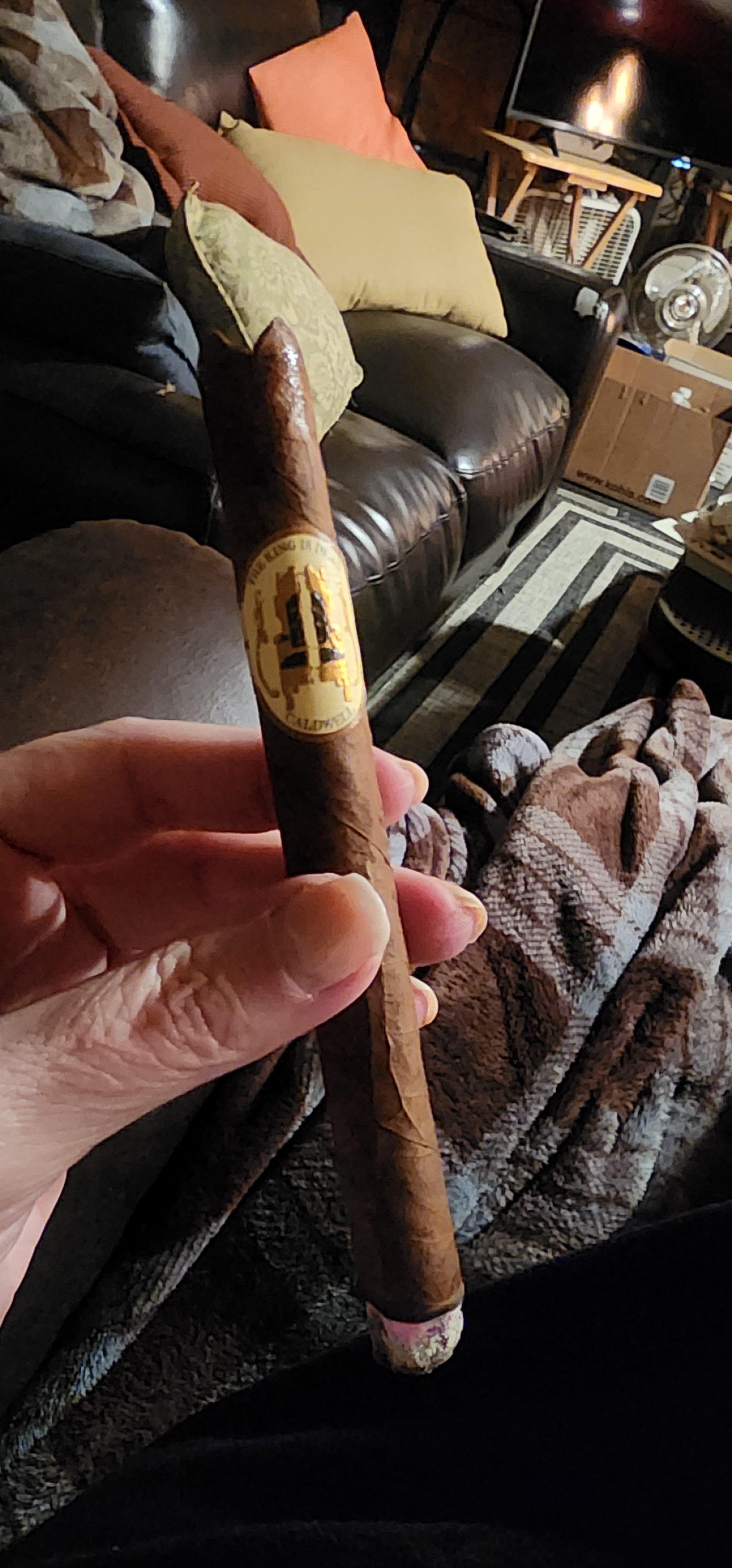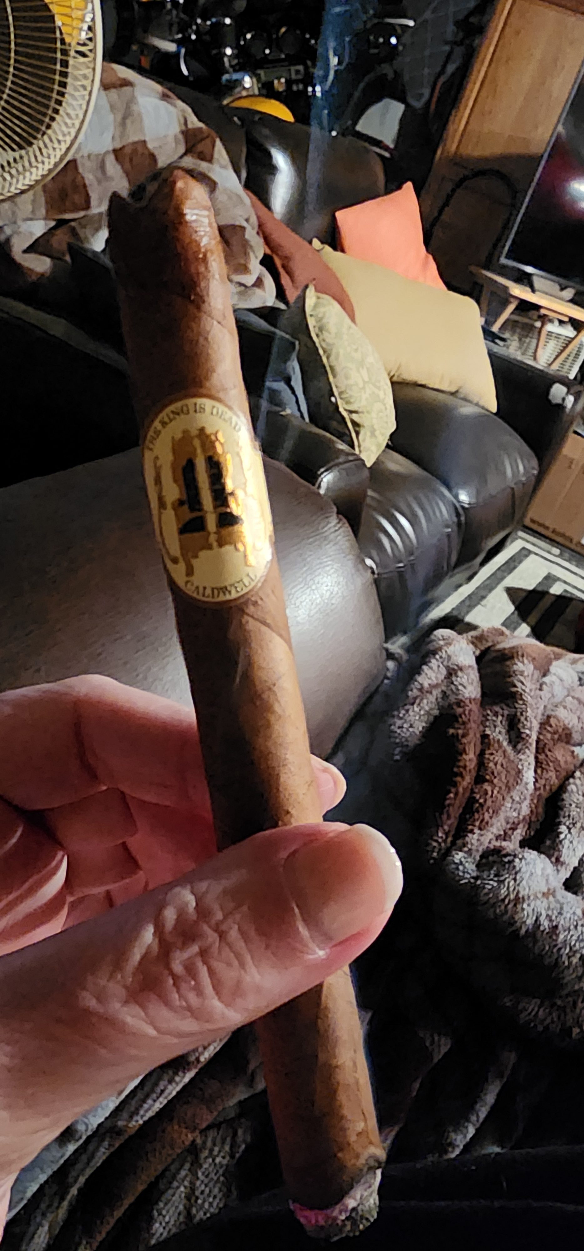 Caldwell's The King is Dead cigar is one of three original core-line offerings from Caldwell Cigar Co., joining the Long Live the King and Eastern Standard lines. The blend originally featured a highly specific recipe of a Dominican negrito wrapper from the 2008 crop, a 2006 Corojo Dominicano binder, and Dominican fillers of ’06, ’08, and ’10 vintages. It has now been simplified to use a Dominican negrito wrapper and all-Dominican binder/filler.