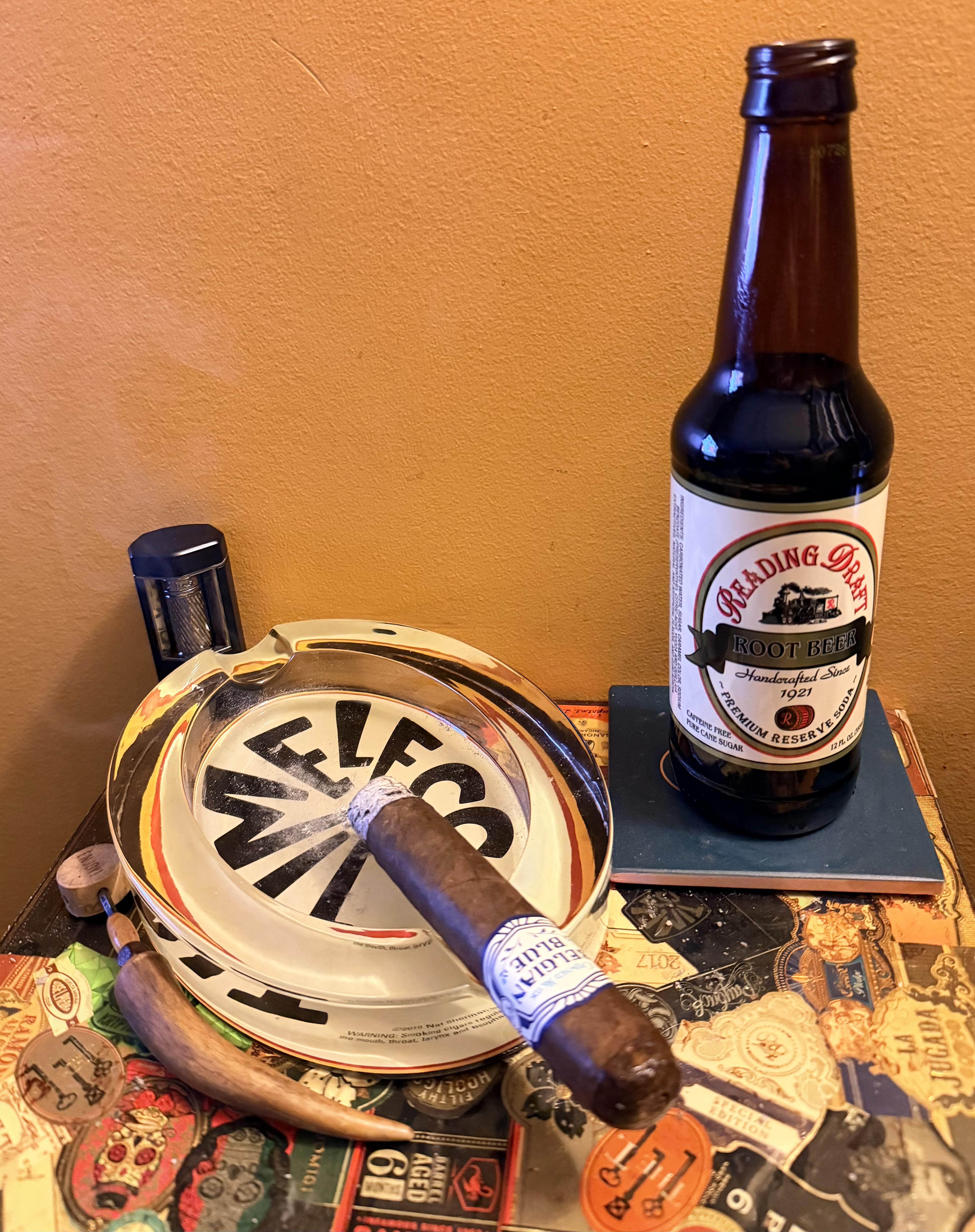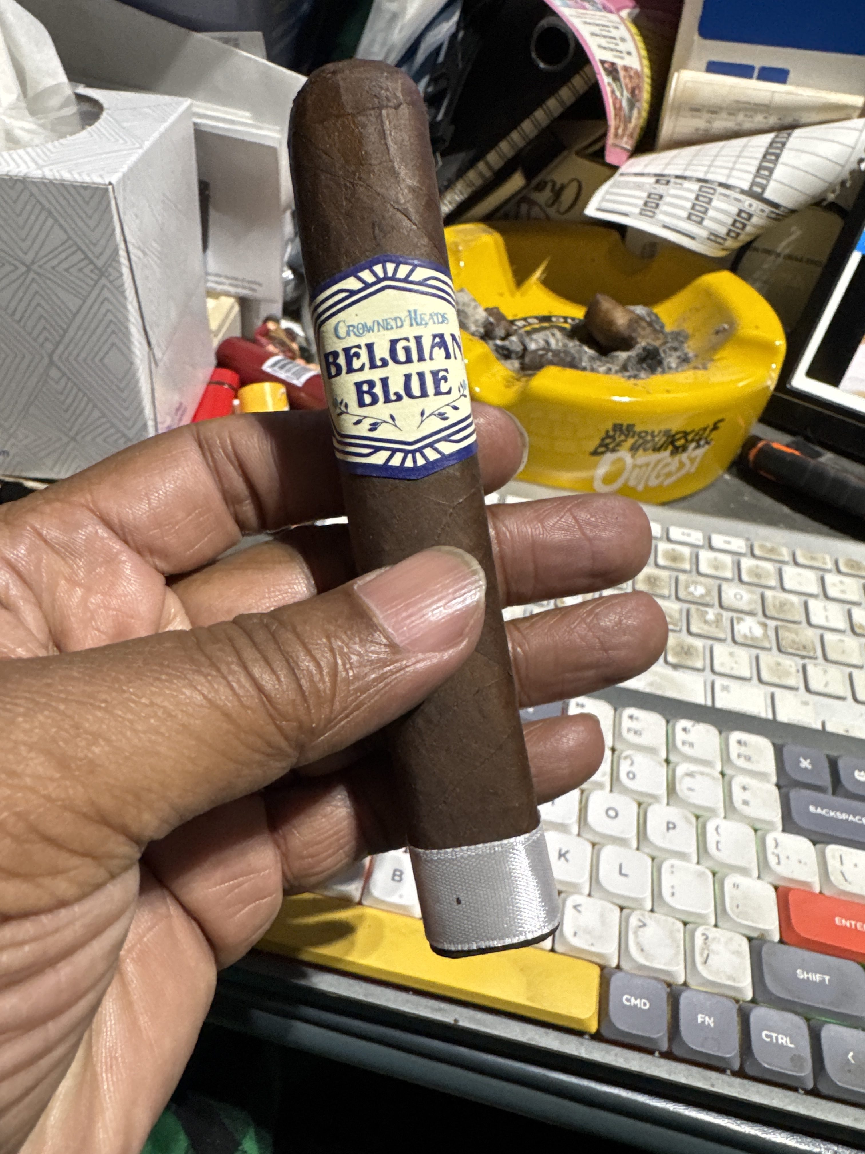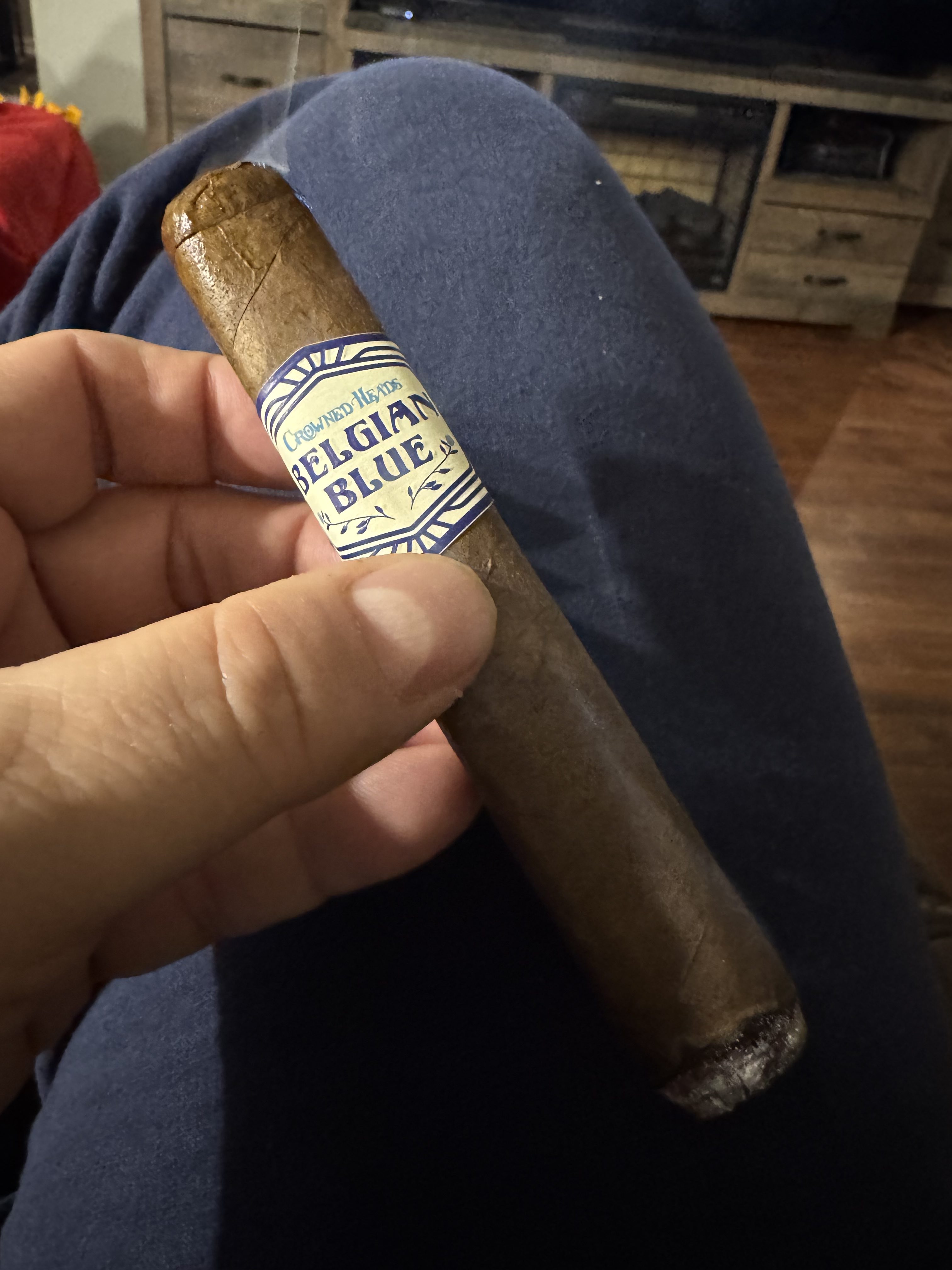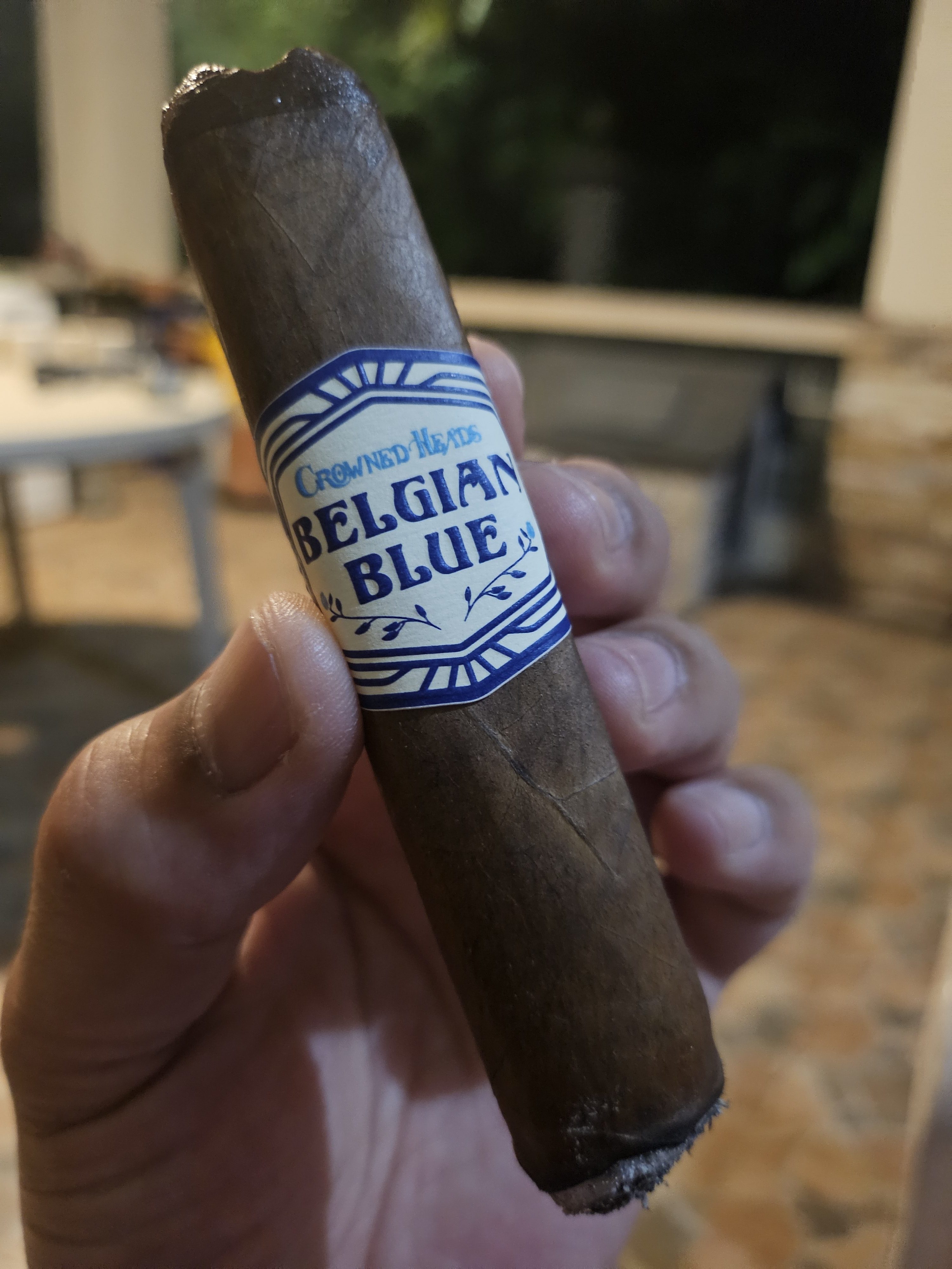 The Crowned Heads Belgian Blue LE 2024 cigar debuted in 2024, blended for strength but not without flavor first and foremost. The blend is said to include ligero-priming leaves (the highest/strongest priming on a tobacco plant) as 75 percent of its makeup. It features a Mexican San Andrés wrapper, an Ecuadorian binder, and fillers from the Dominican Republic and Nicaragua. Despite being intense in profile, the cigar is described as "strong in terms of body but not in a nicotine-nausea-inducing sort of manner."
