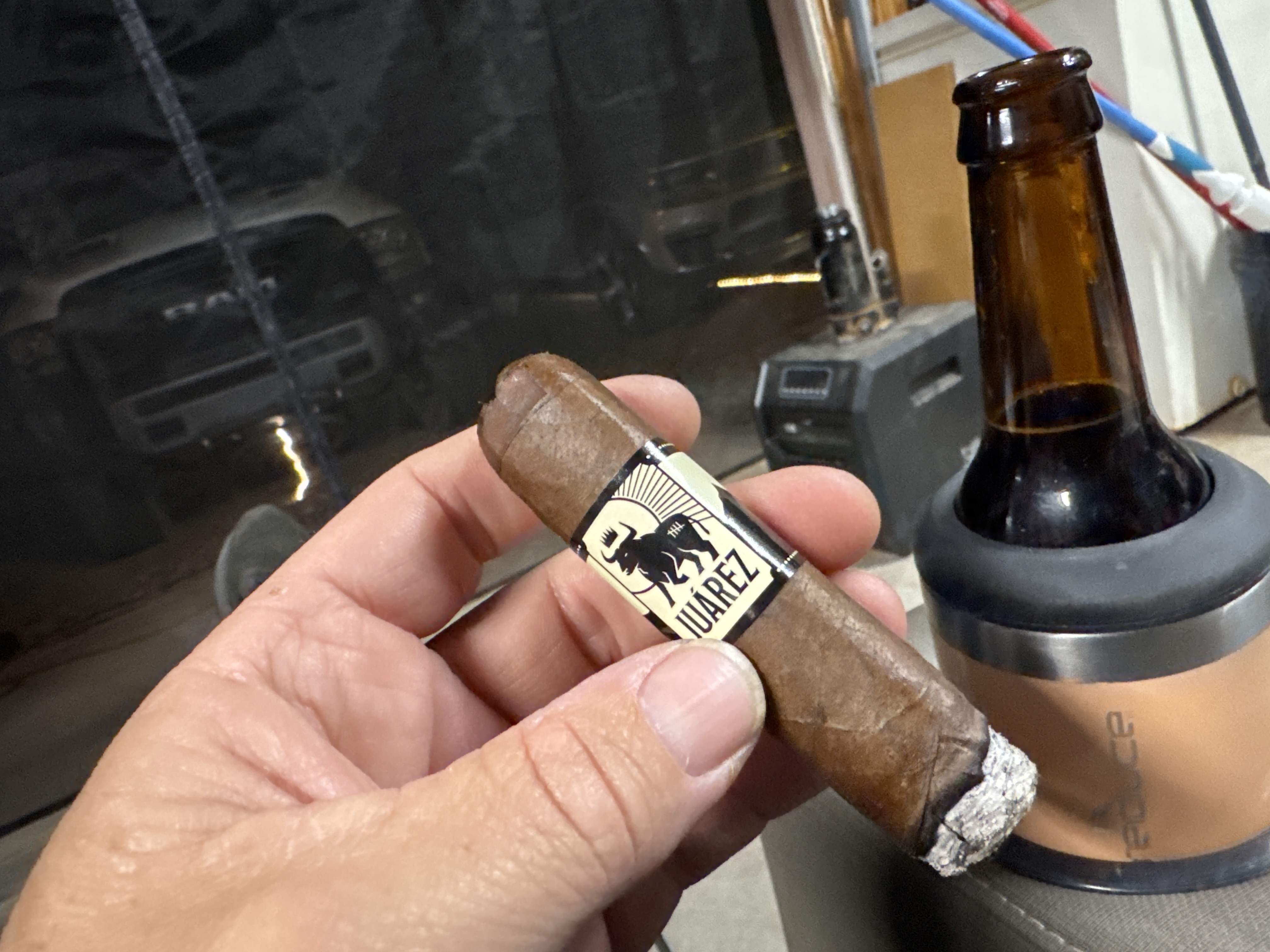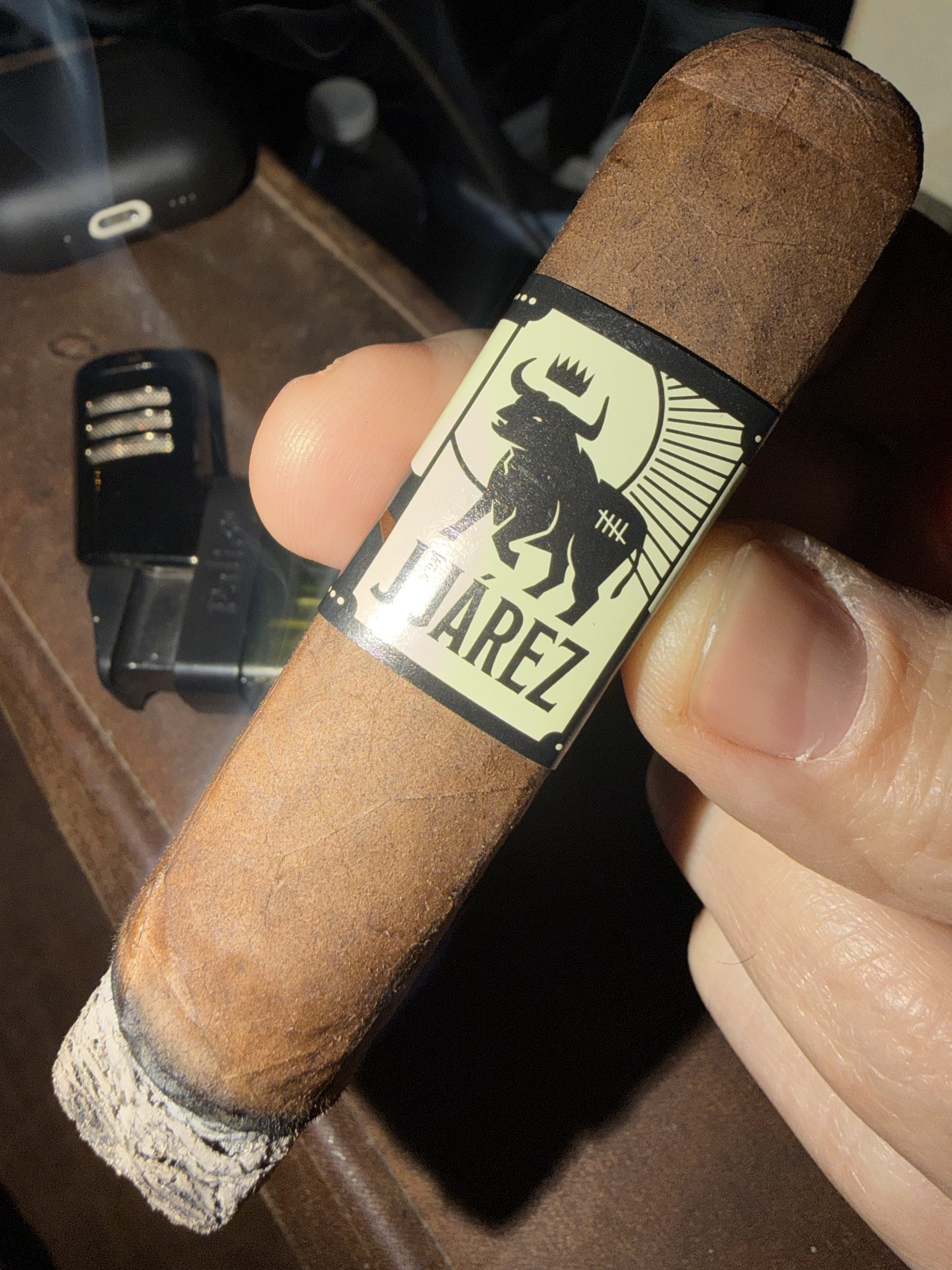 Crowned Heads introduced the Juárez Bulldozer LE 2025 cigar in the spring of 2025, being the first limited offshoot of the Juárez line since the small-format Shots release from 2022. The cigars were rolled in a single 5½" x 58 box-pressed gordo format, featuring a Mexican San Andrés maduro wrapper, an Ecuadorian Sumatra binder, and fillers from the Dominican Republic, Mexico, and Nicaragua. This was said to be a tweaked version of the original recipe, which doesn't list Mexican tobacco in the filler. Finally, the Bulldozer was inspired by Jonny Cash’s performance of “Cocaine Blues,” as are the other sizes/releases throughout the line.