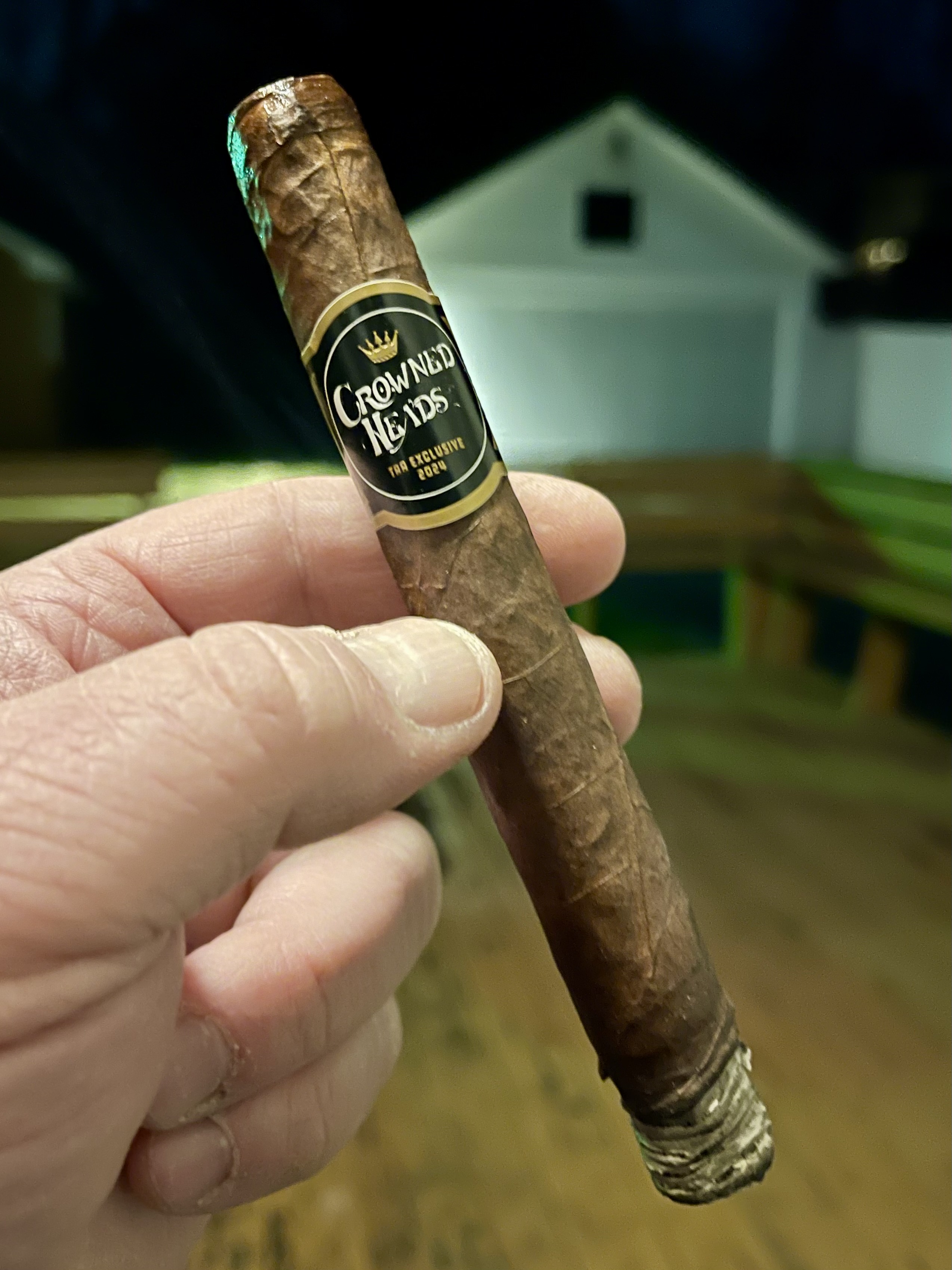 The Crowned Heads TAA Exclusive 2024 cigar debuted in 2024 as the 10th limited release from Crowned Heads in the annual TAA Exclusive Series. Unlike every previous release, the cigar diverged from The Angel’s Anvil / The Lost Angel theme, which explored the story of a fallen angel and his journey to craft new wings in order to return to heaven. Instead, the Crowned Heads TAA Exclusive 2024 cigar offered a simplistic concept, using the company's own logo and TAA branding. The cigars were rolled in a single 6¼" x 50 toro extra format, featuring an Ecuadorian HVA wrapper, an Ecuadorian binder, and Nicaraguan and Pennsylvania Broadleaf fillers. The cigars were limited to 500 boxes of 20 cigars, being rolled out of Ernesto Perez-Carrillo's Casa Carrillo factory in the DR.