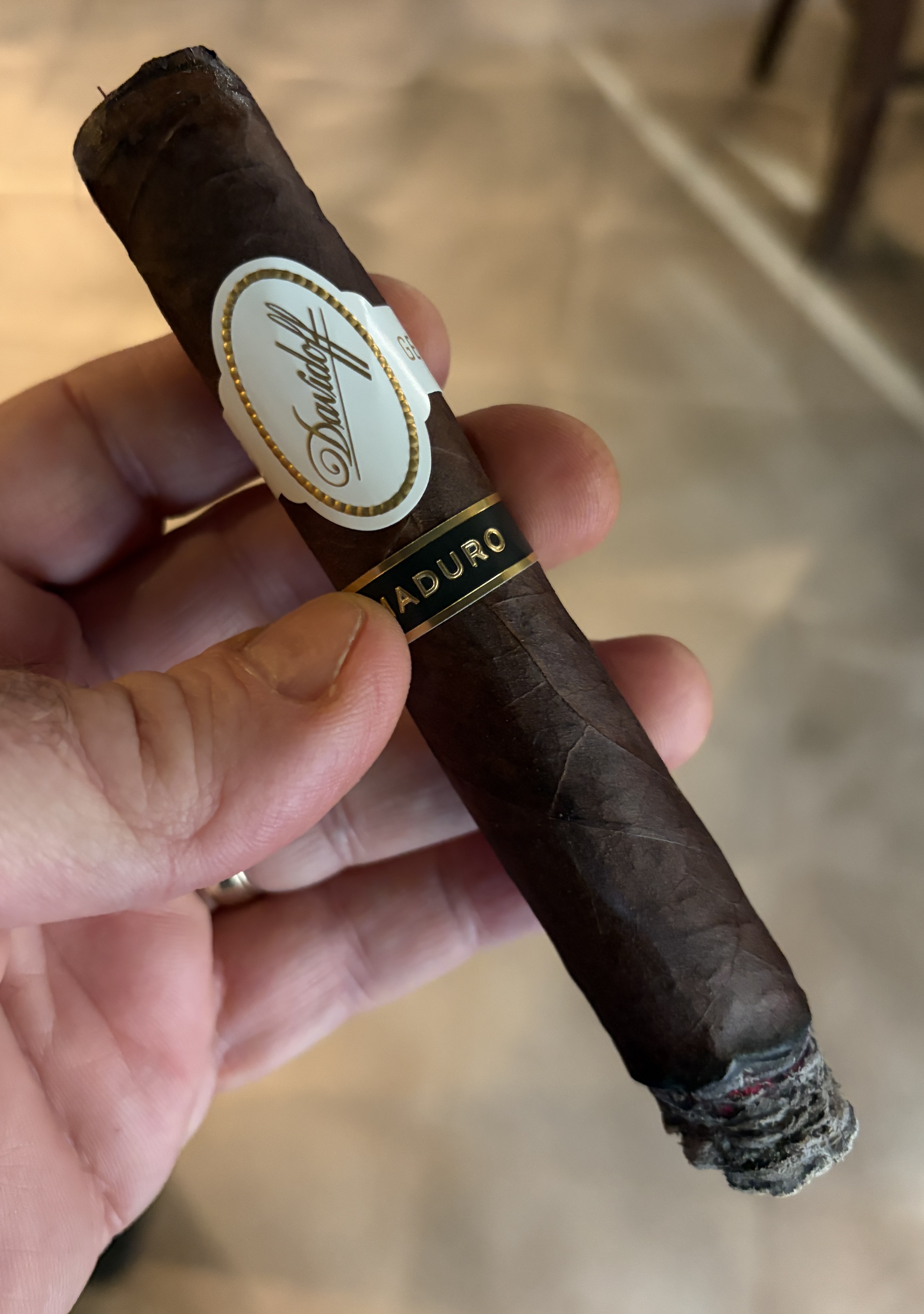 The Davidoff Maduro cigar was first rolled between 2008 and 2016, later being brought back in 2024 with a tweaked recipe. This cigar makes use of a high-priming Ecuadorian maduro wrapper over a Mexican binder and fillers from the Dominican Republic. For the 2024 version, the wrapper is said to be fermented for twice as long as usual, lasting 16 months in the pilones before an added aging process.