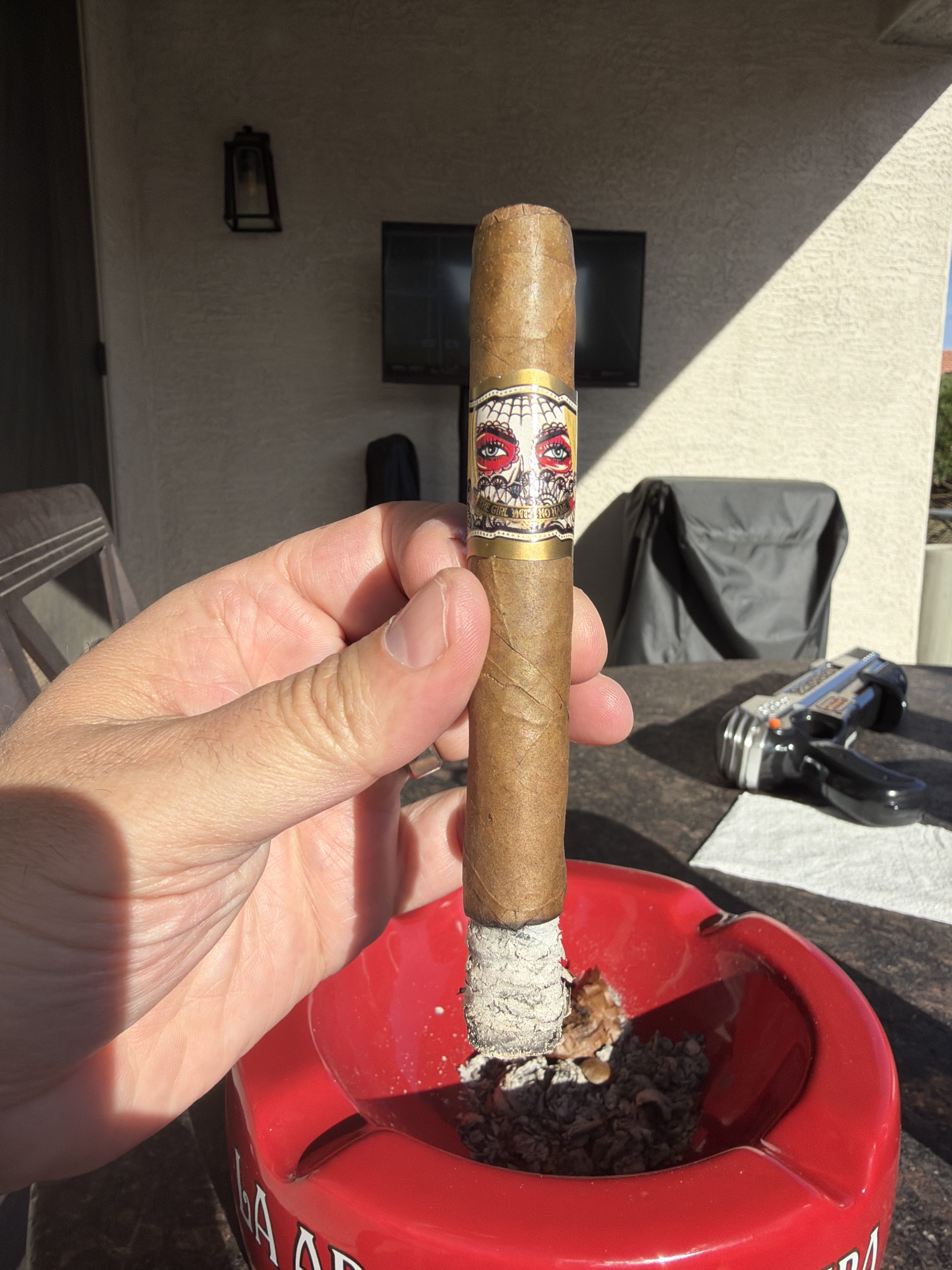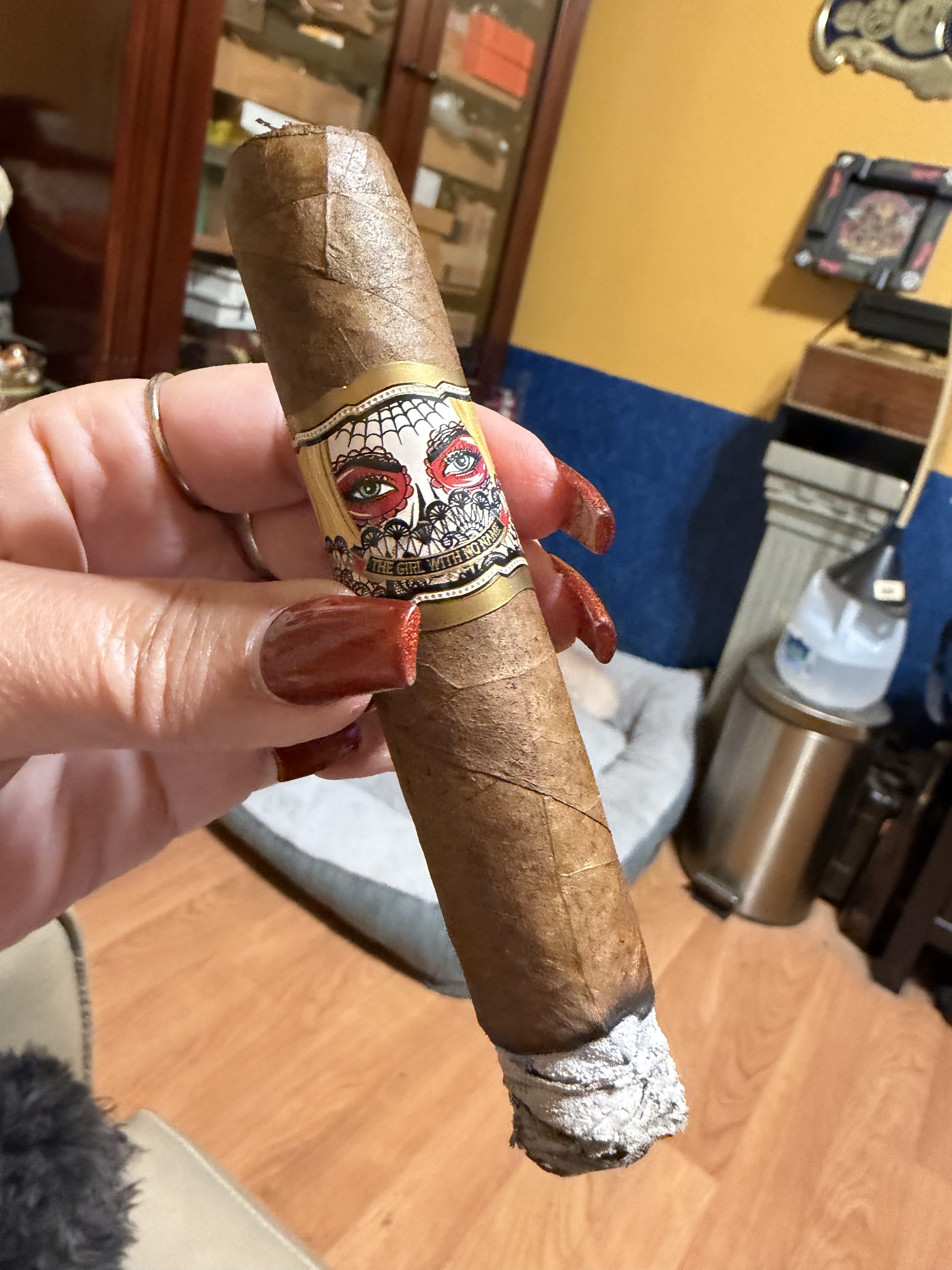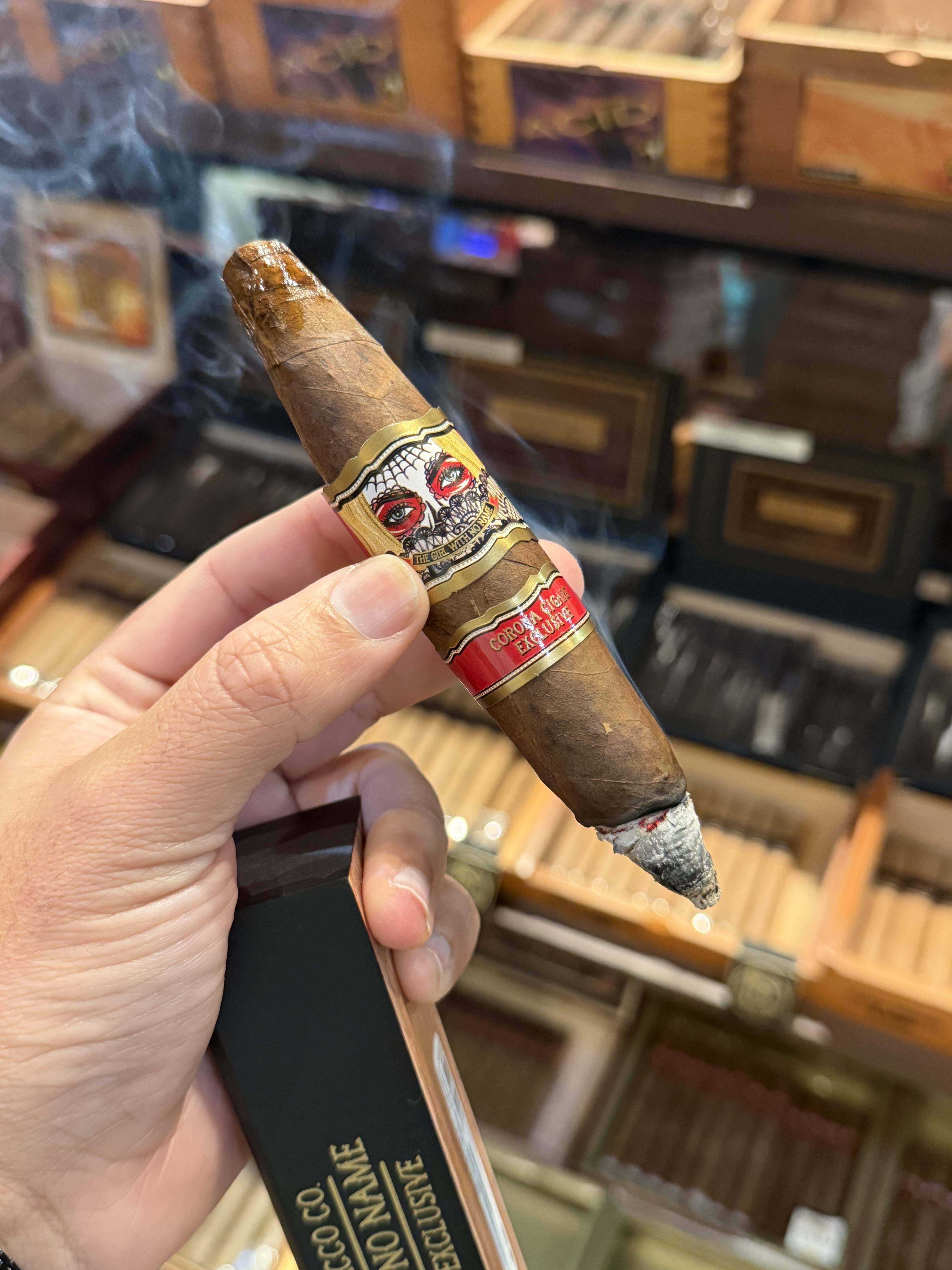 The Girl With No Name was first introduced in a toro format for Cigars International and associated retailers in the fall of 2022. The cigars have since been expanded to include a robusto format for Famous Smoke Shop. The blend uses a Sumatran wrapper and undisclosed fillers described as being "blended with fragrant and exotically sweet tobaccos."