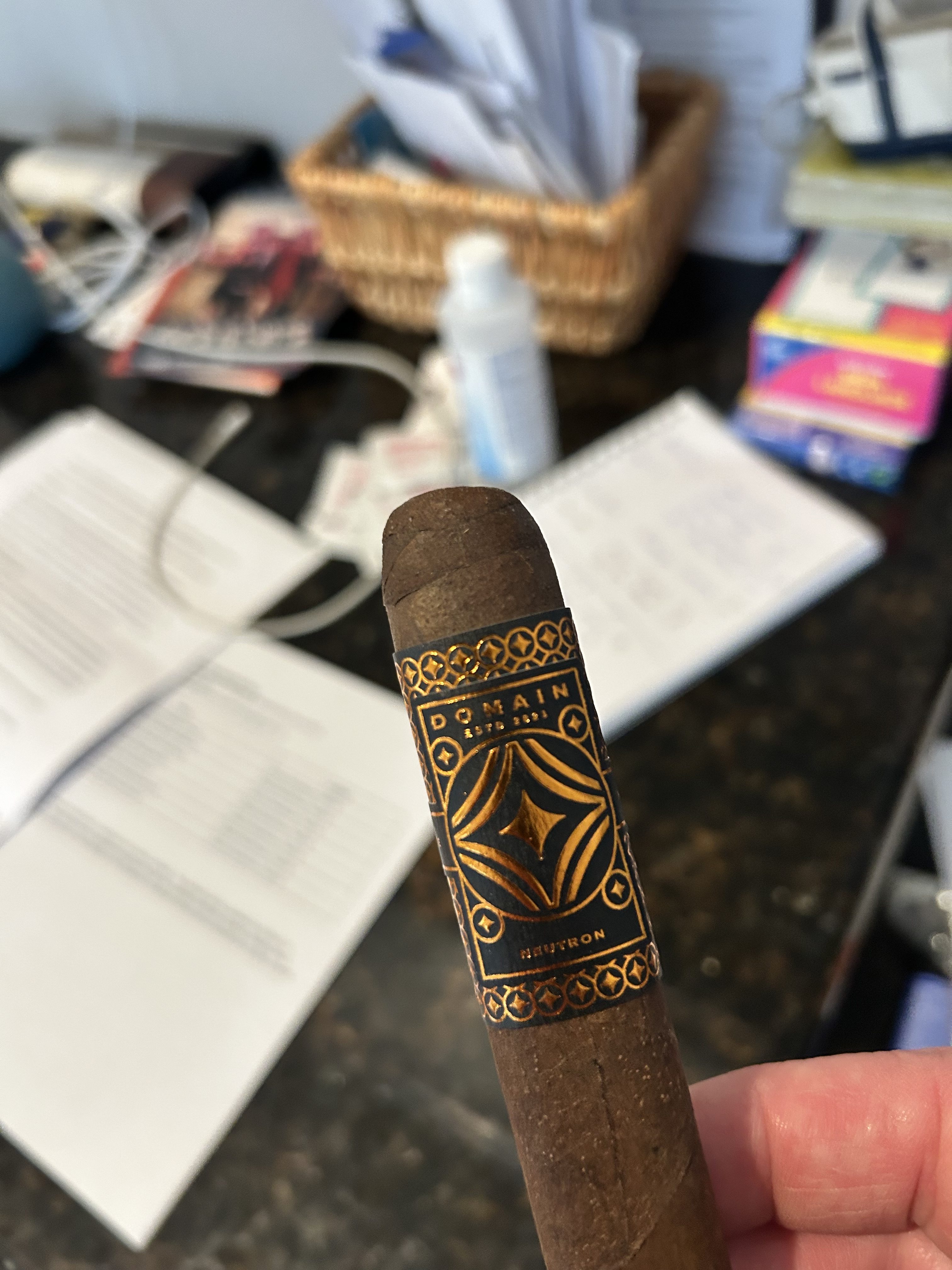 Domain Neutron is one of two cigars made to kickoff the Domain Cigars company, a creation of Esteban Disla and Daniel Lance. The company describes neutrons as being characterized by their neutral charge, which they relate to the medium intensity of the Domain Neutron cigar. Such a profile is considered a tricky task when based around the Mexican San Andrés wrapper, which is the pitch for the Domain Neutron cigar. This maduro wrapper surrounds all-Nicaraguan binder/fillers from the Condega and Pueblo Nuevo regions of the country. These leaves are said to undergo a "Despanic Process" of fermentation, which is described as an exclusive process for the company.