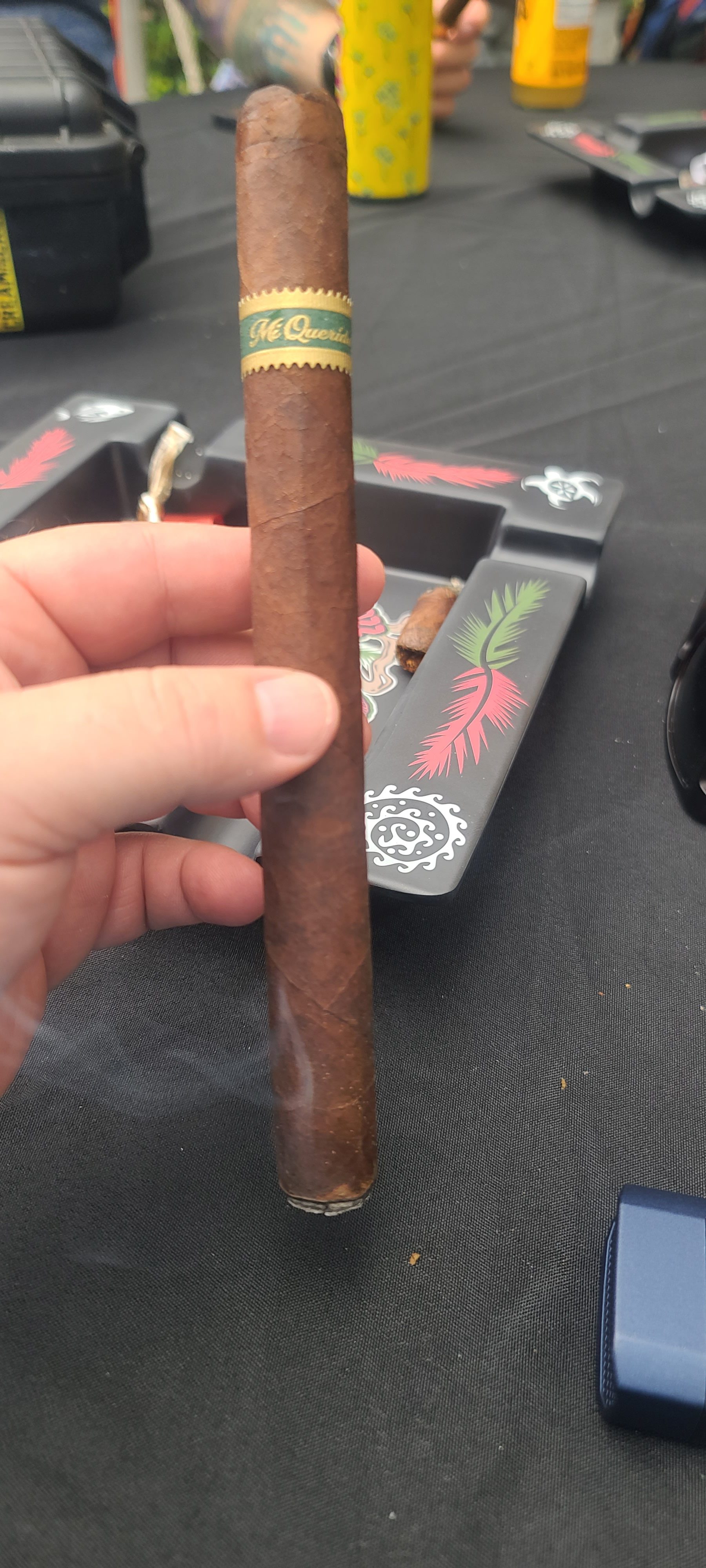 The Mi Querida Green PataPerro replaced the company's Polpetta cigar in 2023 as the event-exclusive offering, as Polpetta became a regular release for Dunbarton. According to Steve Saka, Dunbarton owner/founder, "pataperro is Nicaraguan slang for the idiom of "Pata de Perro" which refers to those stray dogs that are always on the move, wandering the streets, that never stop moving, traveling from place to place and when a person is like that in life, they will refer to them as a pataperro." In terms of the cigar, it uses a Racing Green version of the Mi Querida band, being limited as an event-exclusive (e.g. the PataPerro size) or other limited variants (such as the Mi Querida Green No. 2 or The Emerald Fish). The blend features a ligero-priming Connecticut Broadleaf wrapper and all-Nicaraguan binder/fillers.