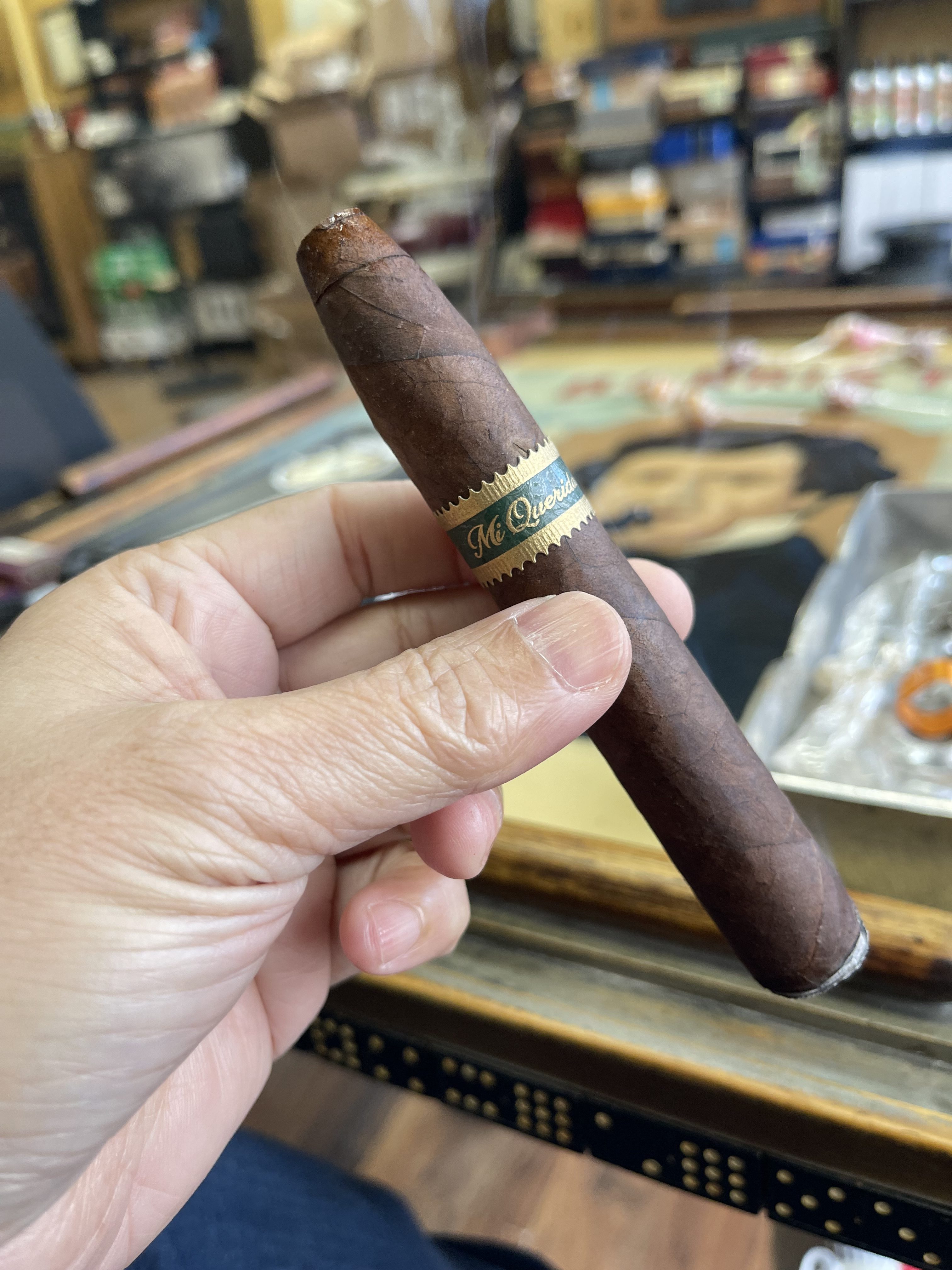 PataPerro vitola, nice smoke. Dark, earthy and balanced. Retrohale is fire, really comes alive in the middle 3rd
