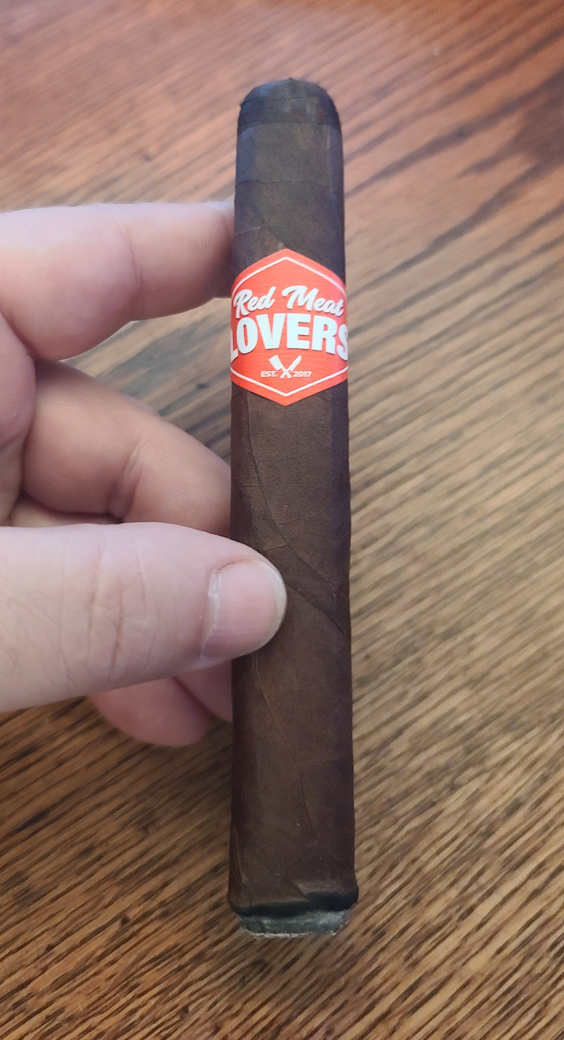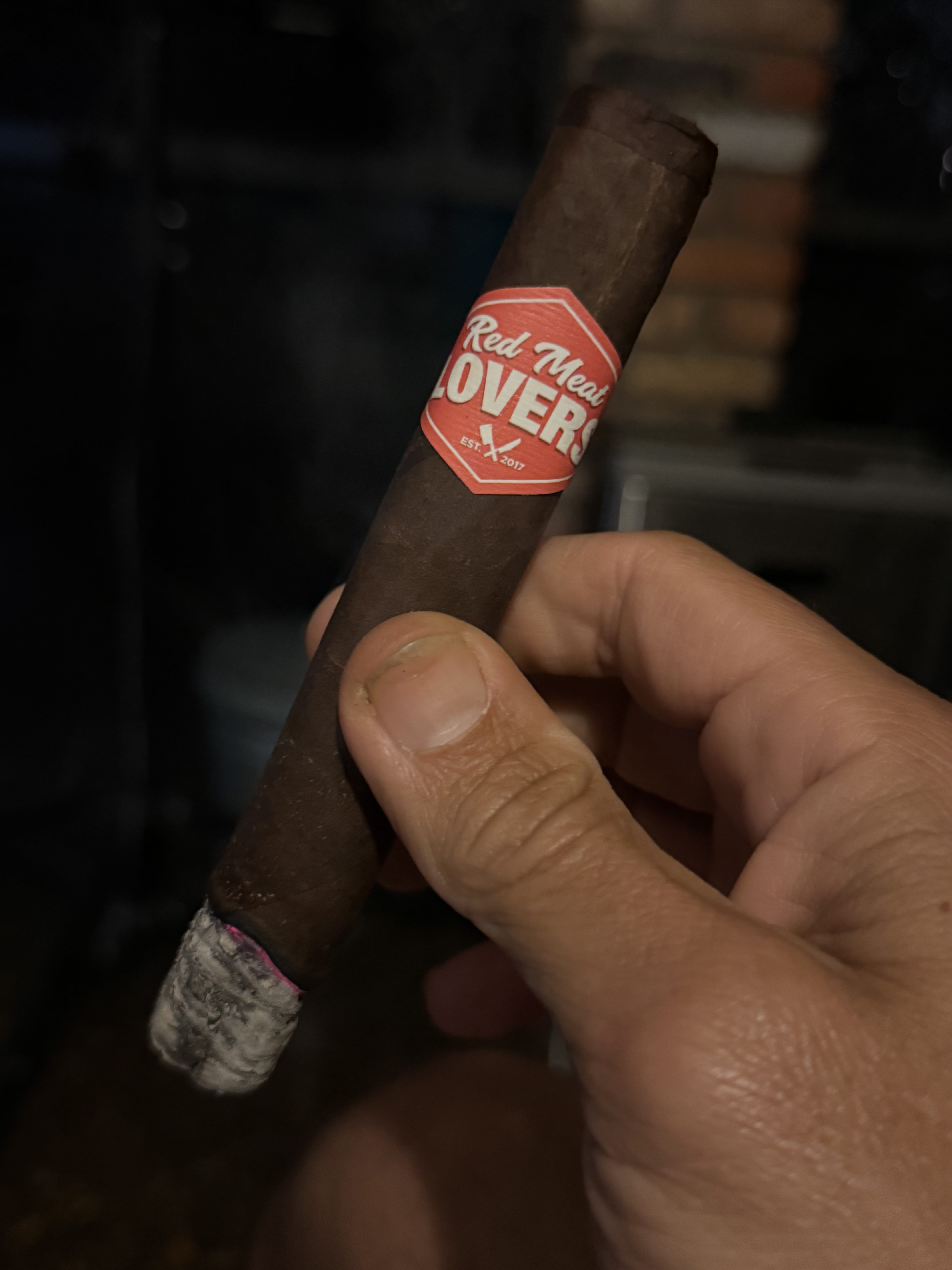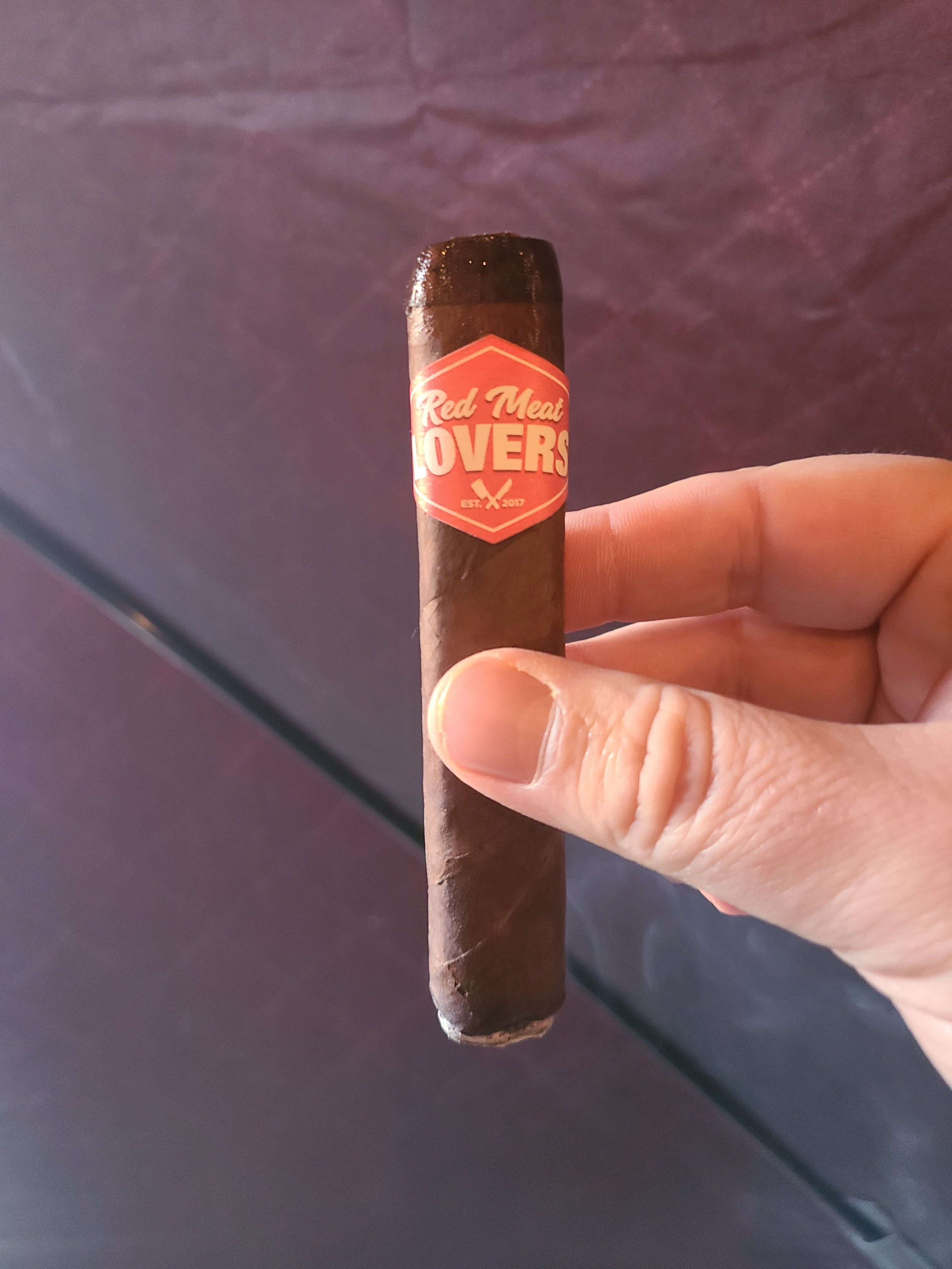 The Red Meat Lovers Club cigar was first released in 2019 as the 12th collaboration in retailer Smoke Inn's beloved Microblend Series. Where most Microblend cigars are a collaboration between Smoke Inn and a cigar manufacturer, the RMLC (as it is known) was a three-part mashup, including Smoke Inn, Dunbarton, and the Red Meat Lovers Club of South Florida, which is a meat-themed organization that aims to bond its group members over their common desires to “eat beef, drink, smoke, and laugh.” After several annual launches of the cigar—which was blended as the perfect steak pairing—Dunbarton and the RMLC took the cigar national in 2023, offering a suite of four sizes on a regular basis. The blend features a Connecticut Broadleaf No. 1 dark wrapper, a Mexican San Andrés negro oscuro binder, and fillers from Nicaragua (Estelíano La Joya C98 seco, Ometepe viso, and Jalapa Cofradia ligero) and the US (Pennsylvanian Seedleaf ligero).
