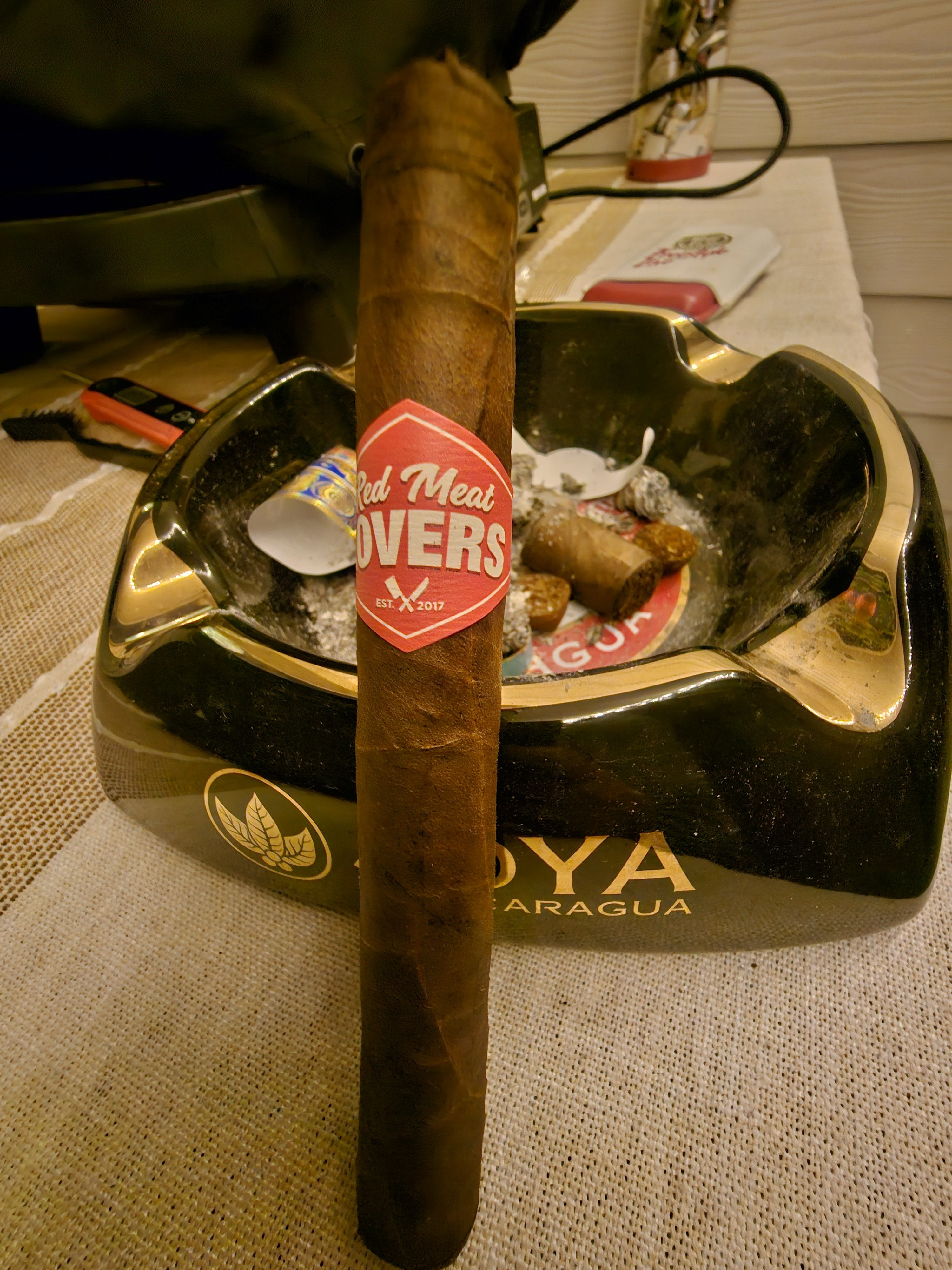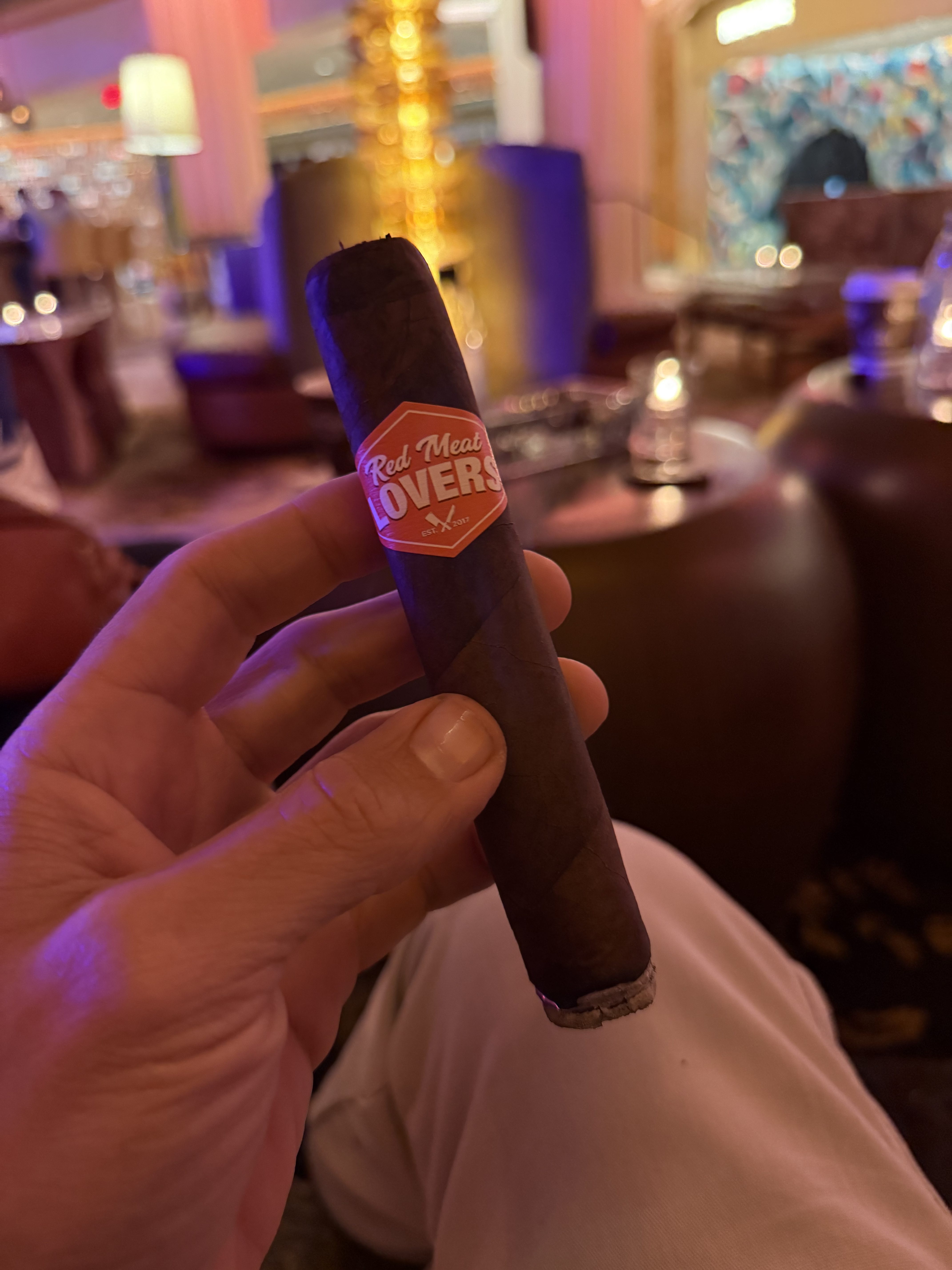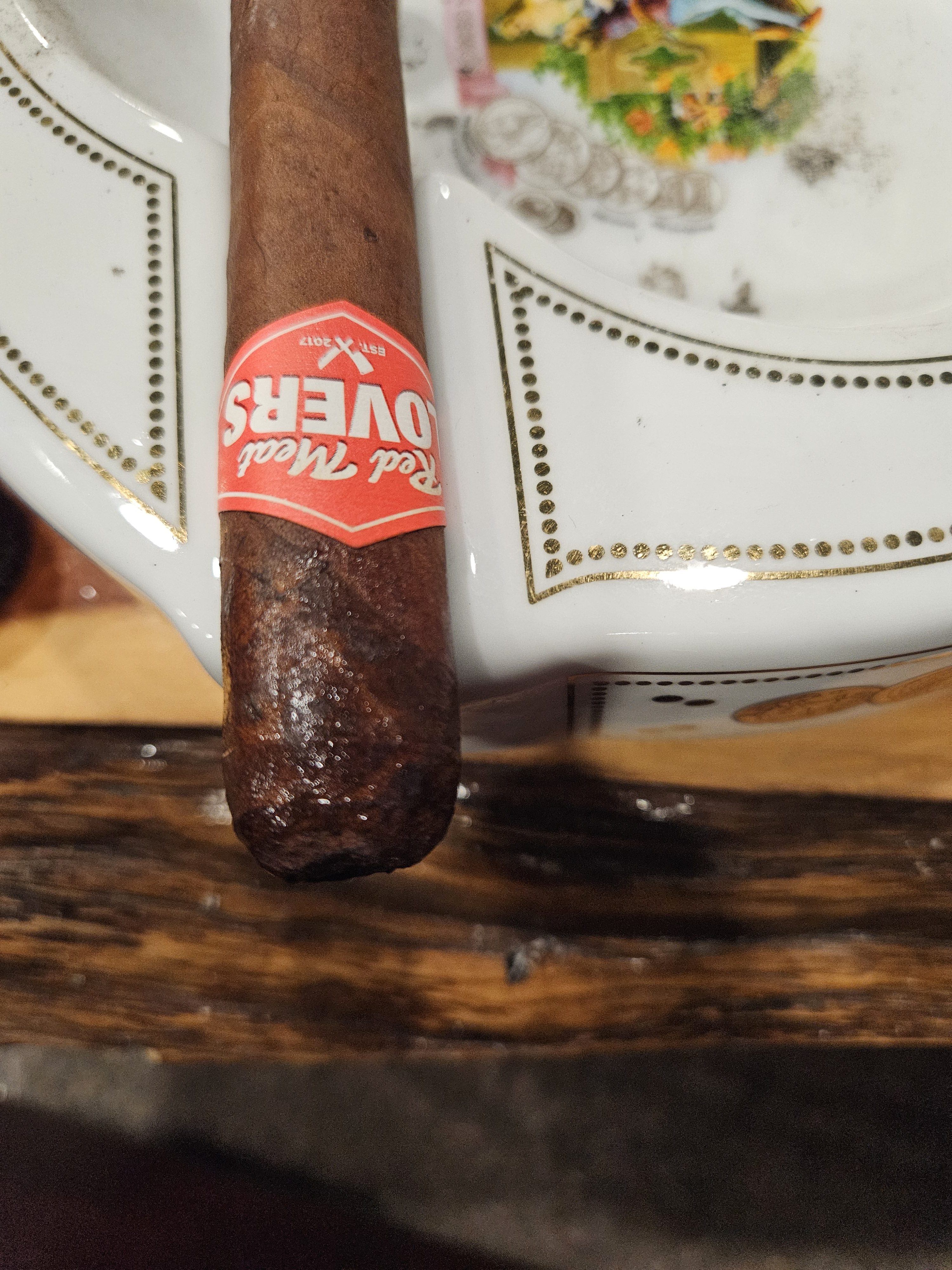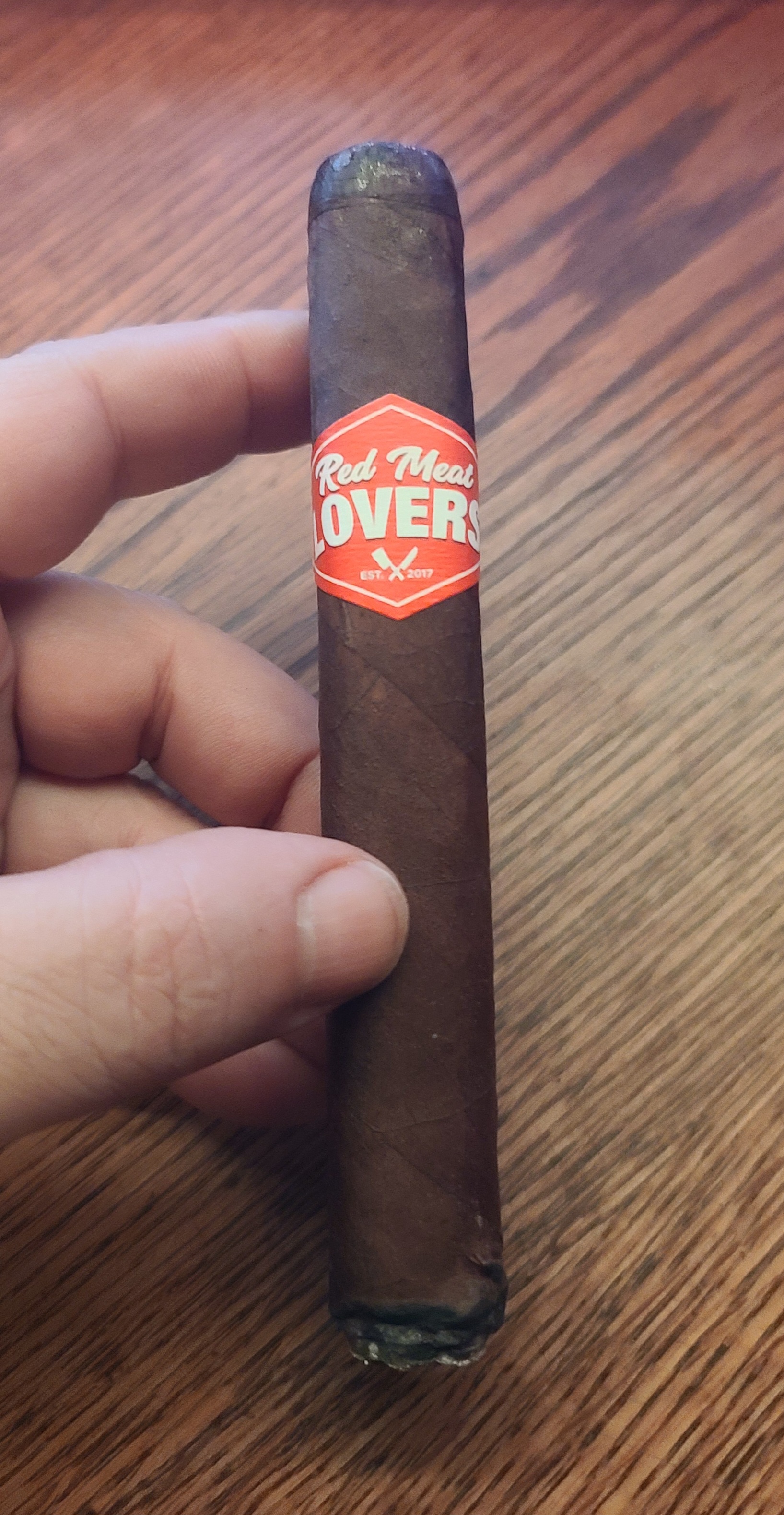The Red Meat Lovers Club cigar was first released in 2019 as the 12th collaboration in retailer Smoke Inn's beloved Microblend Series. Where most Microblend cigars are a collaboration between Smoke Inn and a cigar manufacturer, the RMLC (as it is known) was a three-part mashup, including Smoke Inn, Dunbarton, and the Red Meat Lovers Club of South Florida, which is a meat-themed organization that aims to bond its group members over their common desires to “eat beef, drink, smoke, and laugh.” After several annual launches of the cigar—which was blended as the perfect steak pairing—Dunbarton and the RMLC took the cigar national in 2023, offering a suite of four sizes on a regular basis. The blend features a Connecticut Broadleaf No. 1 dark wrapper, a Mexican San Andrés negro oscuro binder, and fillers from Nicaragua (Estelíano La Joya C98 seco, Ometepe viso, and Jalapa Cofradia ligero) and the US (Pennsylvanian Seedleaf ligero).