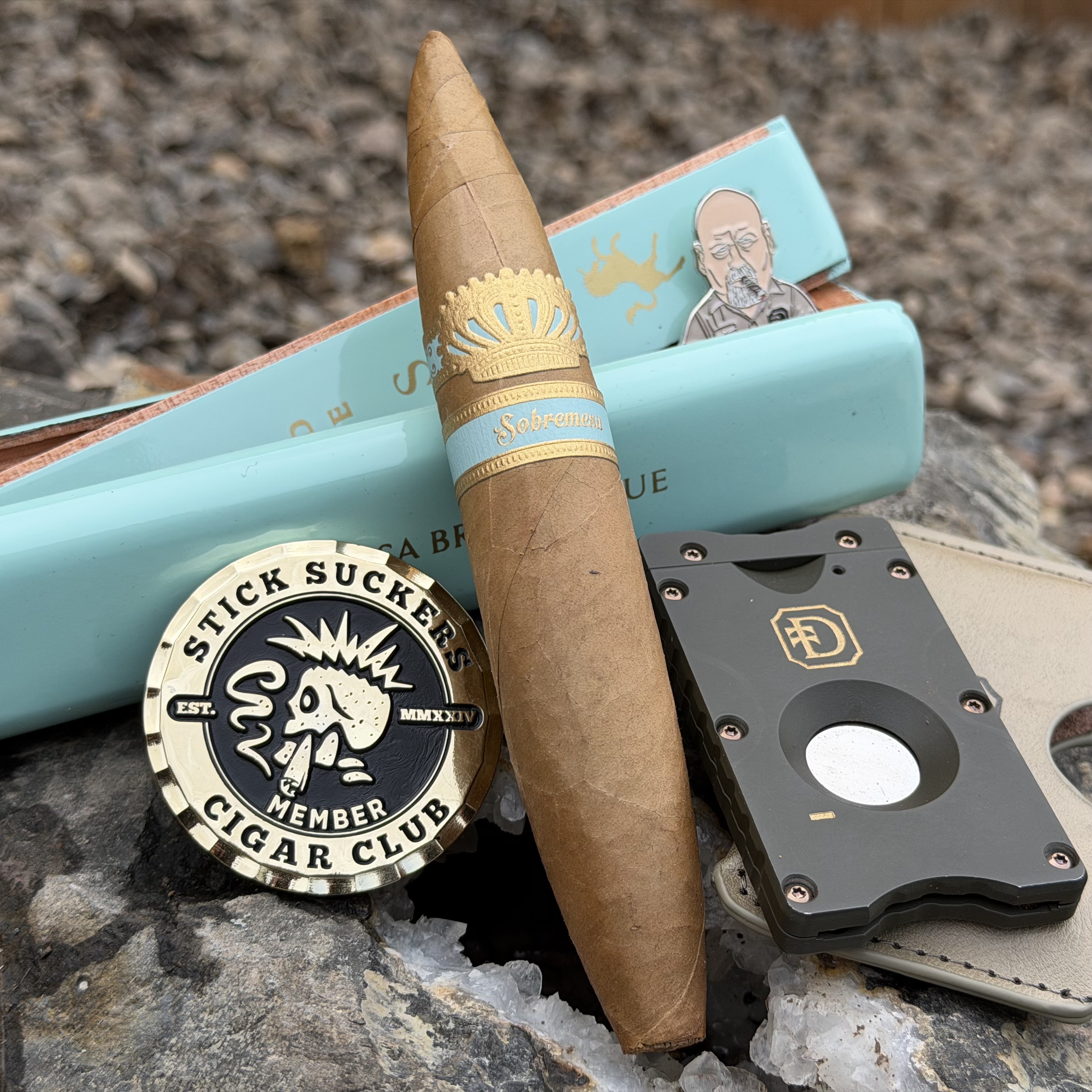 The Sobremesa Brûlée Blue Unicorn cigar pushes the limits of the Sobremesa Brûlée experience to its ultimate extreme. The cigar follows in the style of the original Muestra de Saka Unicorn, where company owner, Steve Saka, has gone to extreme lengths to offer his expression of the most lavish, super-premium cigar he can muster. This includes hand-lathing the molds used for the Unicorn's signature 6¼" x 60 diadema format, piano-finished boxes with individual matching coffins, and the finest tobaccos available for the given blend. The Sobremesa Brûlée Blue Unicorn is an extension of the Sobremesa Brûlée Blue, which is, itself, an extension of the Sobremesa Brûlée. This includes an Ecuadorian Connecticut Shade Grade A++ wrapper, a cultivo tonto San Andrés negro binder, and "extra select" Nicaraguan filler tobaccos.