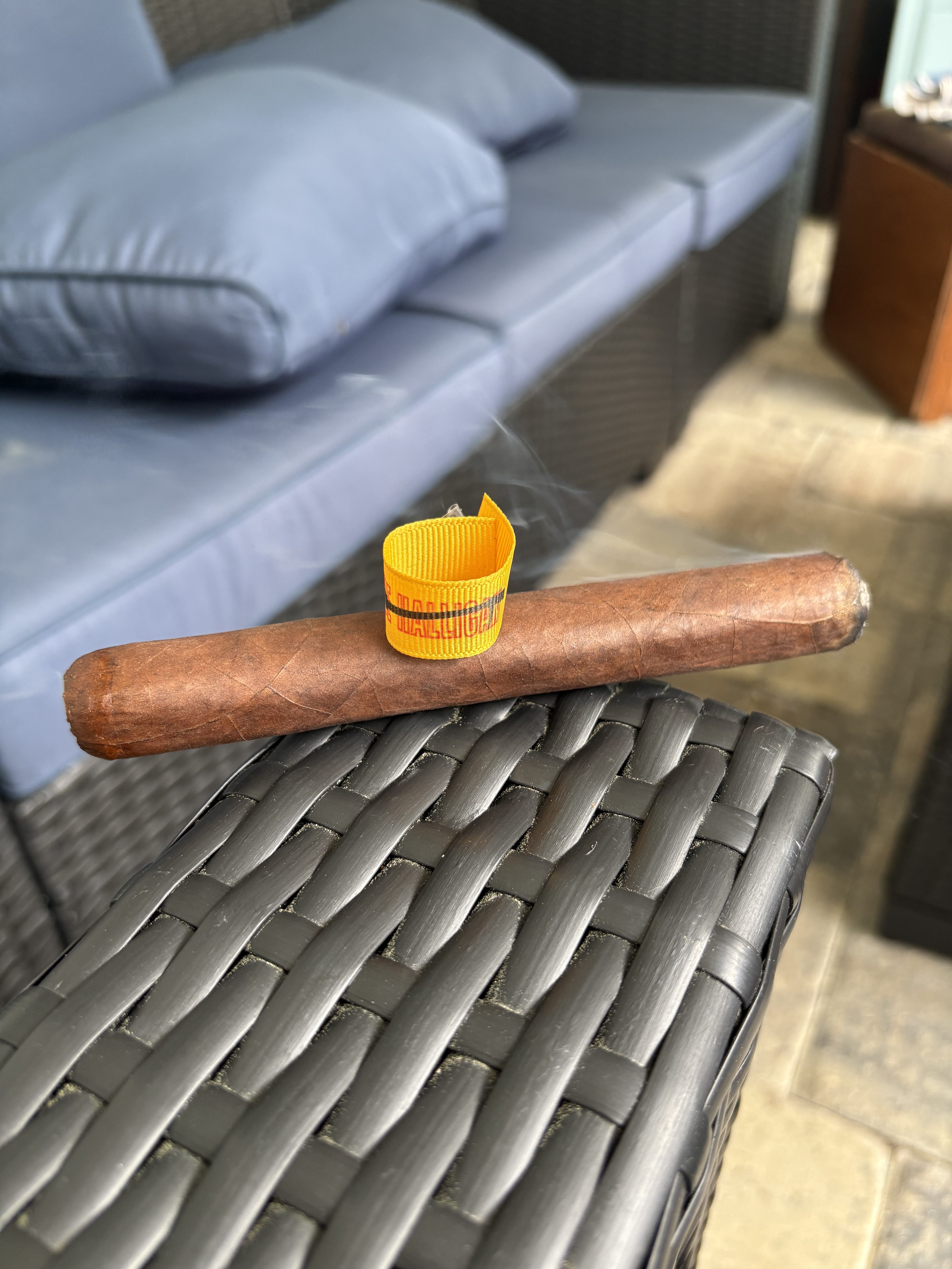 The Halligan was a limited shop-exclusive project between Dunbarton Tobacco & Trust and Manassas, VA-based retailer Tobaccology, debuting in the fall of 2023 with 300 boxes of 10 cigars. The Halligan was named after a firefighter customer of the shop, featuring a firefighter helmet as the cigar's brand imagery. Rolled in a 6¼" x 52 "Parejo Firm Prensado" format with a "Spiral Colita" head, the blend included an Ecuadorian Habano 2000 wrapper, a San Andrés negro “cultivo tonto” binder, and fillers from Nicaragua (Jalapa seco and Jalapa viso grande) and Pennsylvania (Lancaster #41 seedleaf ligero).