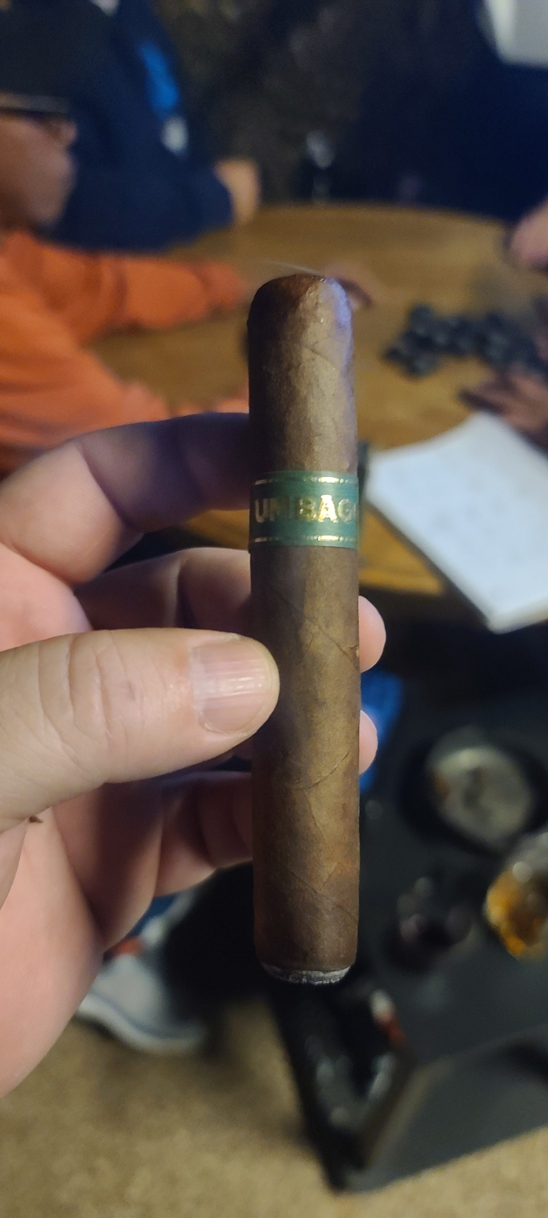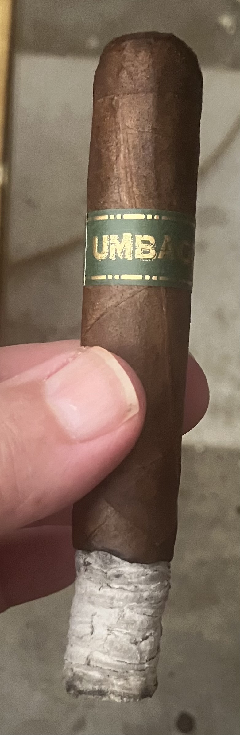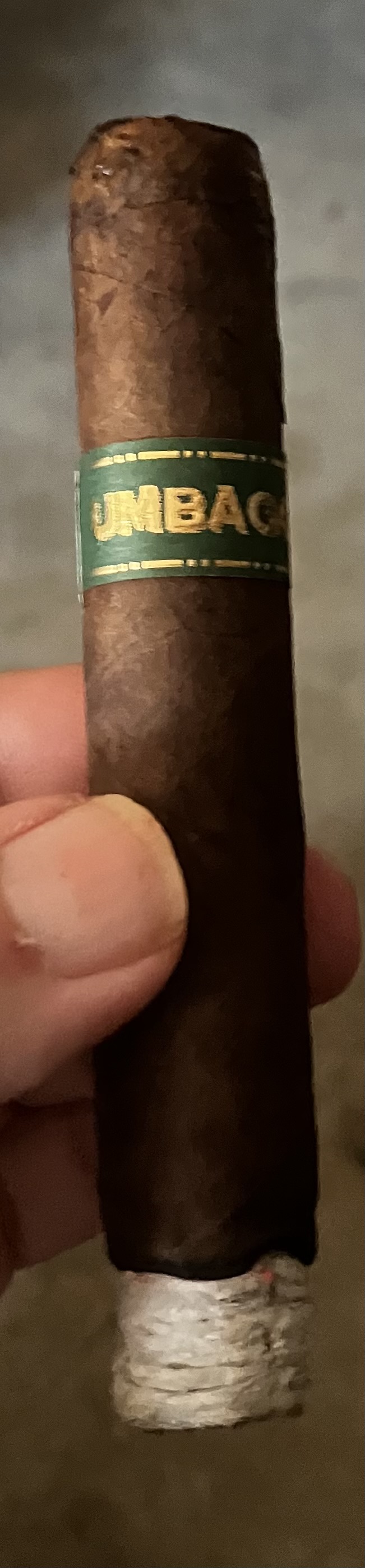 The Umbagog Bronzeback cigar from Dunbarton Tobacco & Trust offers a subtle tweak on the 2017 original Umbagog line, said to be an homage to the Henry Clay cigars from the 1980s and 1990s. The original Umbagog is a derivative of the company's Mi Querida line, using lower-grade wrappers that didn't make the sorting cut. With Umbagog Bronzeback, the Connecticut Broadleaf wrapper uses a 2LS leaf priming, described as being "situated between the 1/3 to 1/2 mark on the stalk." This differs from the Medium/#1 Dark Connecticut Broadleaf of the original Umbagog, offering "a slightly less sweet, but significantly more peppery smoking experience." The cigar debuted in 2024 with a single Rothschild format, making use of a similar all-Nicaraguan binder/filler compared to the original.