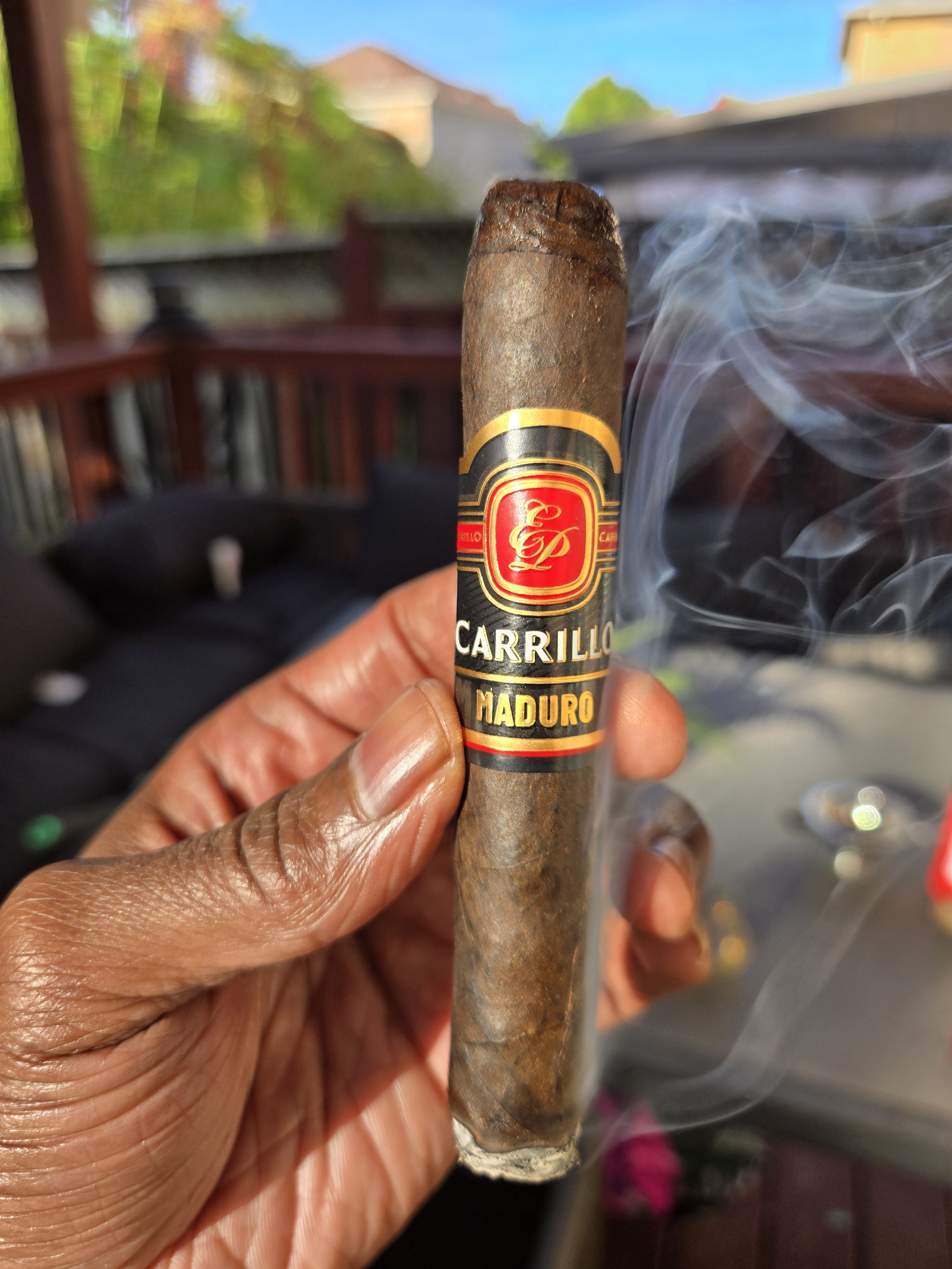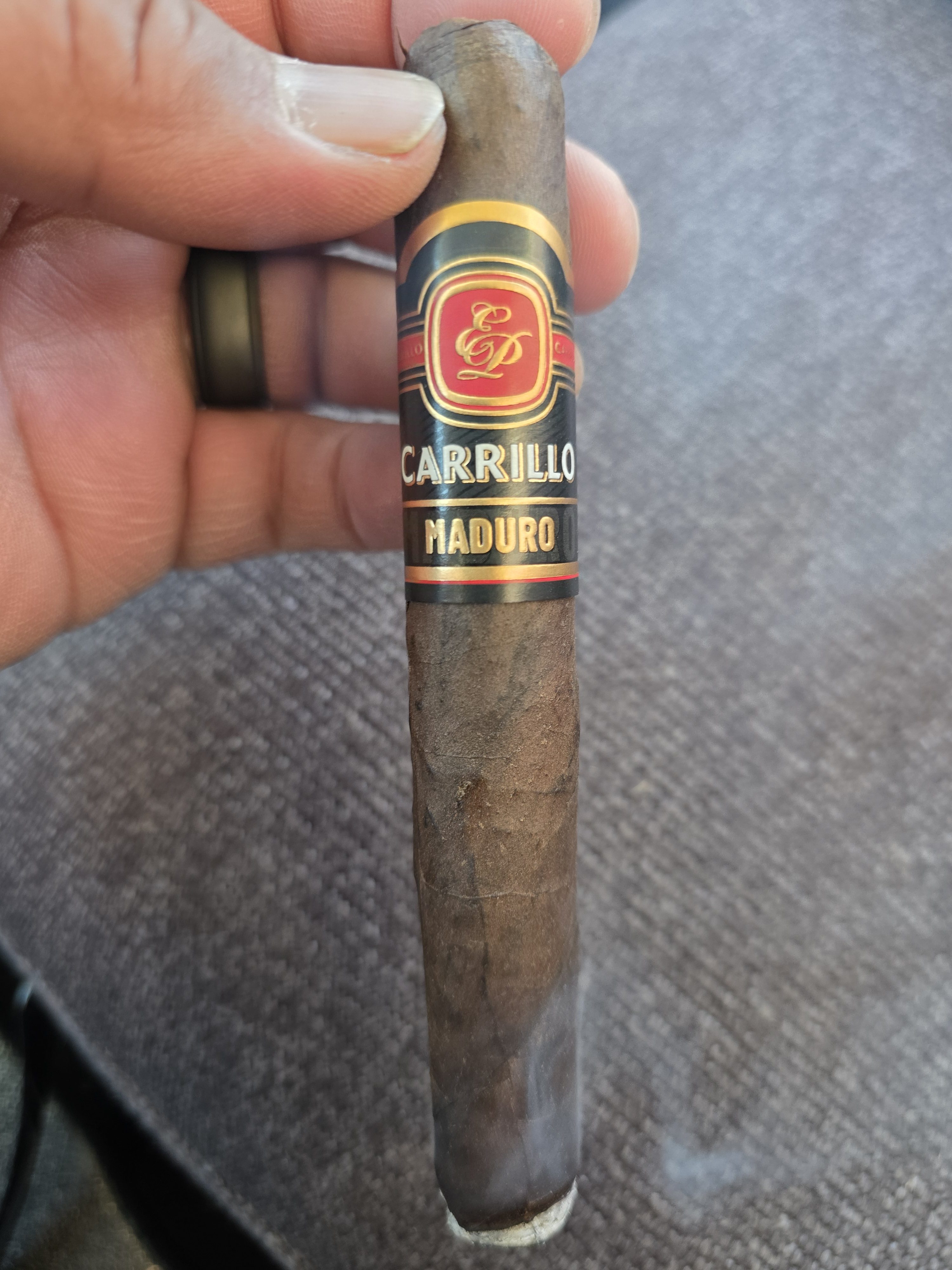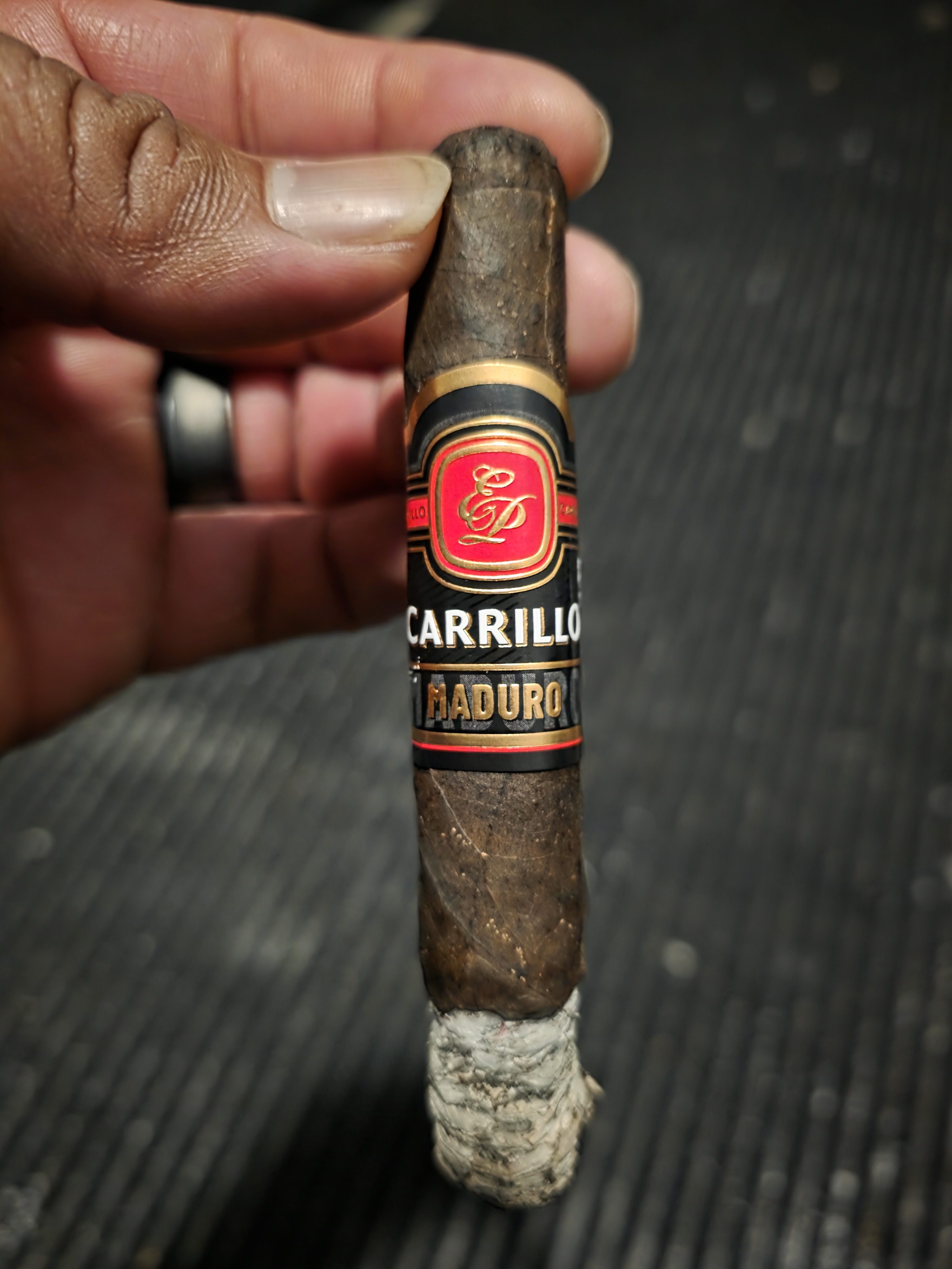 The E.P. Carrillo Maduro cigar is part of the company's modern Essence Series, which is a planned collection of six blends, each highlighting unique wrapper varietals. For the Maduro, the cigar begins with a dark Mexican San Andrés maduro wrapper, being secured over a Honduran binder and all-Nicaraguan filler. The blend was described as being a unique offering from Ernesto Perez-Carrillo, and includes tobaccos (such as the Honduran component) not often used by EPC.