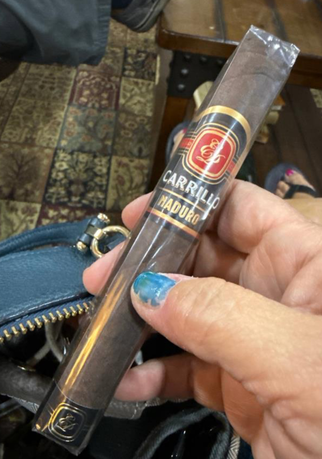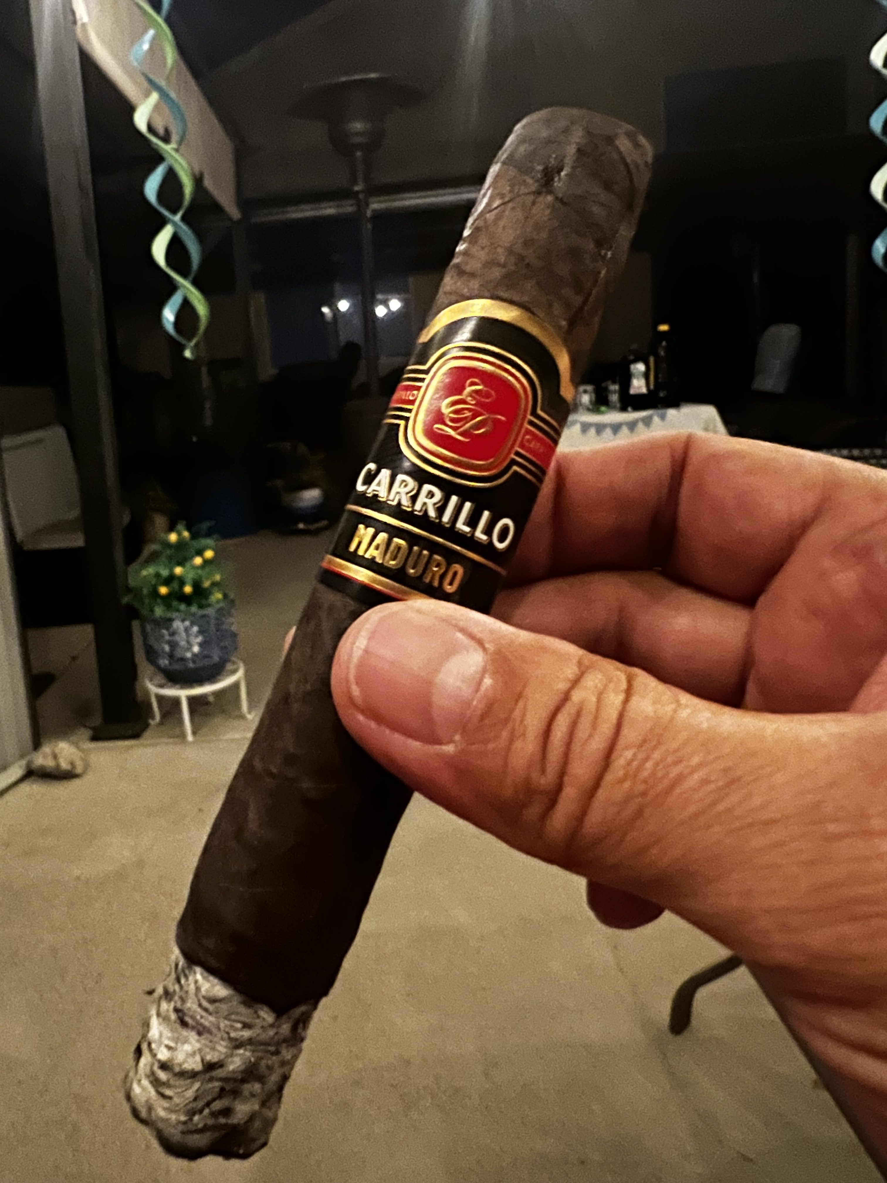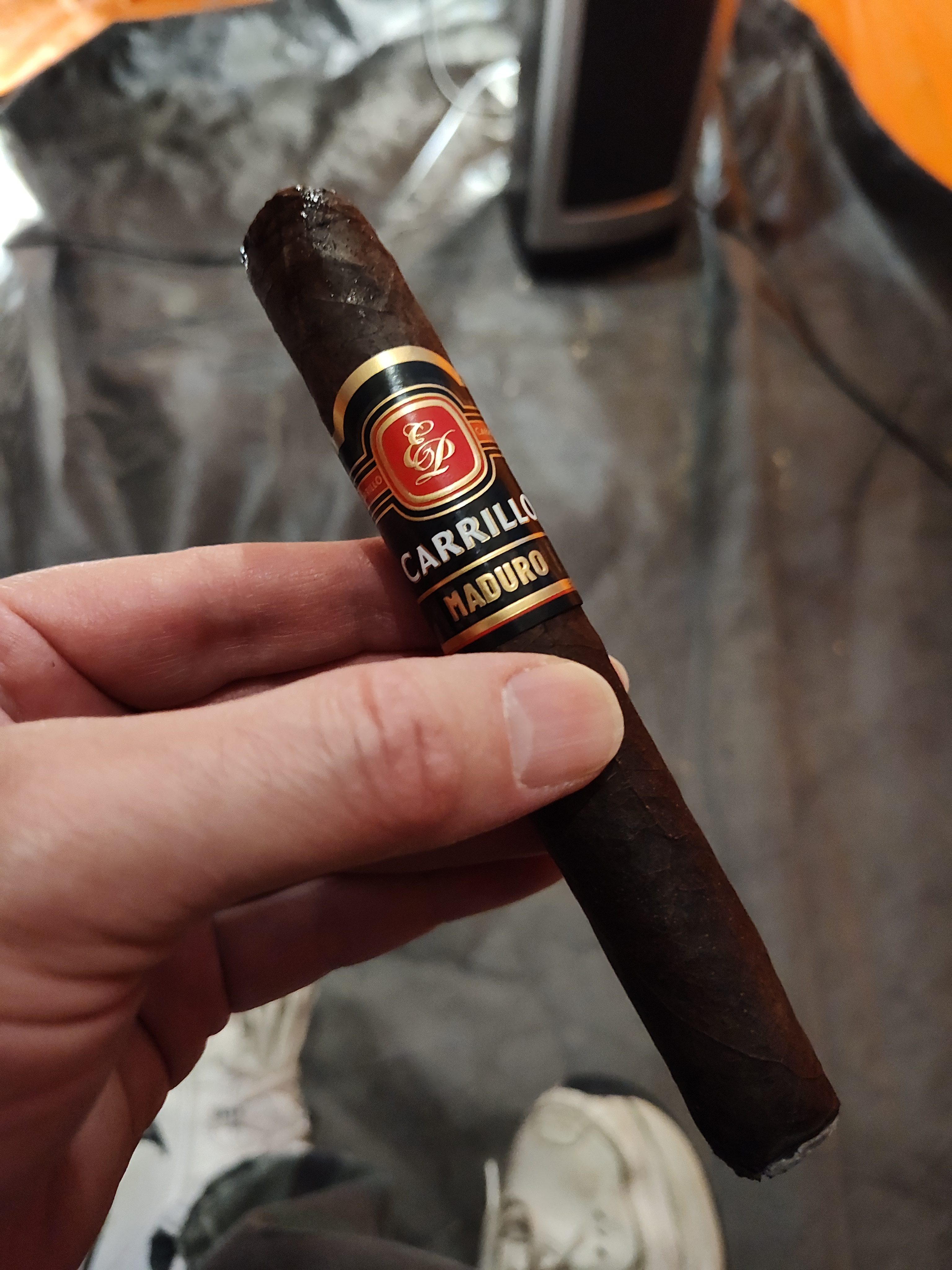 The E.P. Carrillo Maduro cigar is part of the company's modern Essence Series, which is a planned collection of six blends, each highlighting unique wrapper varietals. For the Maduro, the cigar begins with a dark Mexican San Andrés maduro wrapper, being secured over a Honduran binder and all-Nicaraguan filler. The blend was described as being a unique offering from Ernesto Perez-Carrillo, and includes tobaccos (such as the Honduran component) not often used by EPC.