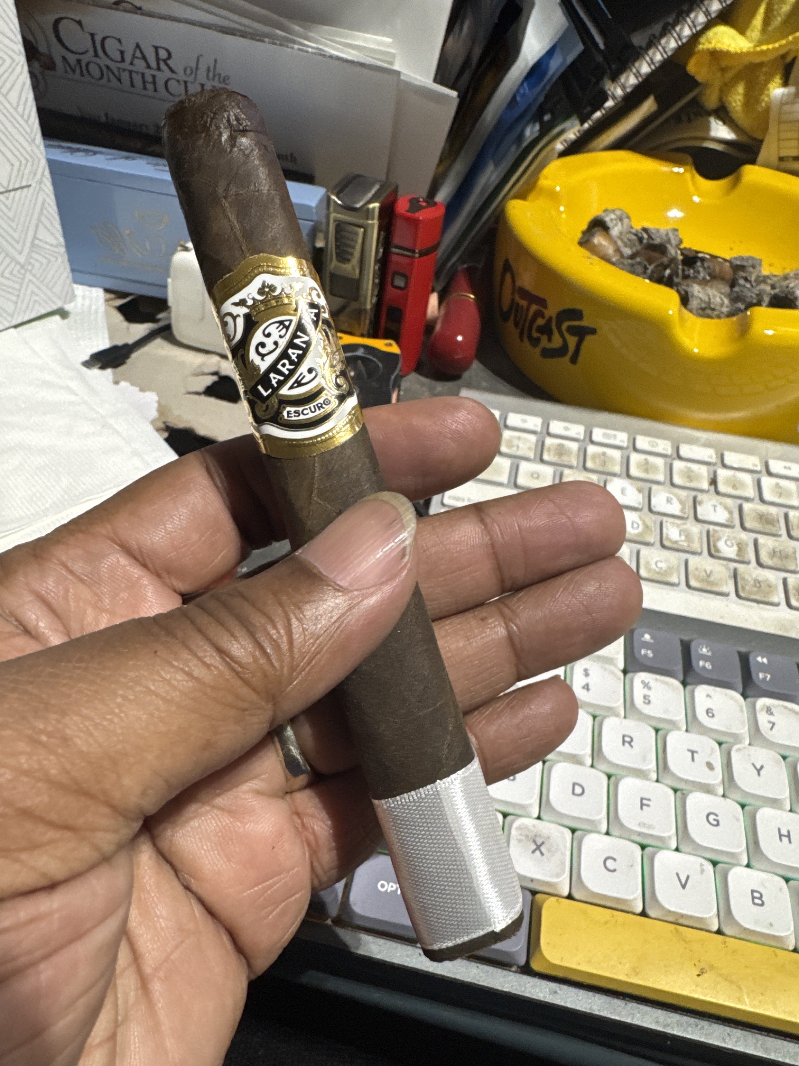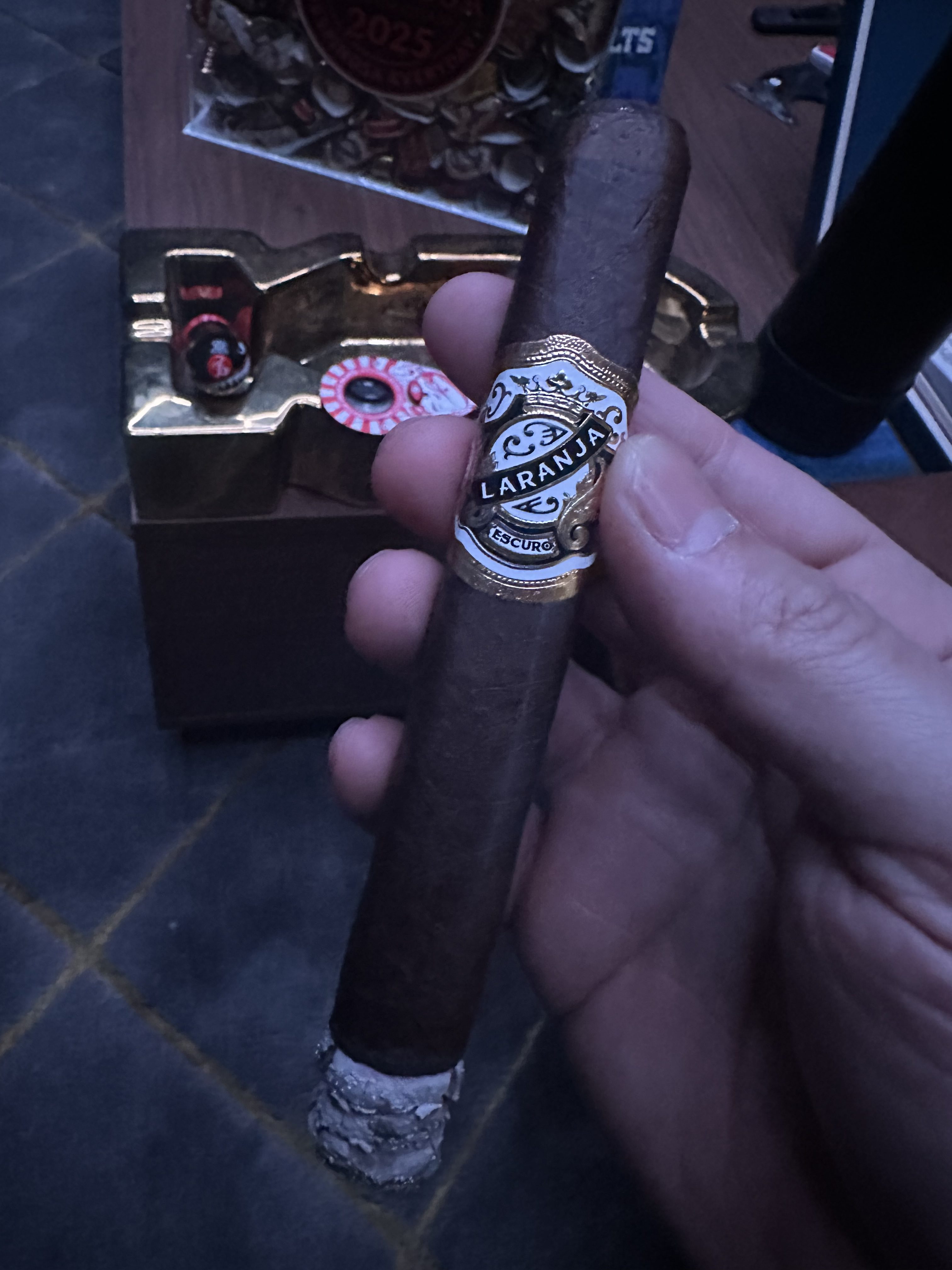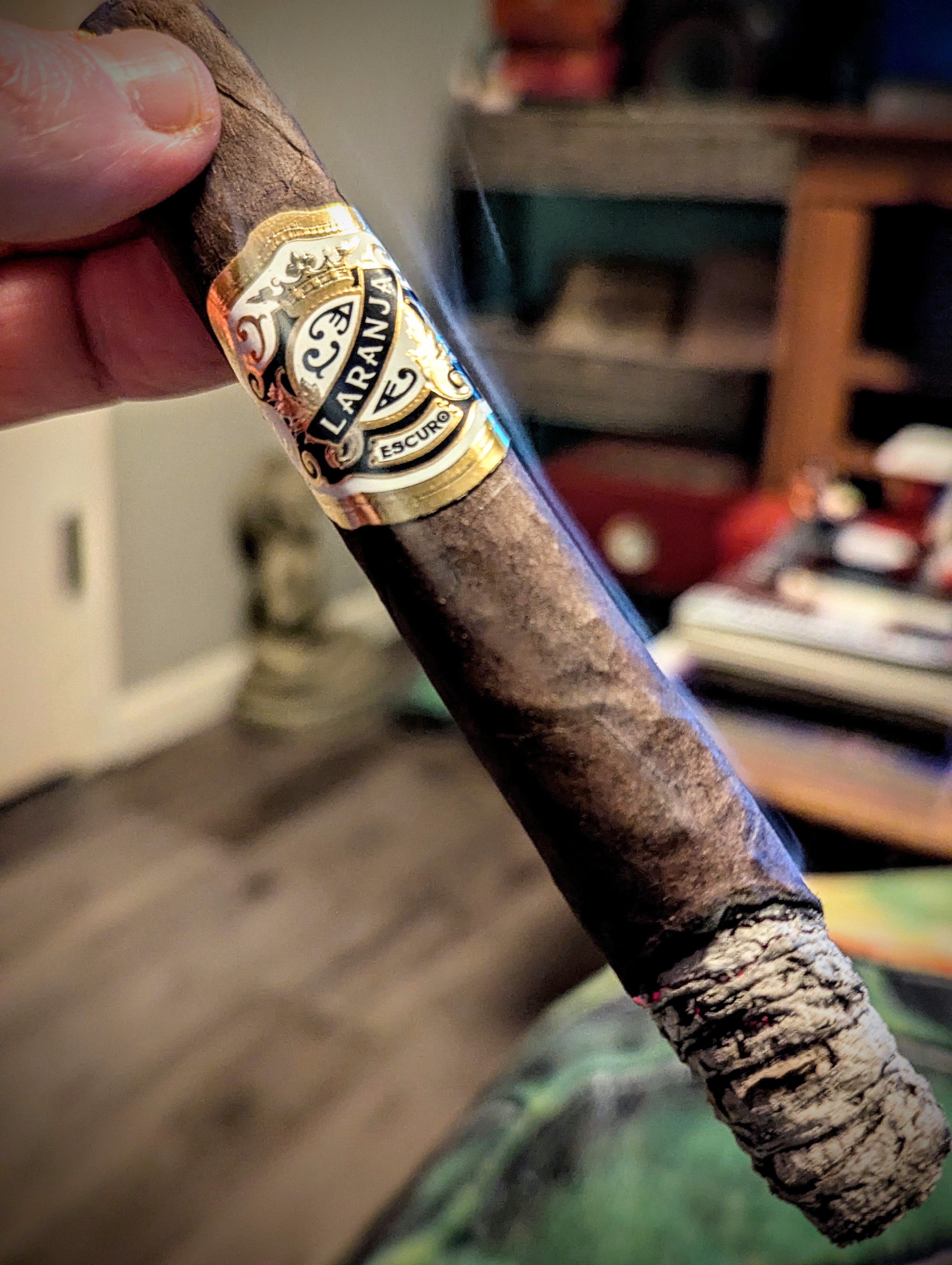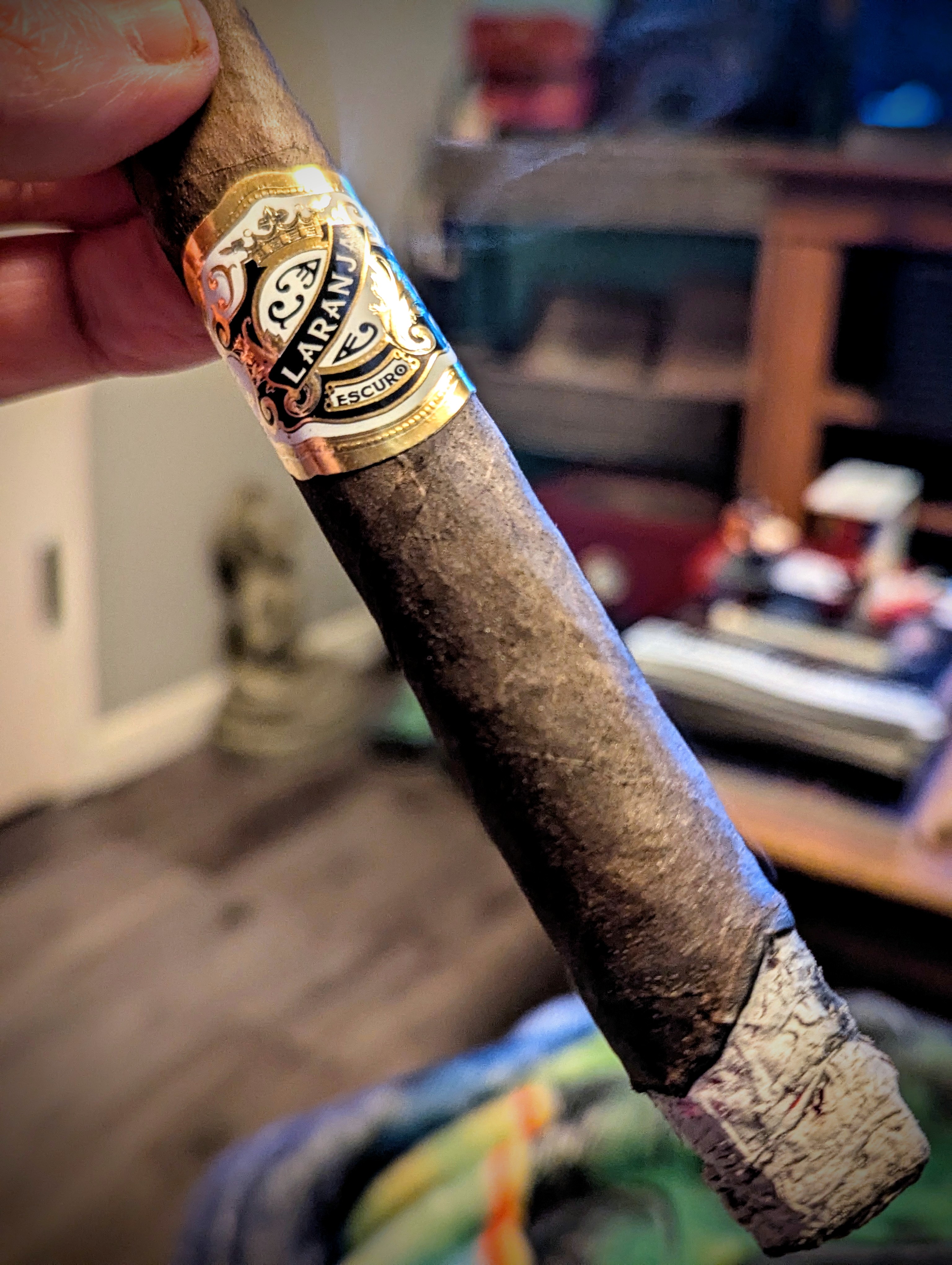 End of a long day of work just listening to the dogs and chickens with a Laranja Escuro and a glass of Hibiki whiskey. Got to savor both but the Hibiki is no longer in production.