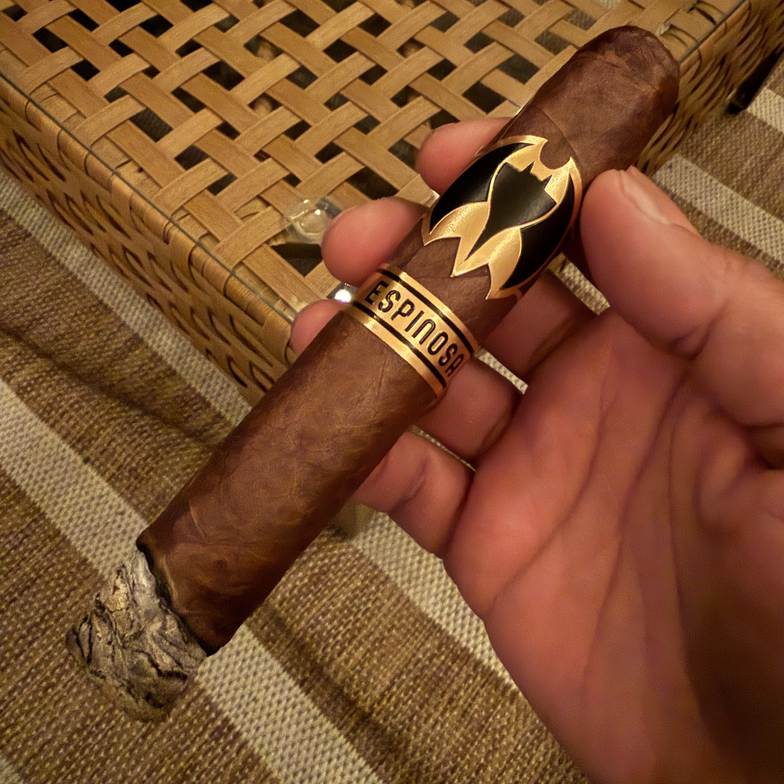 Translating to Golden Bat, the Murcielago de Oro TAA 2023 Exclusive by Espinosa offers a new take on the company's popular Murcielago cigar. As with the original, the cigar makes use of a Mexican San Andrés wrapper over all-Nicaraguan binder/fillers, but the maduro wrapper of the original has been swapped for a lighter claro variant. This makes for a more nuanced and slightly fuller-bodied expression of the Murcielago blend. The cigars first debuted in 2023 as a TAA-exclusive release.