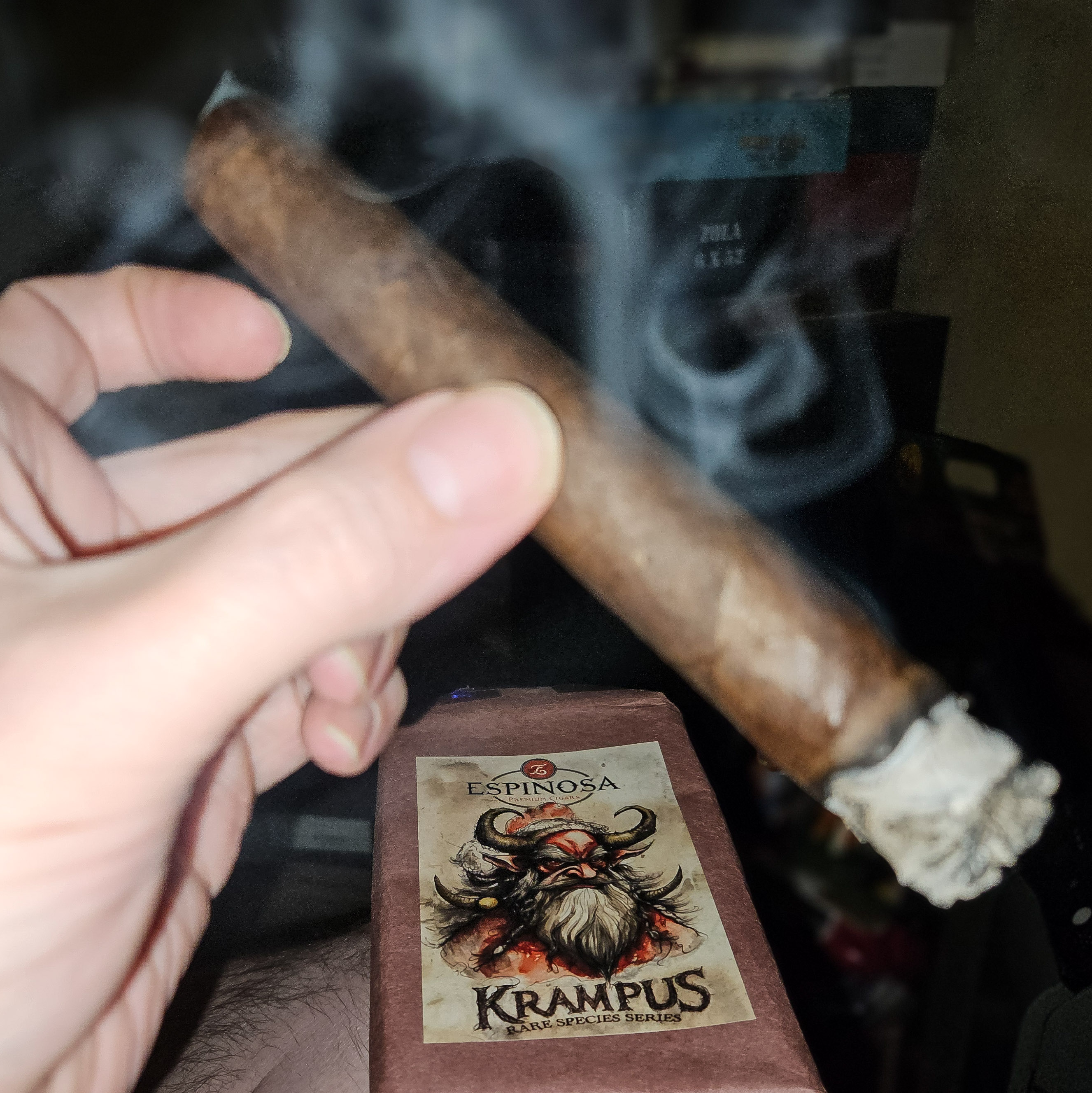 Wrapped in a maduro leaf as dark as the horned beast's soul, Espinosa debuted the Krampus cigar in 2023 as the latest release in their ongoing Rare Species series. Krampus comes from Central and Eastern Alpine folklore, being something of the Bizarro Santa. In this version of the lore, instead of Santa handing out coal to the naughty, Krampus takes the lead, doling out punishment in the form of birch rods. As for the cigar, it was rolled in a box-pressed 6" x 54 toro, using a Nicaraguan core and a maduro wrapper.