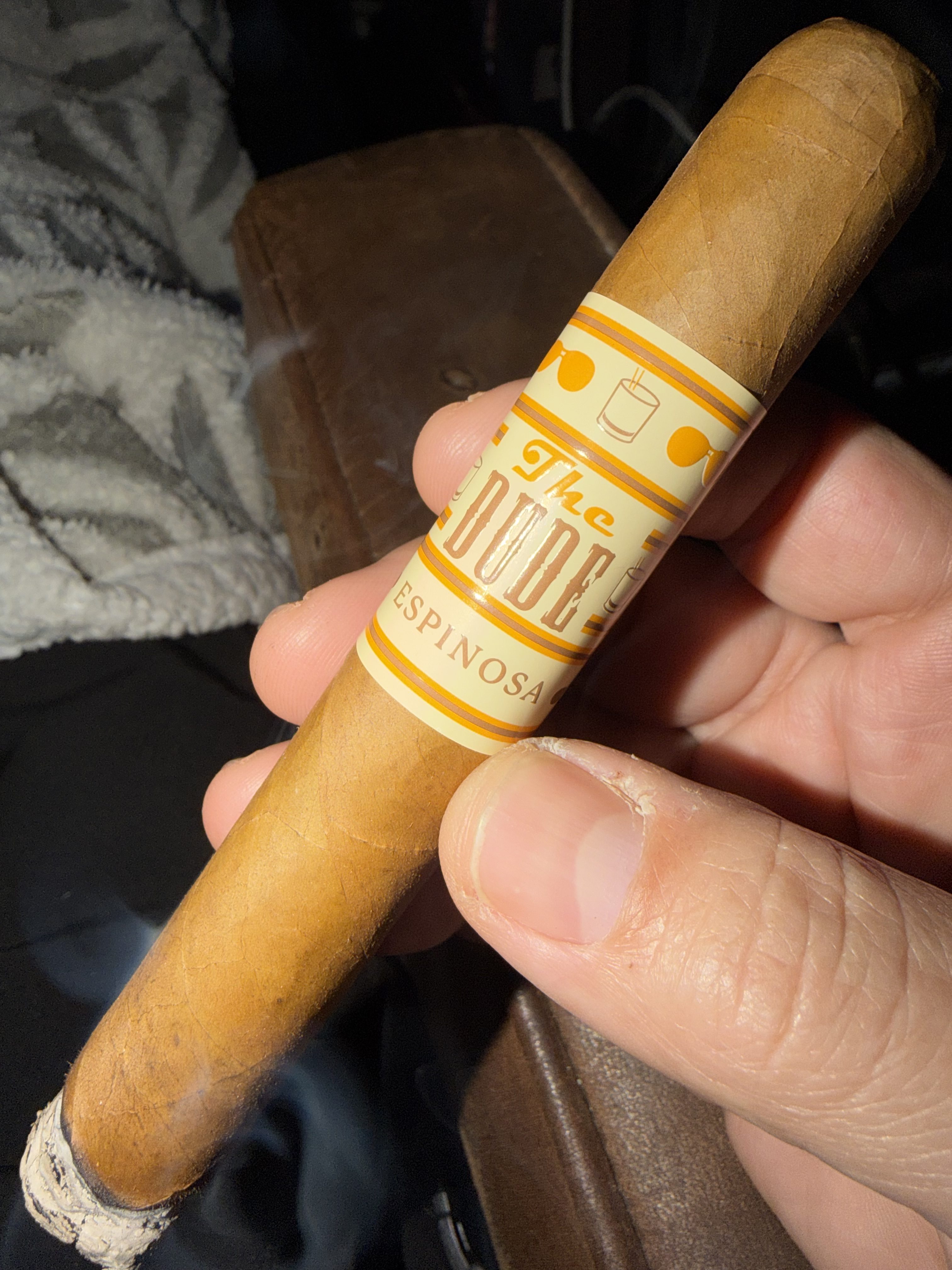The Dude is a mellow to medium-bodied cigar from Espinosa Premium Cigars, being made as an exclusive for retailer Cigars International. The cigar features a Connecticut-shade wrapper, a Nicaraguan Corojo binder, and long-fillers from the Estelí and Jalapa regions of Nicaragua. The blend is described as having a natural sweetness, light creaminess, baking spices, pepper, and earthy tones, making it an excellent morning cigar.