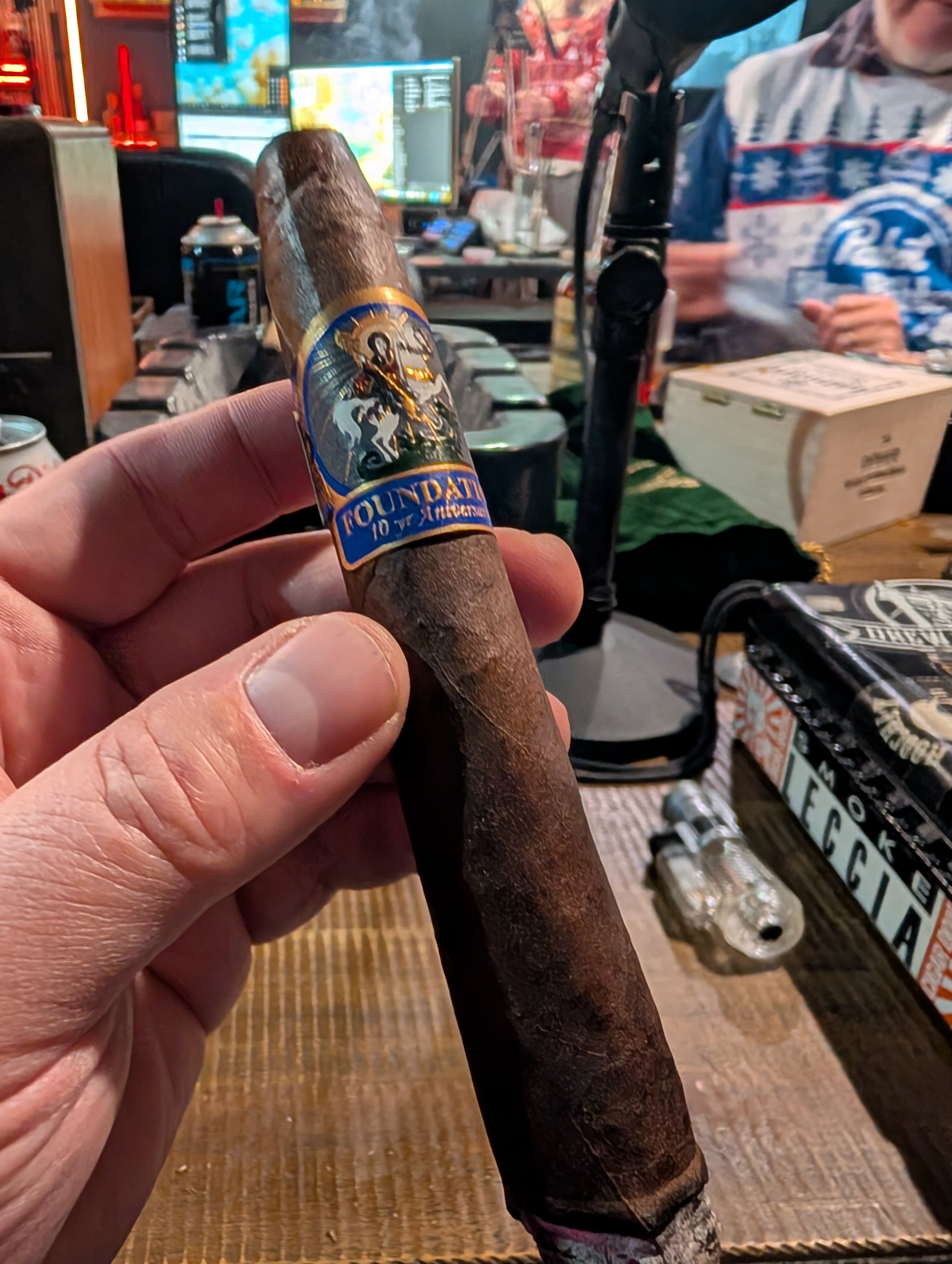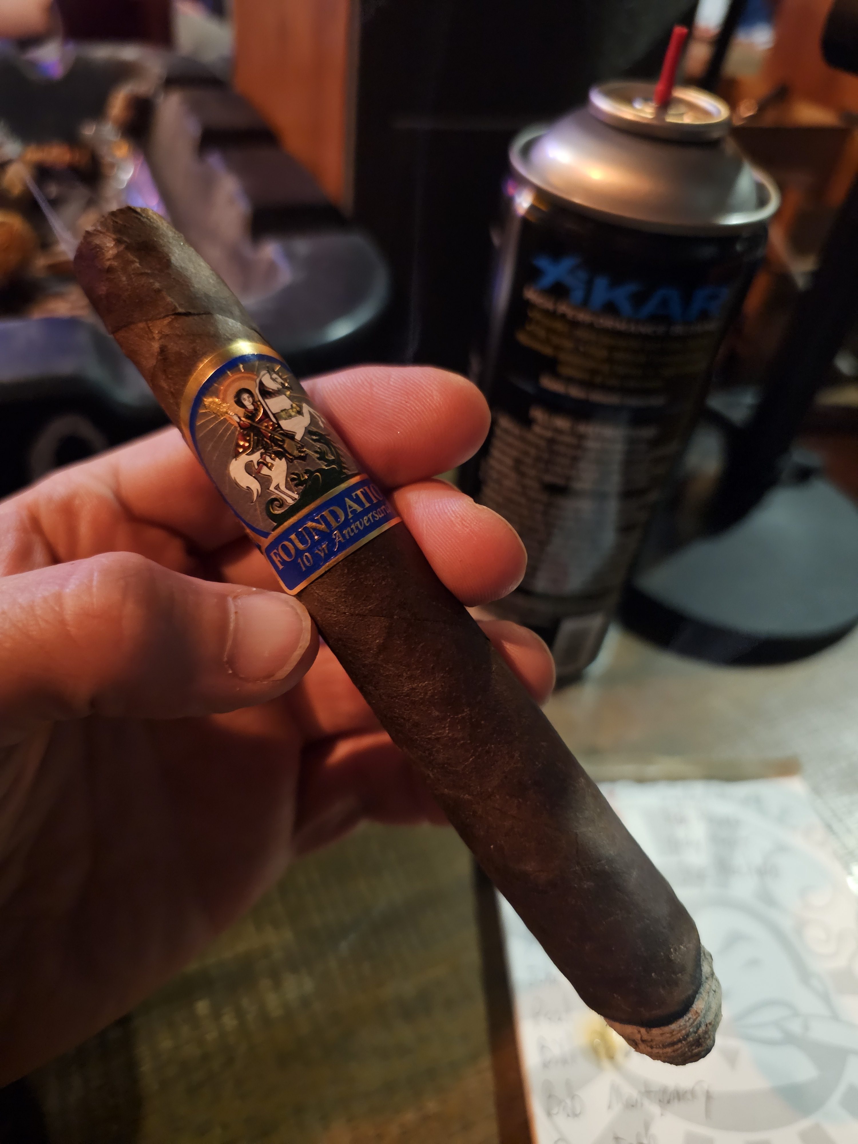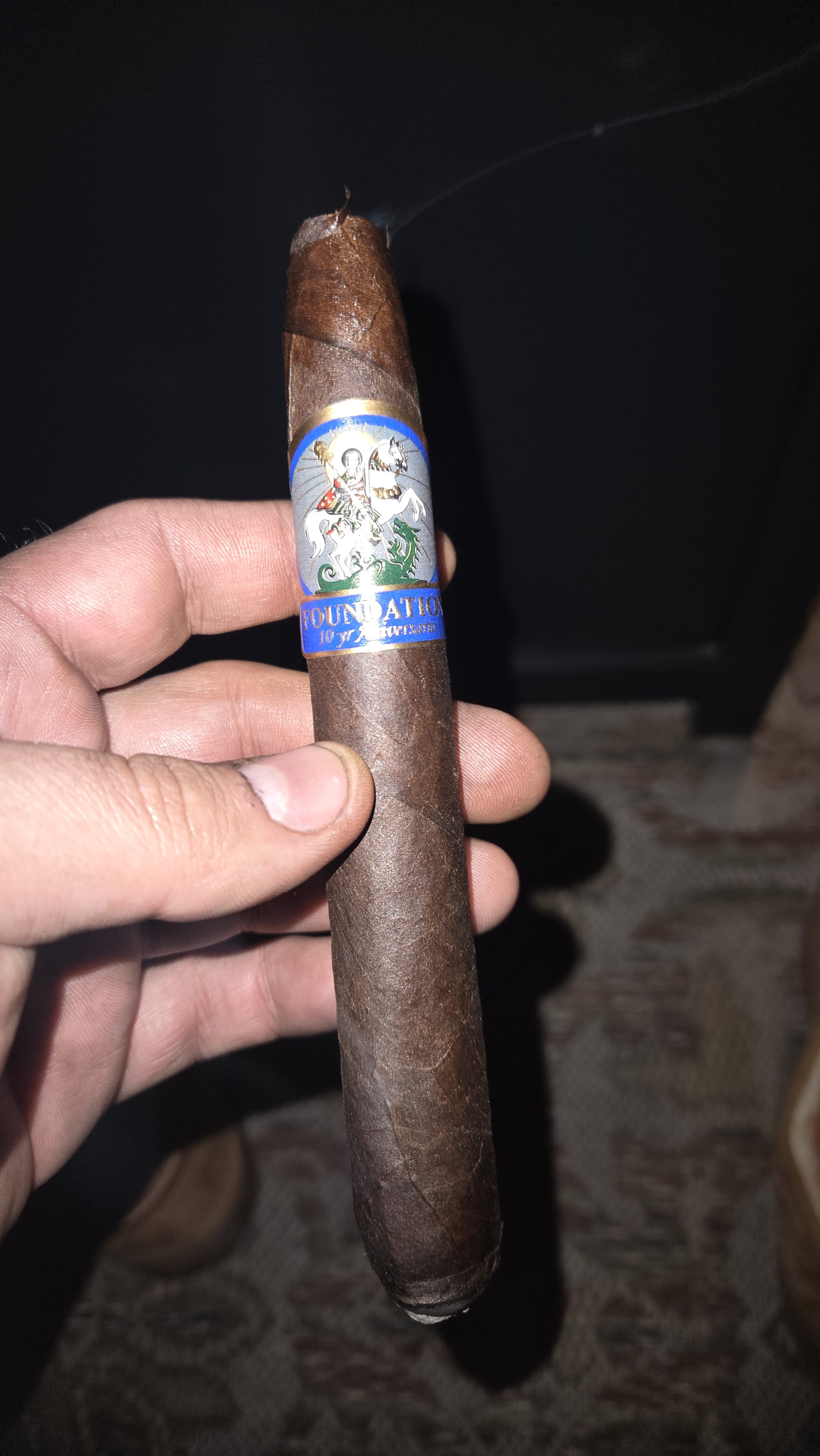 Nicholas Melillo and his Foundation Cigar Company introduced the Foundation 10 Year Aniversario in 2025, celebrating the 10th anniversary of the company. The cigars were rolled in a single 7" x 58 salomon format, featuring a Connecticut Broadleaf Habano hybrid wrapper, a Brazilian Mata Fina binder, and Nicaraguan fillers from the Condega, Estelí, and Jalapa regions of the country. The project featured imagery of St. George slaying a dragon, and were limited to 2,000 boxes of 10 and 750 humidors of 20 cigars.