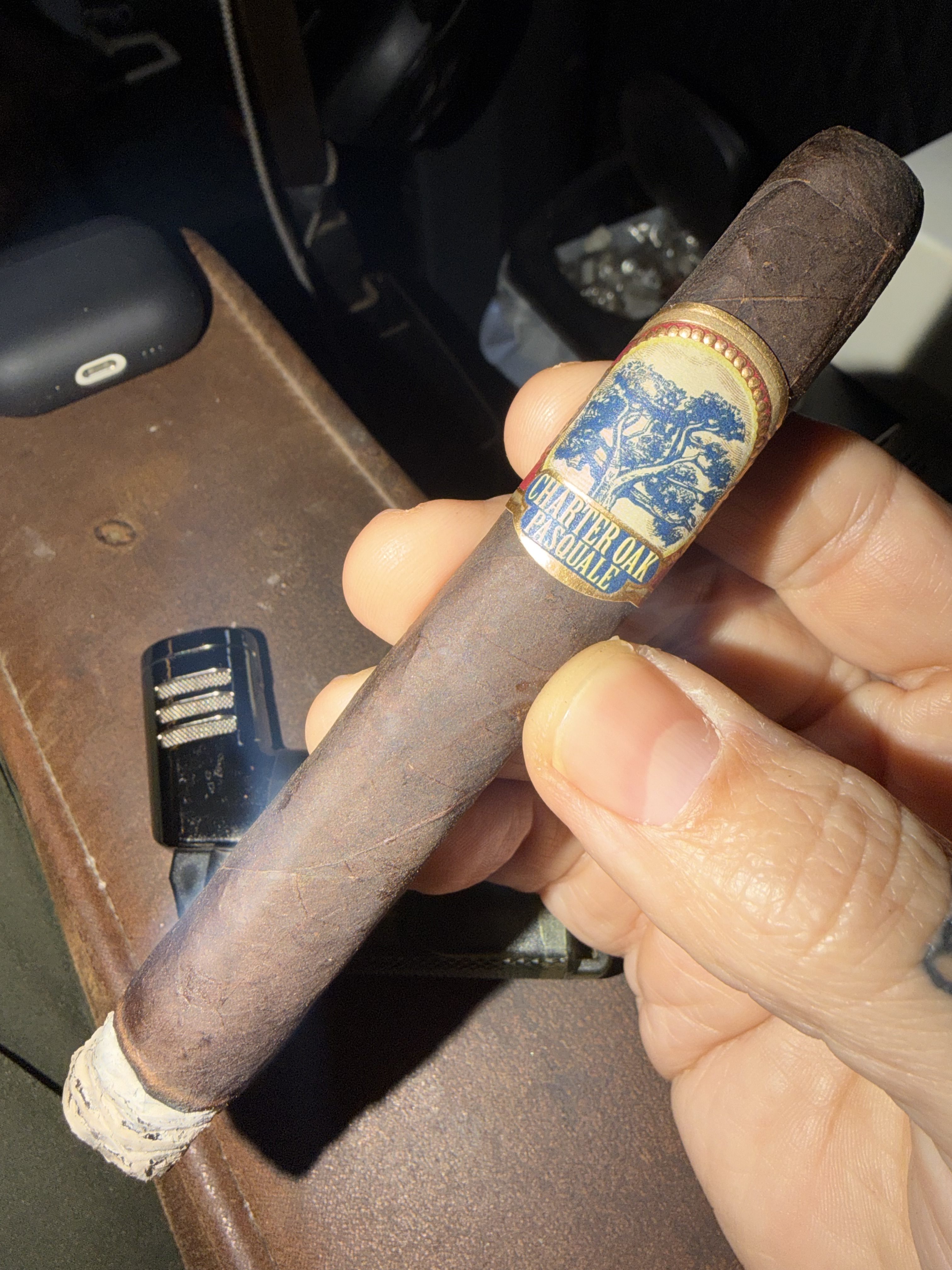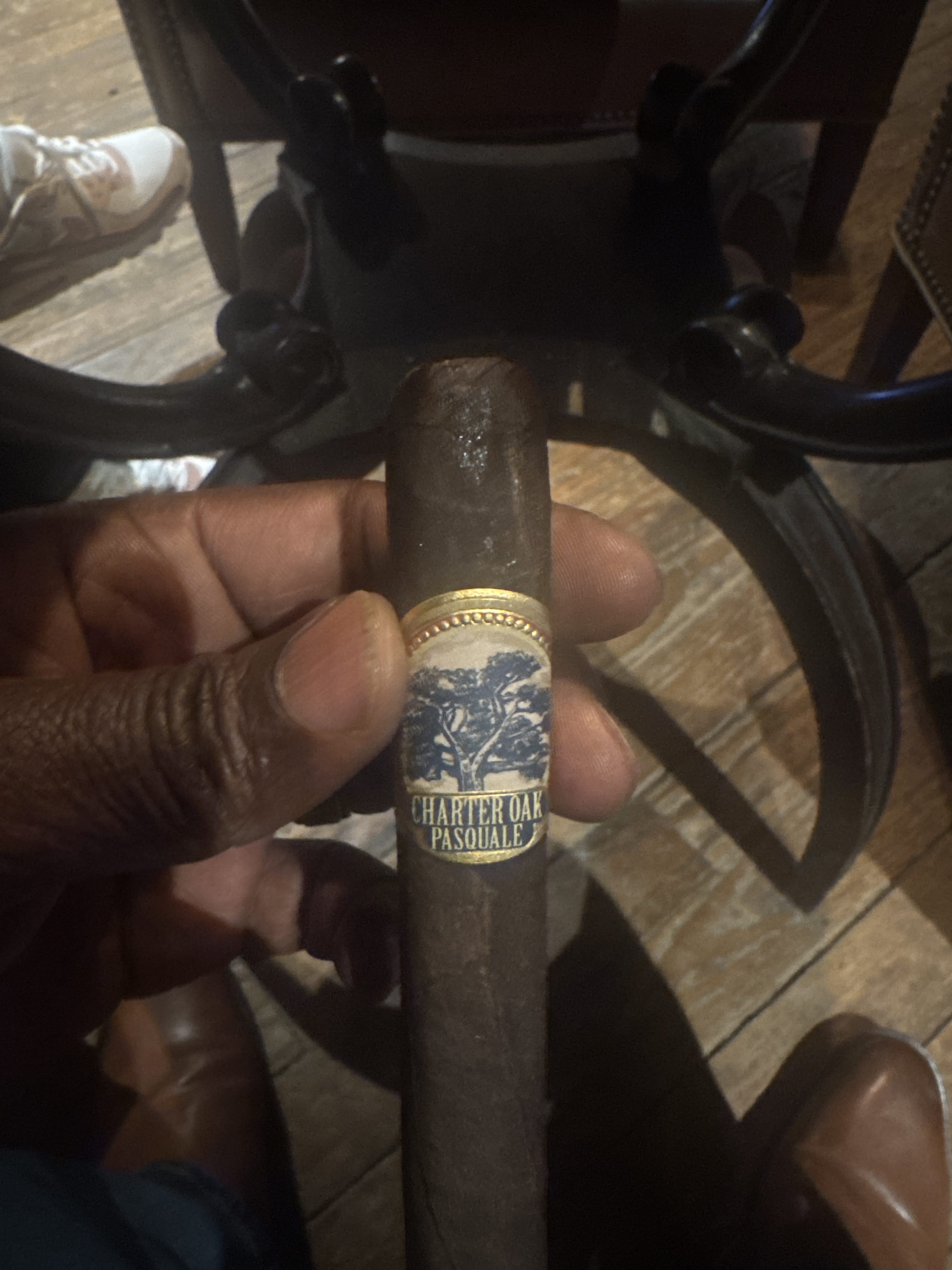 The Charter Oak Pasquale cigar is one of two blends (joining the Charter Oak Pegnataro cigar) introduced in 2023 by Foundation Cigar Co., with founder/owner Nick Melillo paying homage to the smoking styles of his two grandfathers: Pegnataro and Pasquale. Where the standard Charter Oak cigars are described as suiting his grandfathers' everyday tastes, the more limited Pegnataro and Pasquale cigars would be their upgraded weekend selections. Each cigar is named after one of Melillo's grandfathers and his preferred wrapper style. As such, the Pasquale cigar boasts a Connecticut Broadleaf wrapper, being used over all-Nicaraguan binder/filler. Both cigars offer more depth and body than the core-line Charter Oaks, and are rolled in more limited quantities, being offered on a quarterly basis.