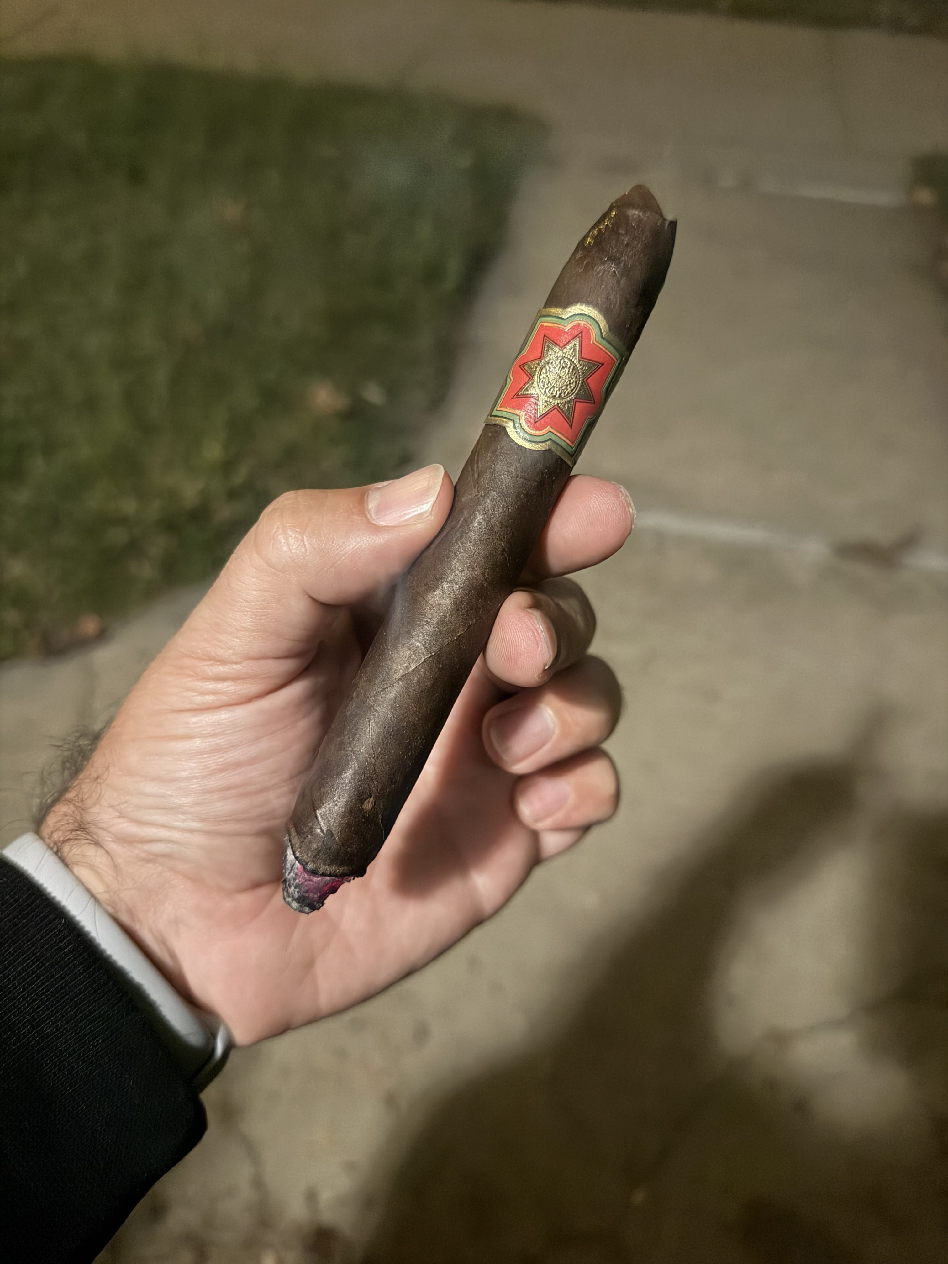 The Tabernacle Knight Commander cigar is the most luxurious expression in Foundation Cigar Co.'s Tabernacle line, being made after company owner, Nick Melillo, was awarded the Knight Commander of The Ethiopian Star of Honor in Jan. 2022. The cigars are rolled in a 6¾" x 52 perfecto format, boasting a Connecticut Broadleaf wrapper, a Mexican San Andrés binder, and Nicaraguan fillers from the Estelí and Jalapa growing regions. Finally, the cigars have been aged 18 months in cedar before being packed. The debut release was in the fall of 2023, with 700 boxes of 12 cigars being released (with additional releases arriving each fall).