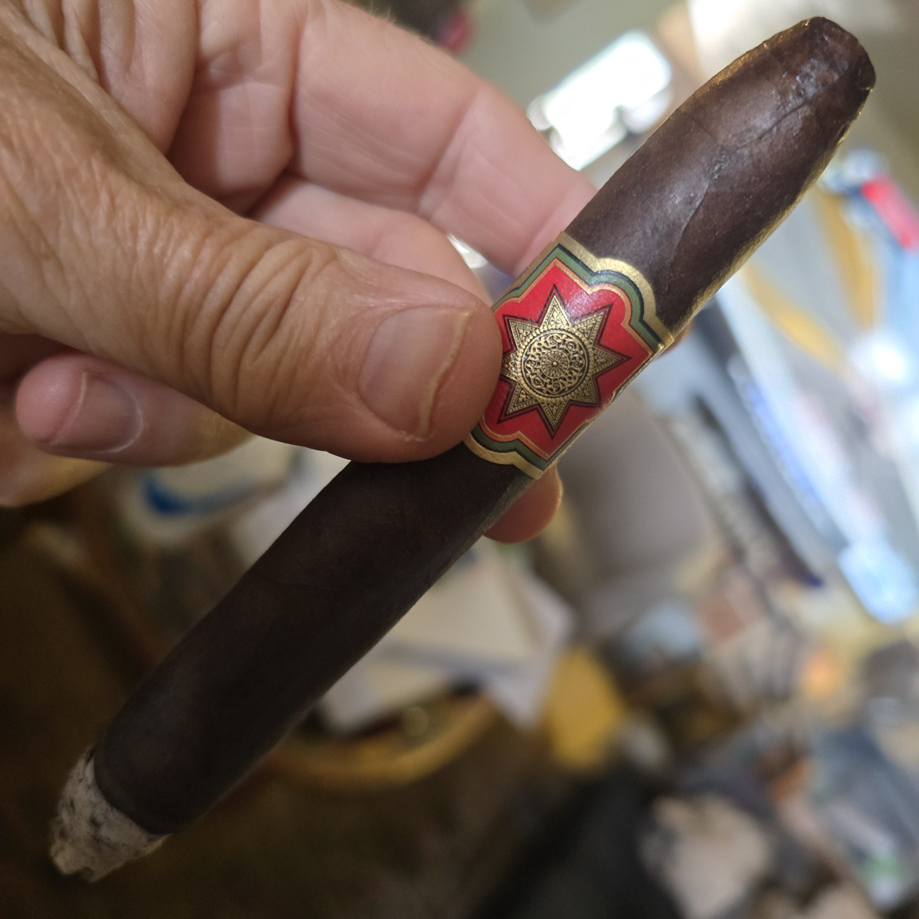 The Tabernacle Knight Commander cigar is the most luxurious expression in Foundation Cigar Co.'s Tabernacle line, being made after company owner, Nick Melillo, was awarded the Knight Commander of The Ethiopian Star of Honor in Jan. 2022. The cigars are rolled in a 6¾" x 52 perfecto format, boasting a Connecticut Broadleaf wrapper, a Mexican San Andrés binder, and Nicaraguan fillers from the Estelí and Jalapa growing regions. Finally, the cigars have been aged 18 months in cedar before being packed. The debut release was in the fall of 2023, with 700 boxes of 12 cigars being released (with additional releases arriving each fall).