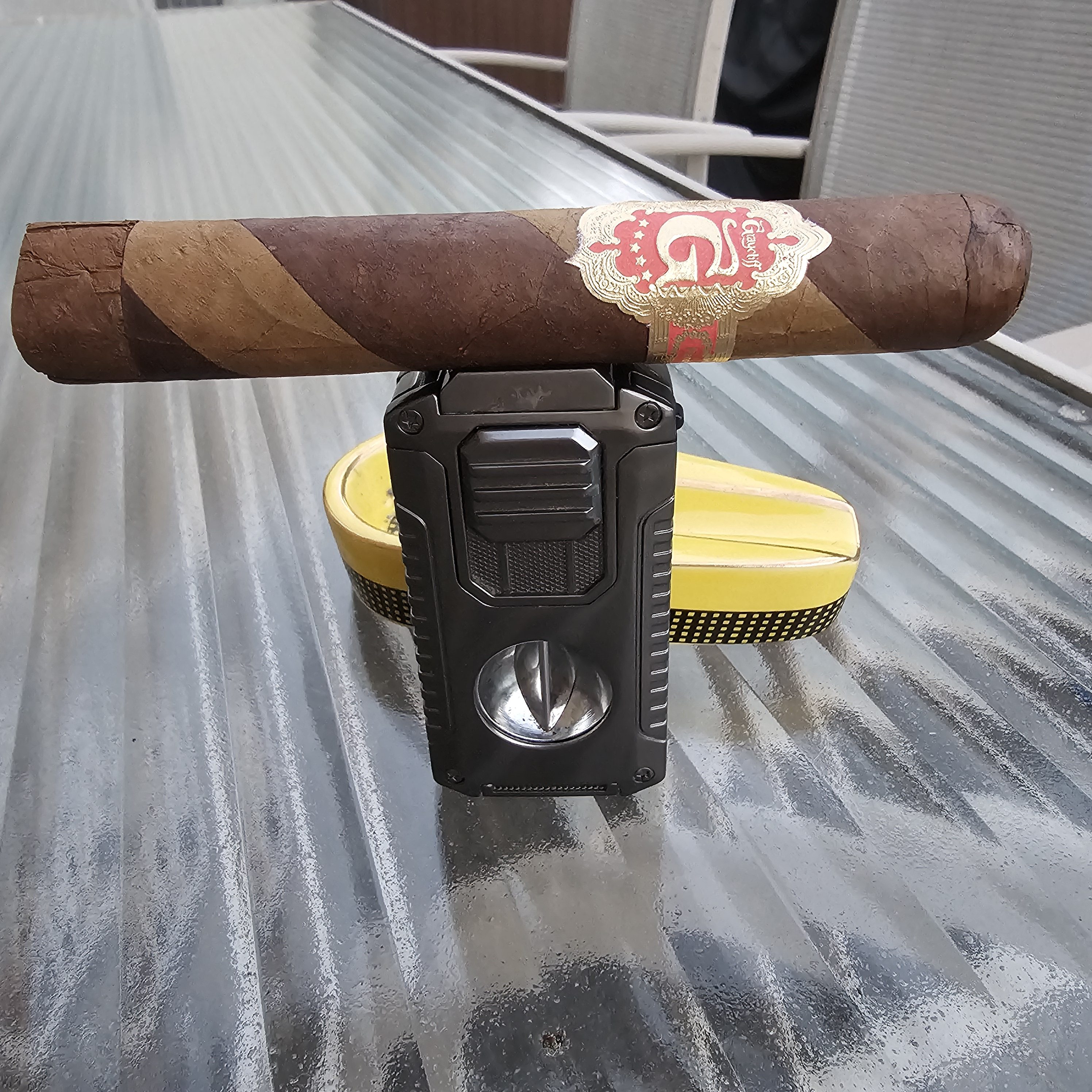 The Graycliff Artisan Barber Pole cigar uses Nicaraguan long-filler and is topped with a barber pole wrapper of Connecticut and Habano varieties.