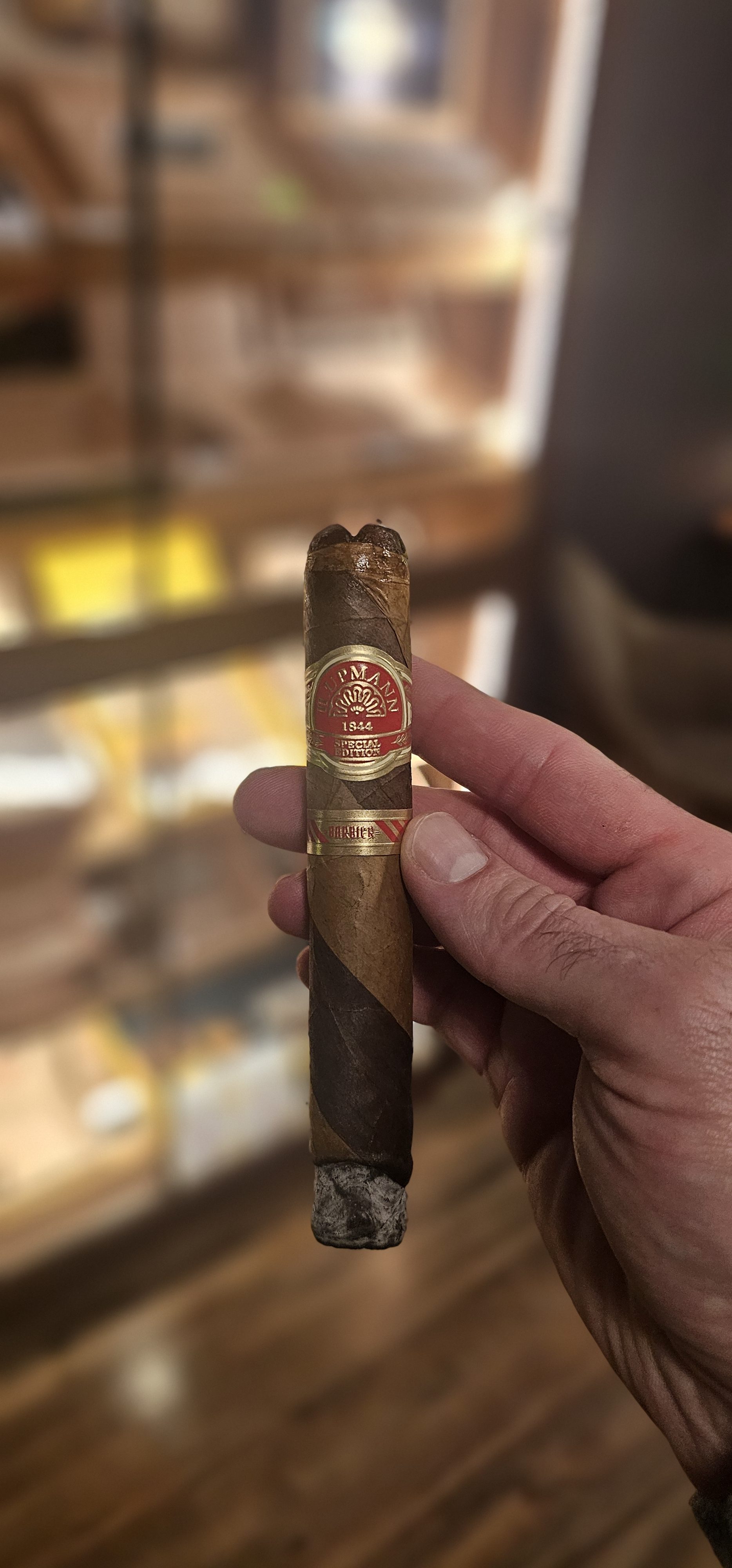 H. Upmann 1844 Special Edition Barbier was introduced in 2023, being released 180 years after Hermann Dietrich Upmann first arrived in Havana, Cuba. The cigars make use of two Ecuadorian wrappers: Connecticut and Sumatra. These leaves surround a Java binder and fillers of Nicaragua, the DR, and Broadleaf.