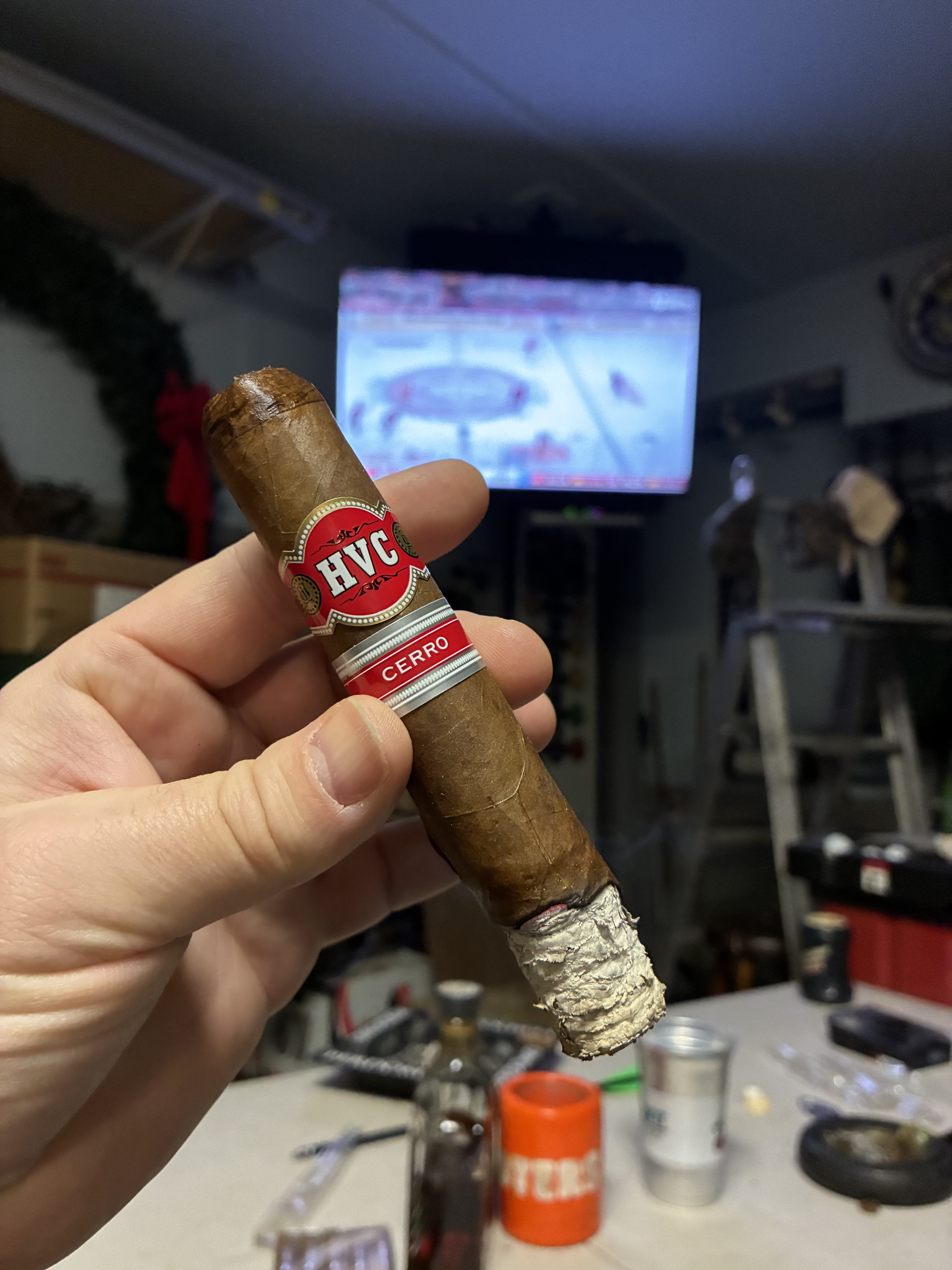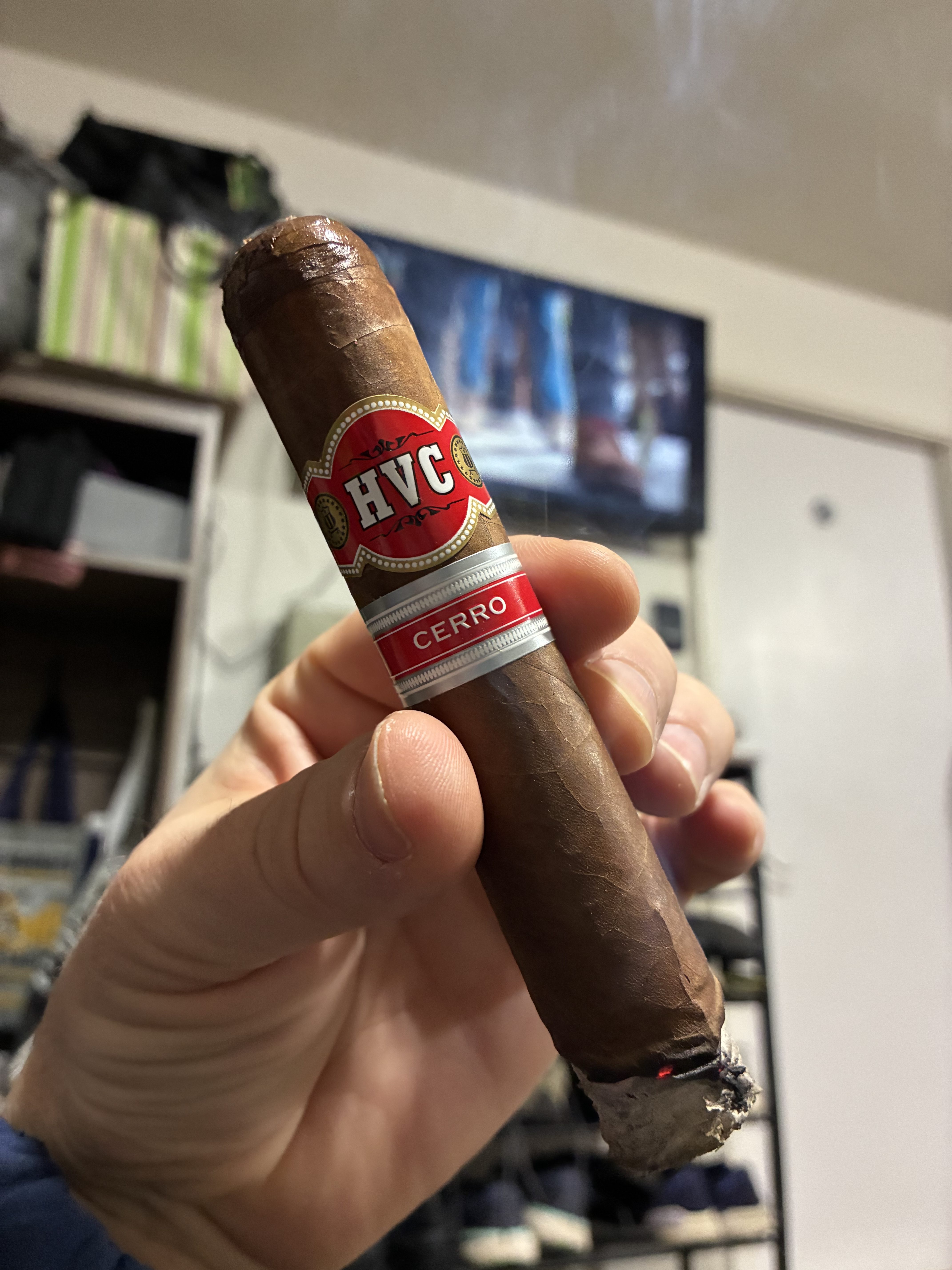 Large vitola with V-cut. No draw issues here just HVC Corojo goodness, nice amount of baking spice, more medium than full IMO