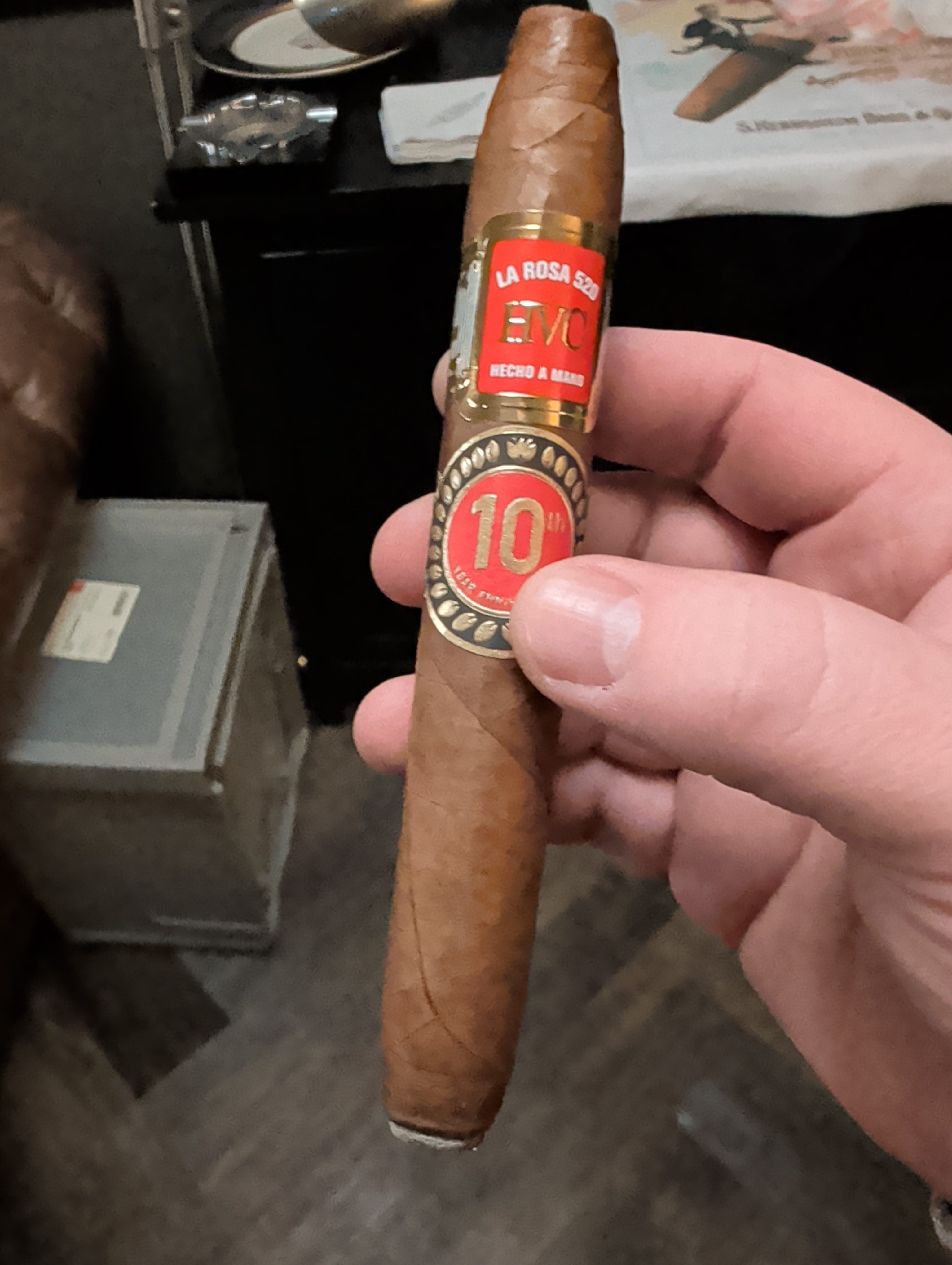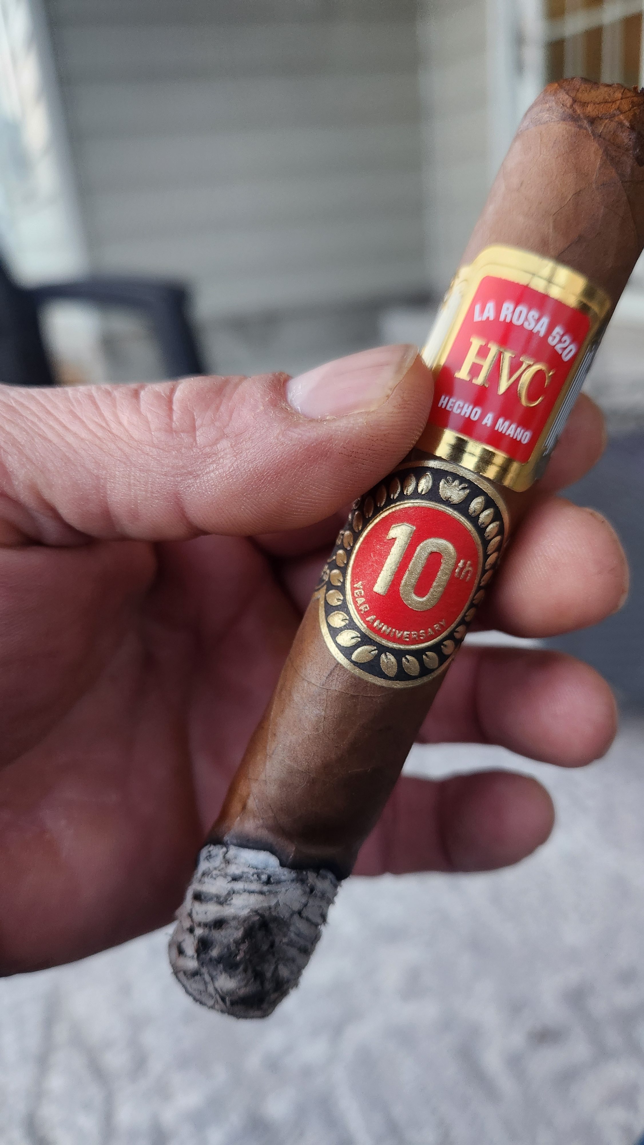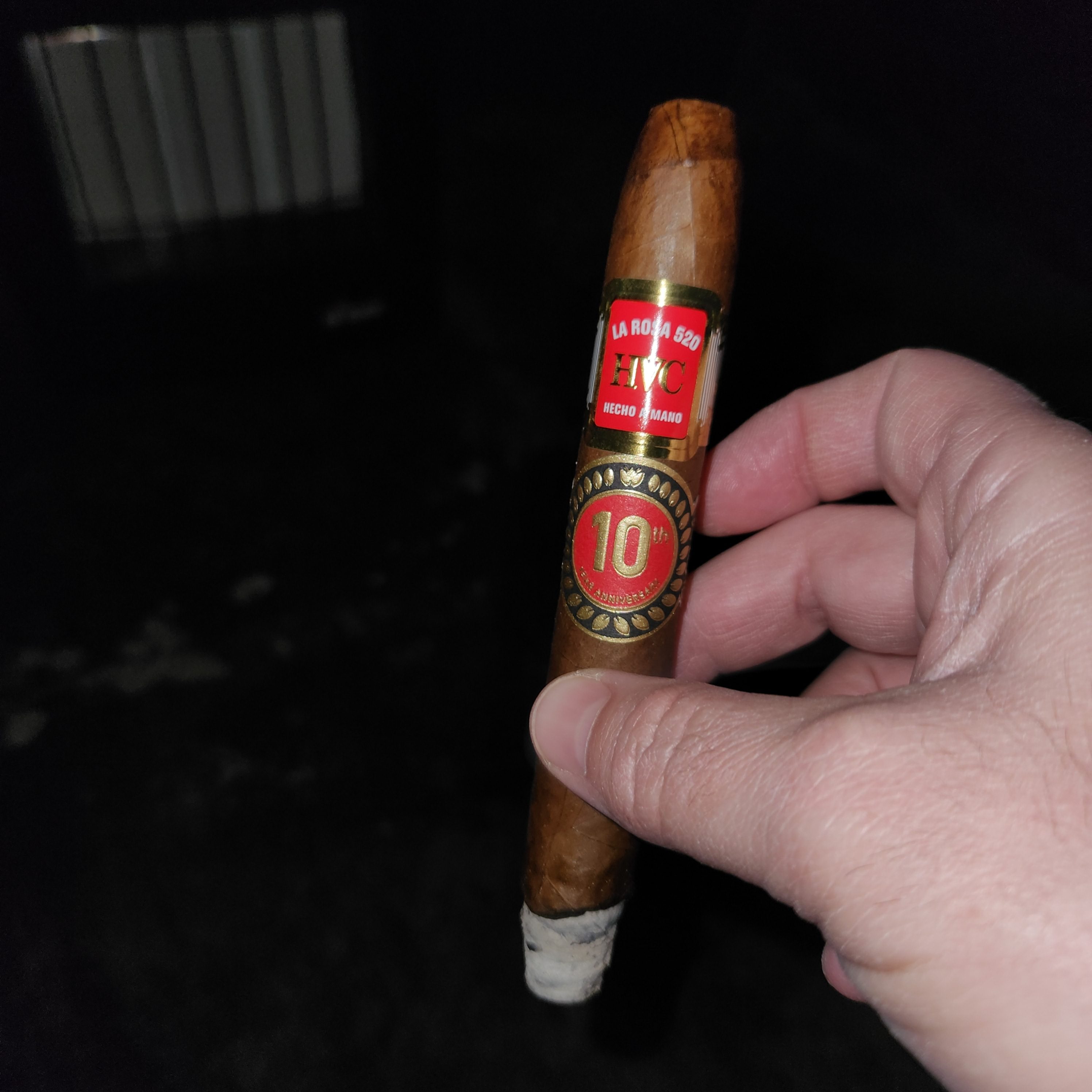 The original HVC La Rosa 520 cigar first arrived in 2015, being named after the address where Reinier Lorenzo lived when growing up in Cuba. Ten years, later, Lorenzo's HVC Cigars released the HVC La Rosa 520 10 Year Anniversary, featuring a new blend and being rolled out of the company's own factory in Nicaragua (the original cigar was rolled by Aganorsa Leaf, who handled virtually all HVC production before Lorenzo created his own factory). The La Rosa 520 10 Year Anniversary was rolled in two sizes, featuring an Ecuadorian Habano '92 wrapper, a binder from Jalapa, and fillers from three regions in Nicaragua (EstelÃ, Jalapa, and Ometepe). The cigars were limited to 1,000 boxes of 10 per size.