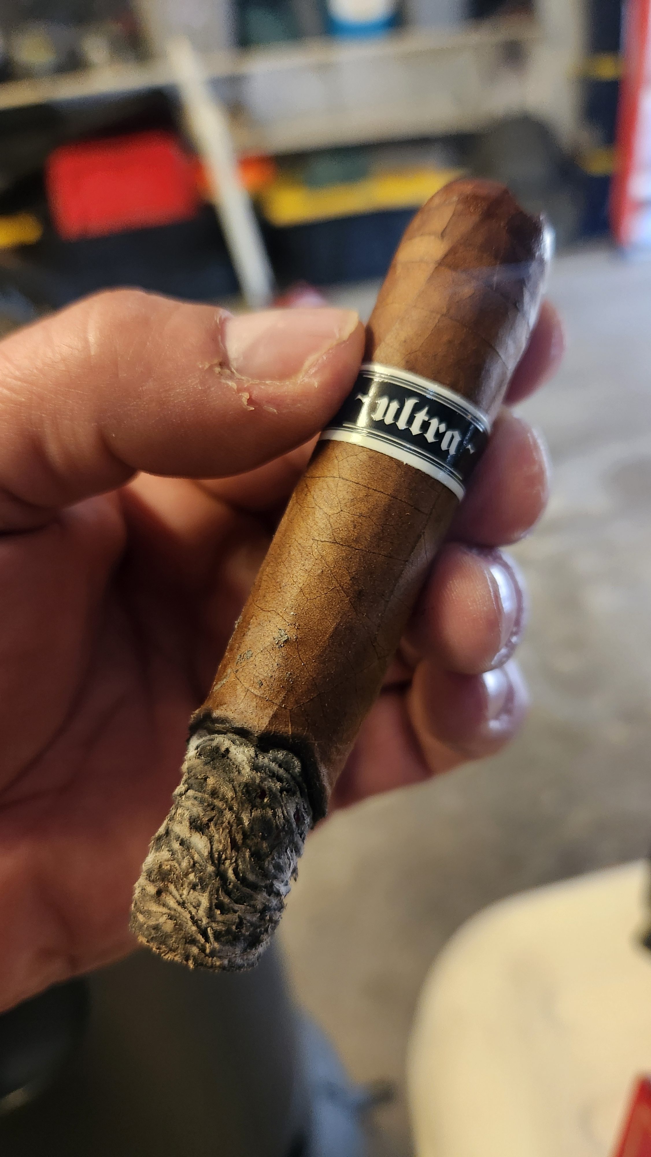 The construction on this OP No7 was horrible. Constantly canoeing from foot to head. Looking at the ash formation, the cigar was bunched in a U shape, with the top of the U burning WAY faster than the bottom. More corrections than I can count. Sad part is, the blend was very good, but the lousy burn ruined it.