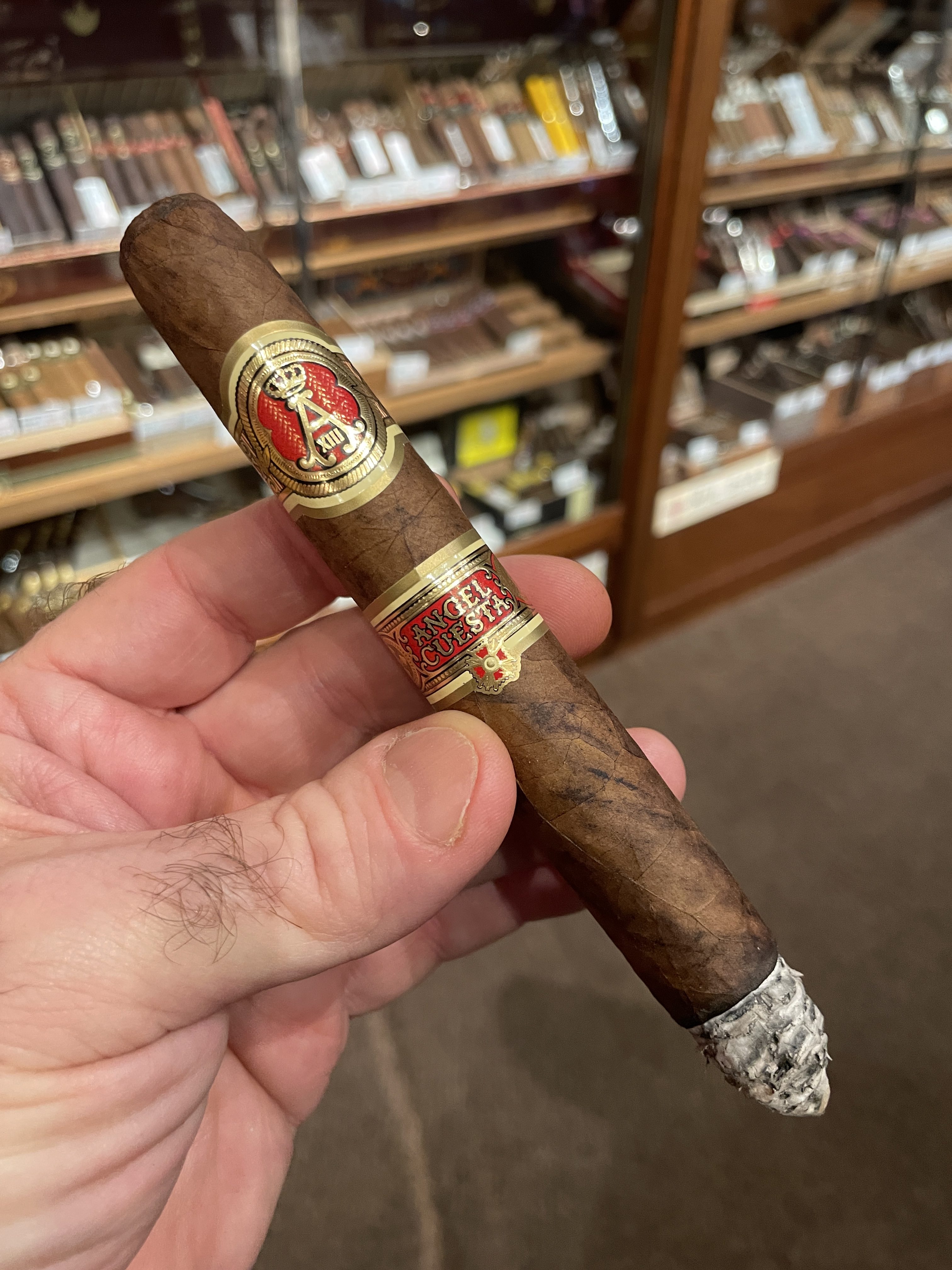 Originally rolled a century before the cigars' 2023 redux, the Angel Cuesta is named for Angel LaMadrid Cuesta, one of two founders of the original Cuesta-Rey cigar brand. For its return, J.C. Newman has incorporated a refined recipe, including an Ecuadorian Habano rosado wrapper and binder/fillers from three countries. The cigars are handcrafted in the company's boutique-minded section (dubbed 'The American Room') of their historic El Reloj factory in Tampa, Fla, with only two torcedores handling the entirety of daily production, which is limited to 150 cigars per day.