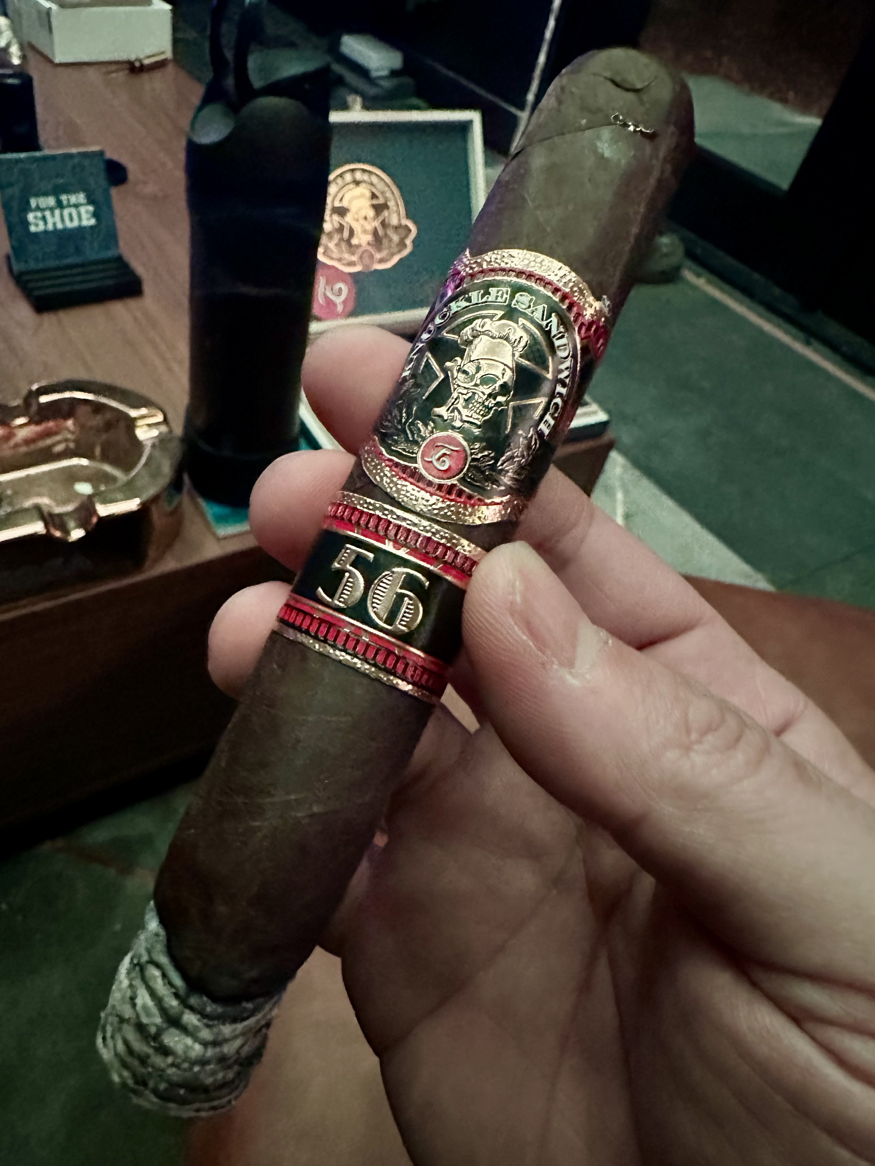 The Espinosa Knuckle Sandwich 56 cigar was released in 2024 as the followup to 2023's Knuckle Sandwich 55, each being released in celebration of Guy Fieri's birthday on January 22. The 2024 edition featured the same overall recipe, including a Mexican San Andrés maduro wrapper and all-Nicaraguan binder/filler, though the cigars were offered in a new 6" x 56 oval-pressed toro format.